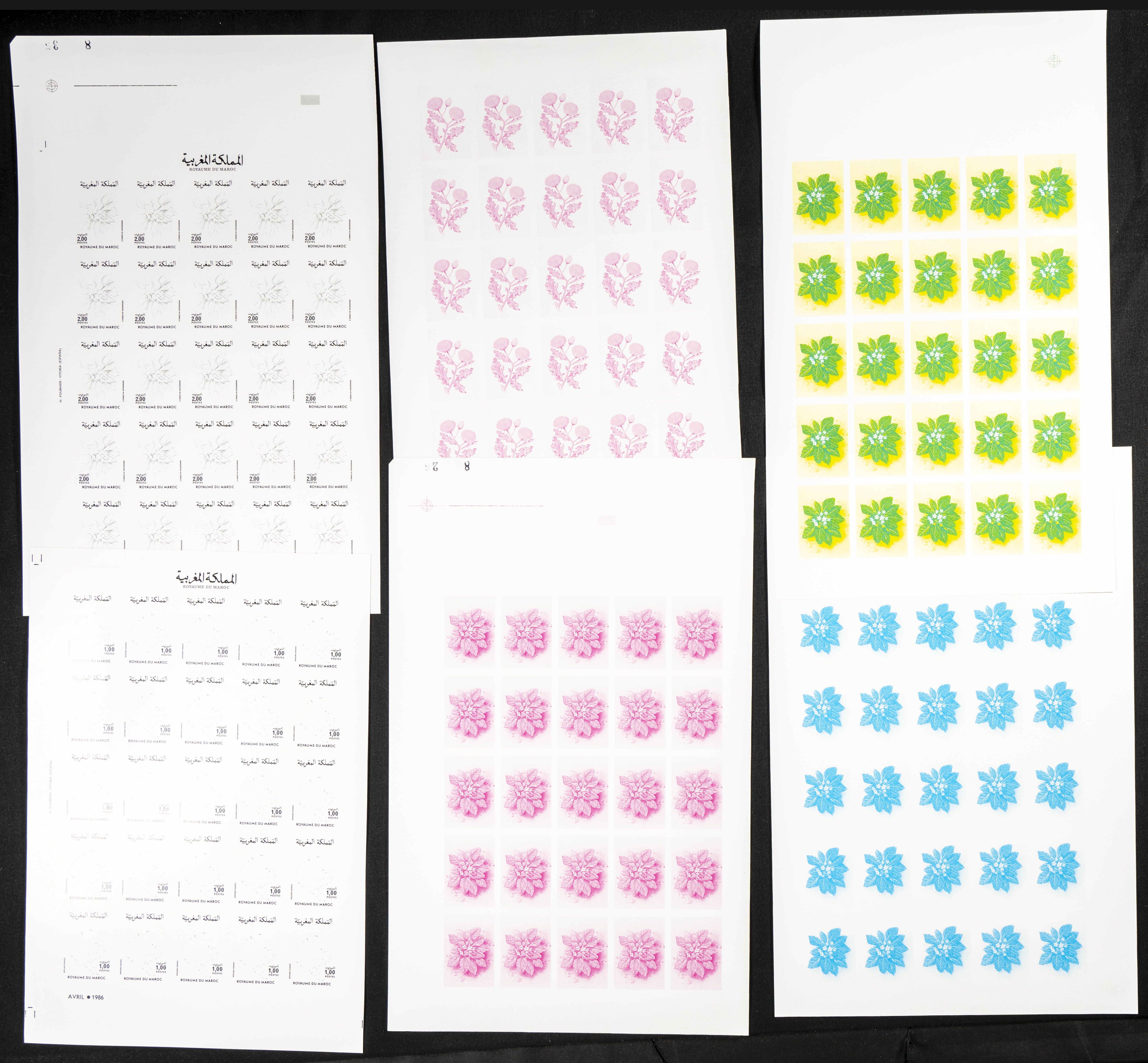 ★★Yvert 1008/09. 1986. Flowers. Group of progressive plate proofs of the set. TO EXAM.