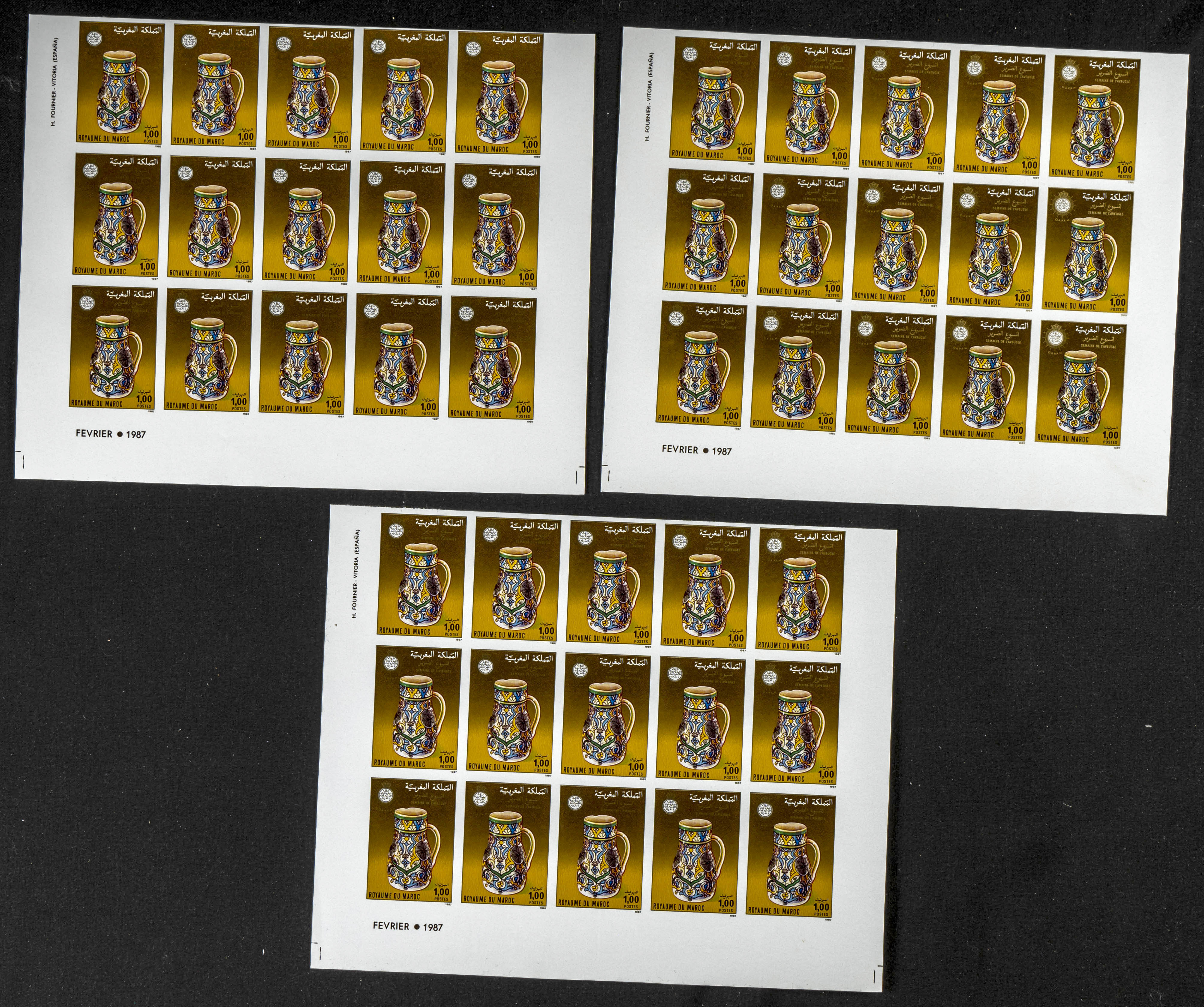 ★★Yvert 1030. 1987. Blind week, ceramics. Group of IMPERFORATED sets. TO EXAM.