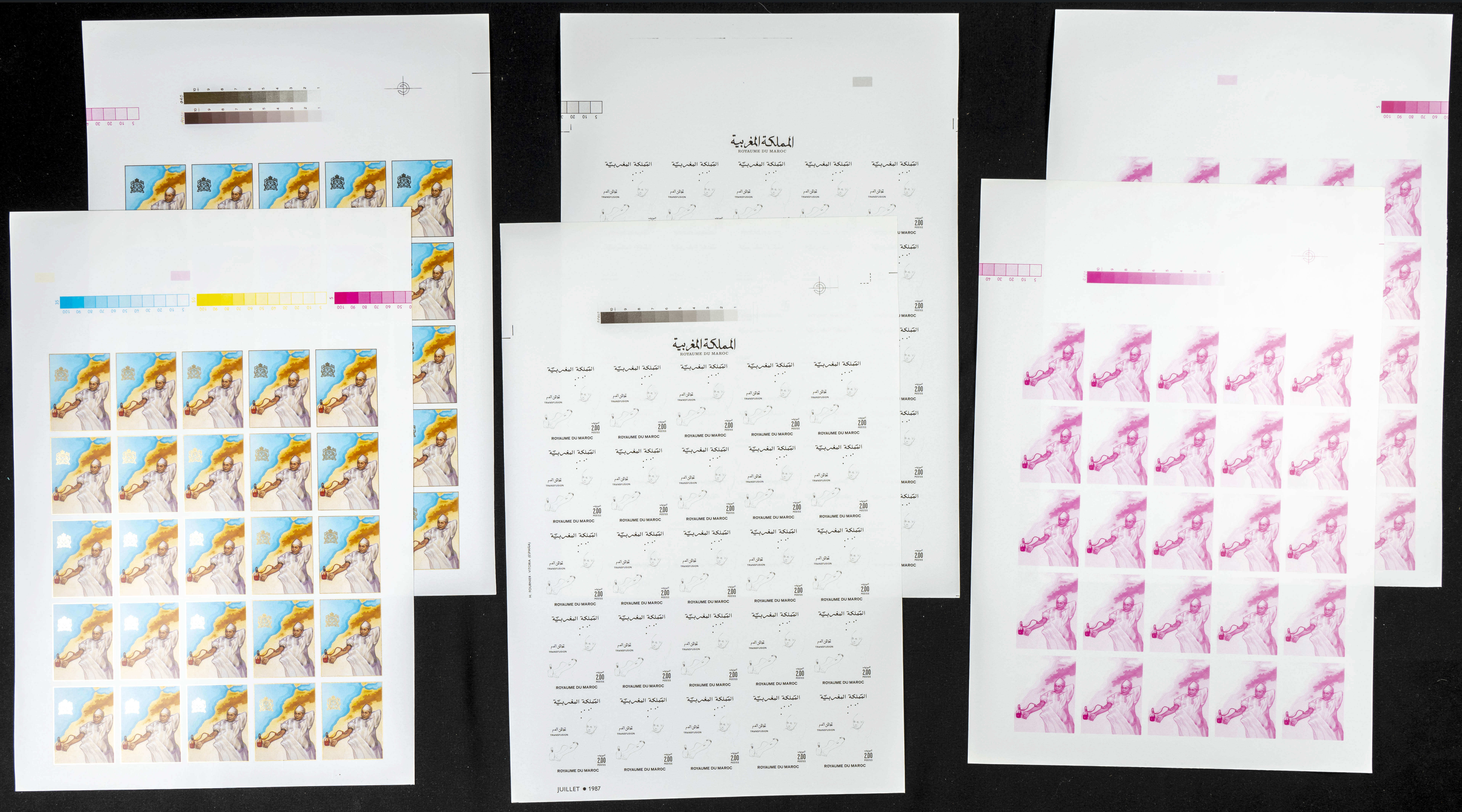 ★★Yvert 1034. 1987. Blood transfusion. Group of progressive plate proofs of the set. TO EXAM.