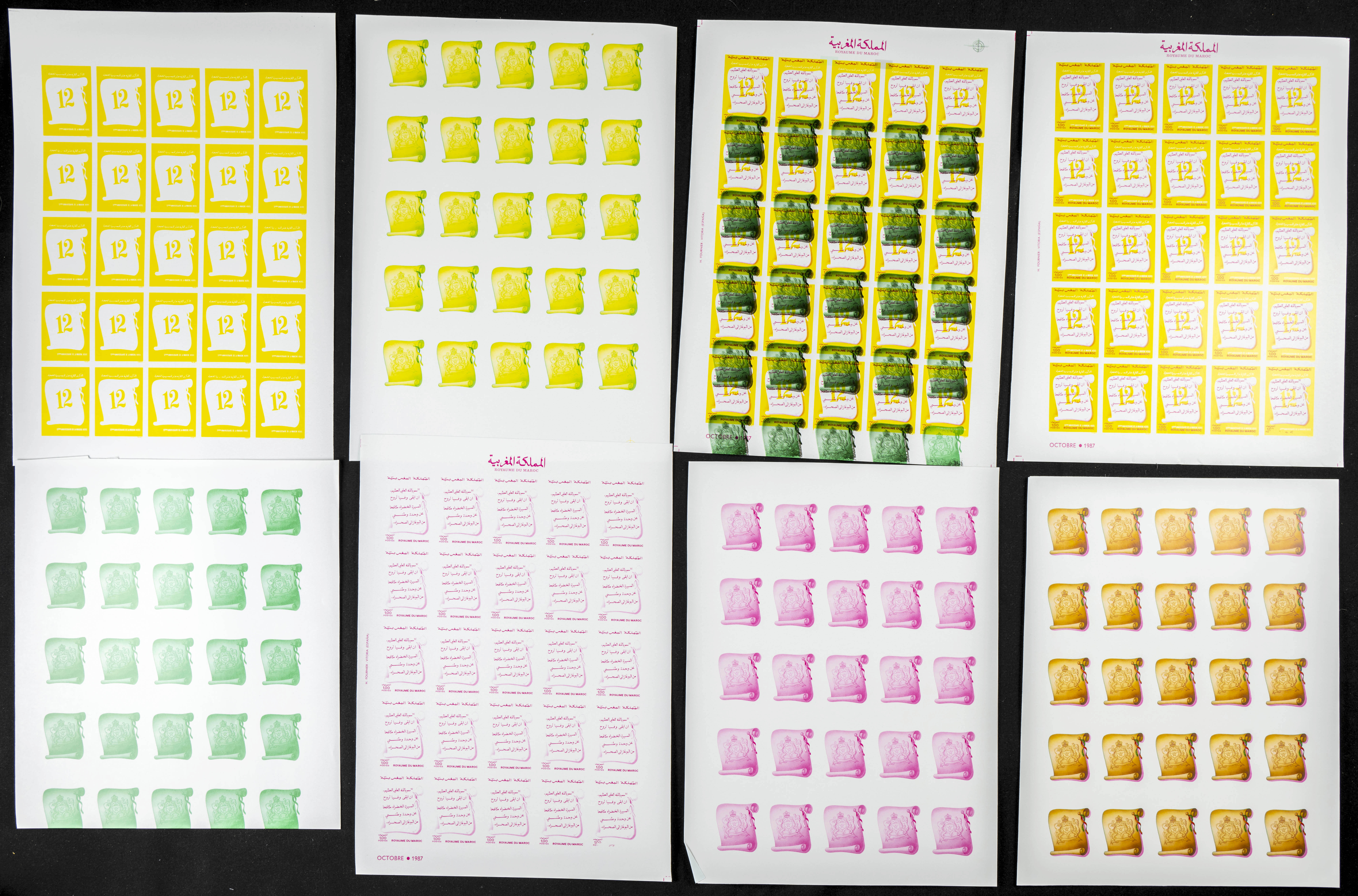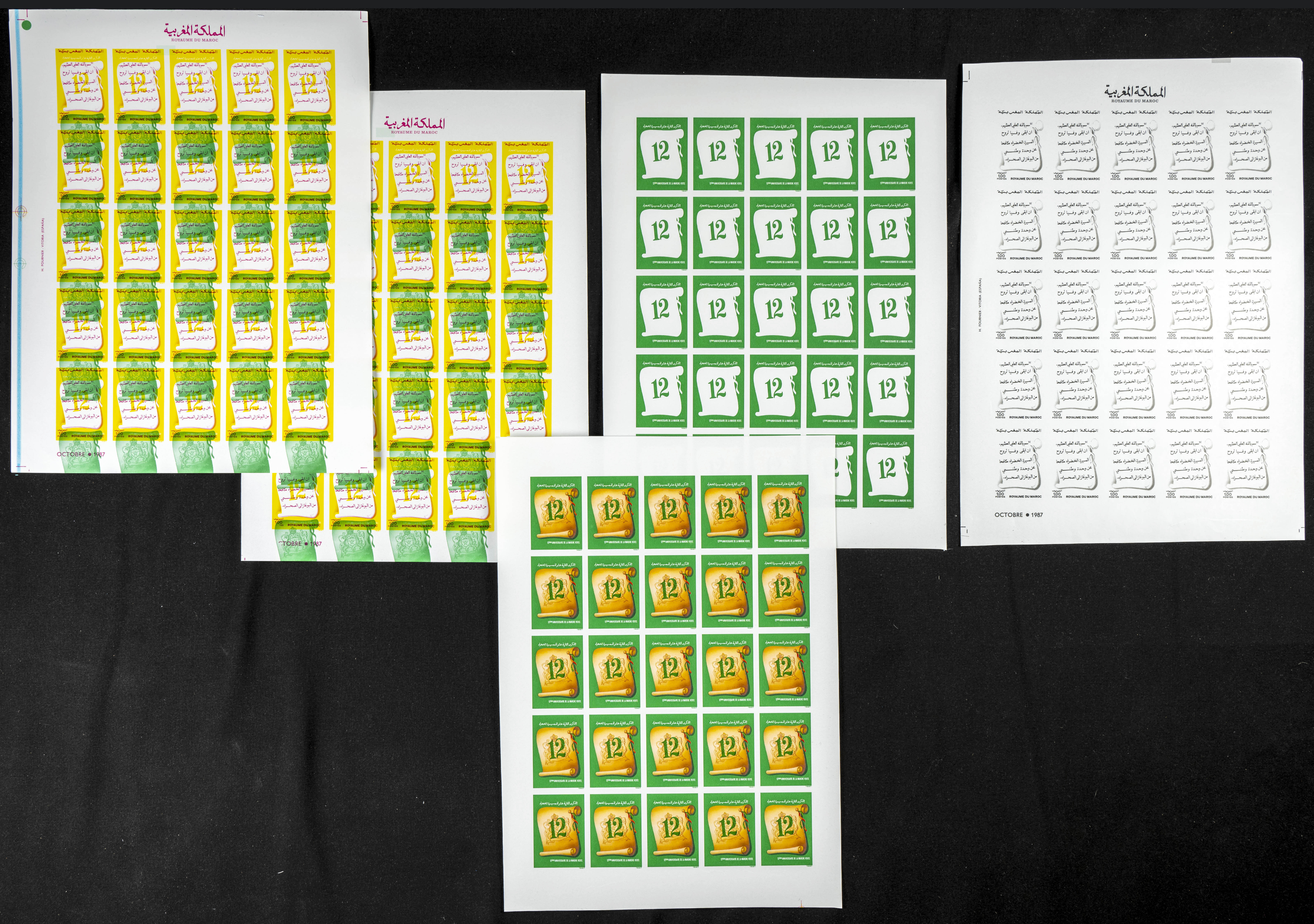 ★★Yvert 1041. 1987. Green march. Group of progressive plate proofs of the set. TO EXAM.