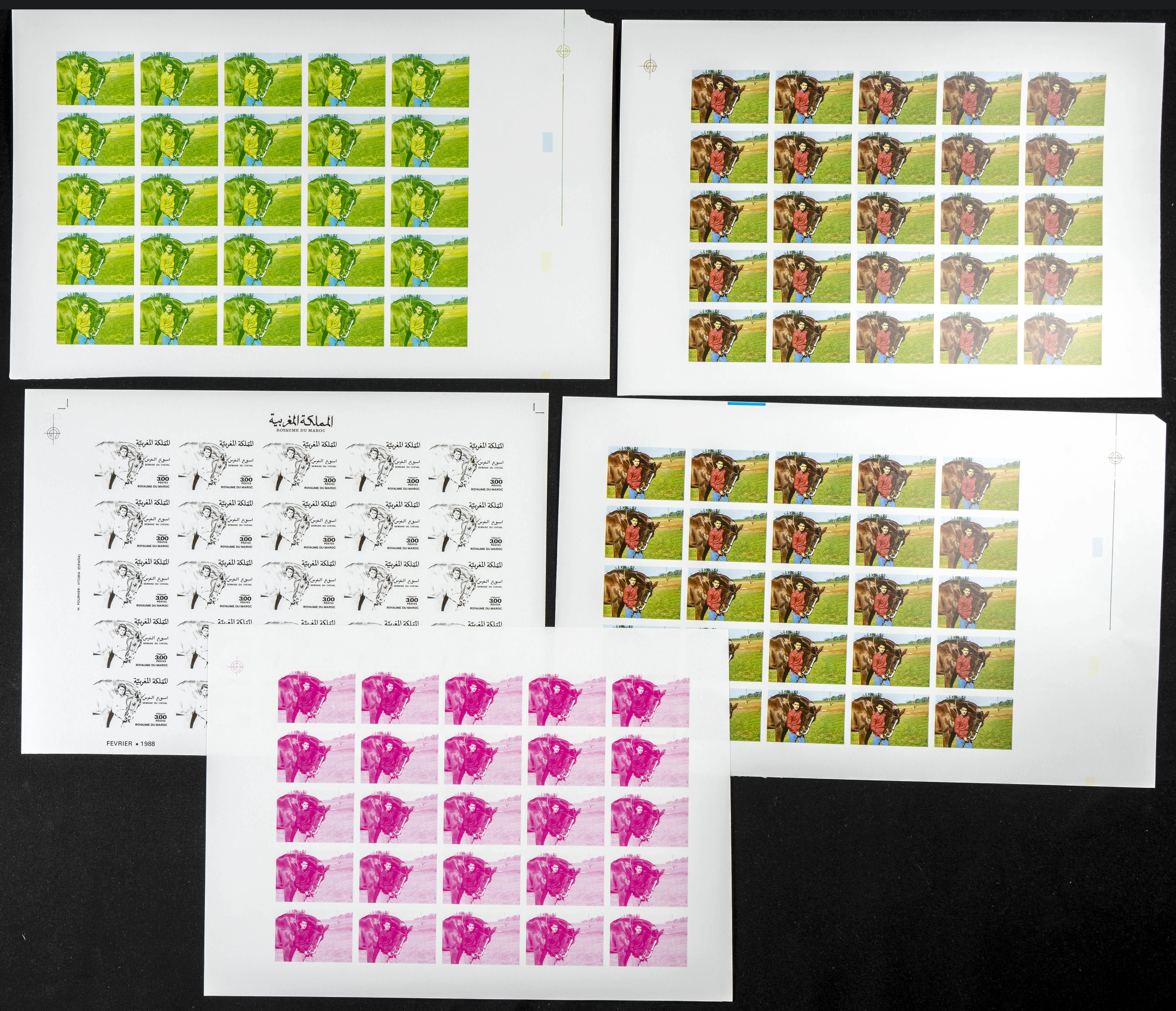 ★★Yvert 1049. 1988. Week of the horses. Group of progressive plate proofs of the set. TO EXAM.