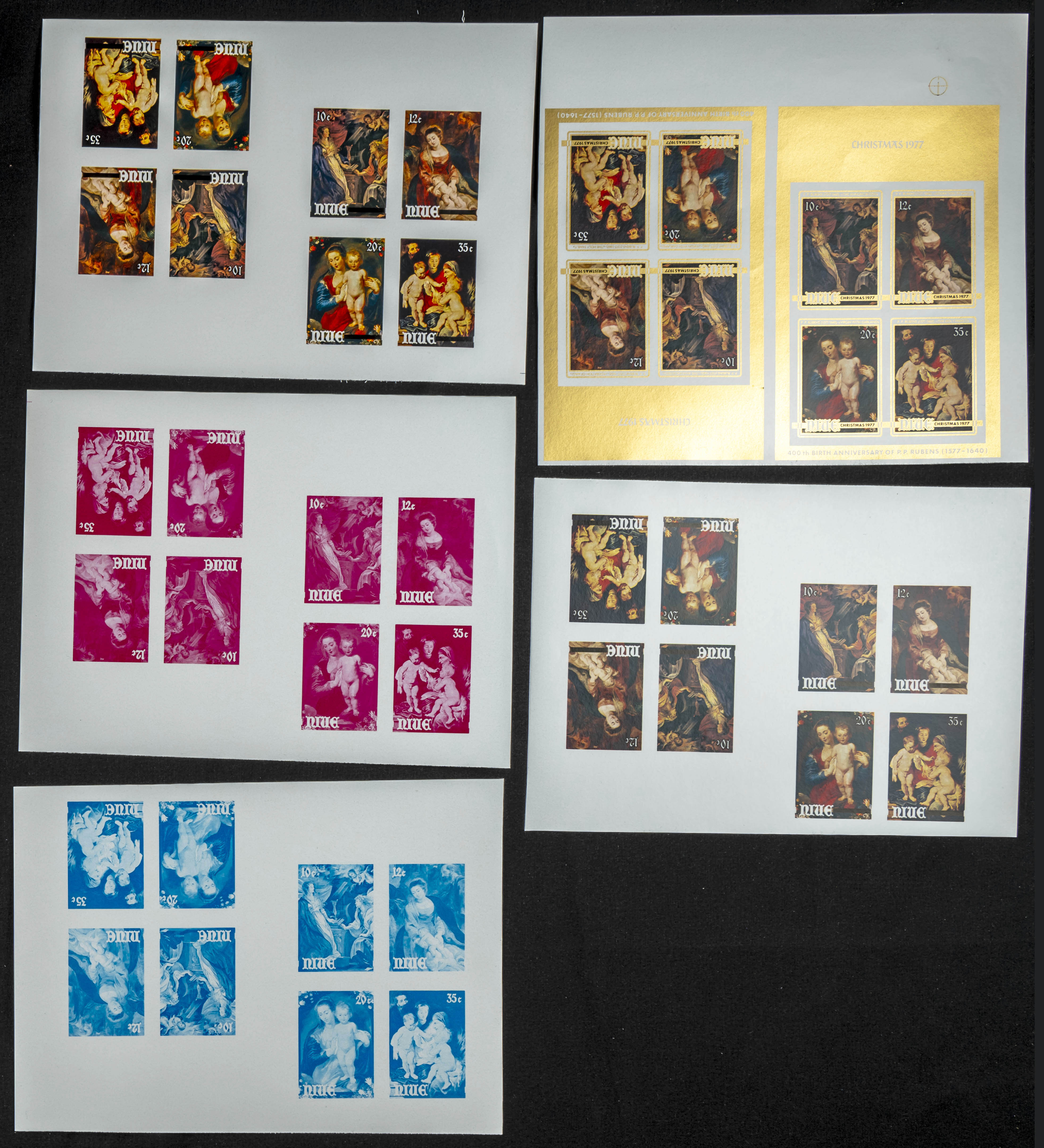 ★★Yvert B2. 1977. Christmas, Rubens paintings. Group of progressive plate proofs of the set. TO EXAM.