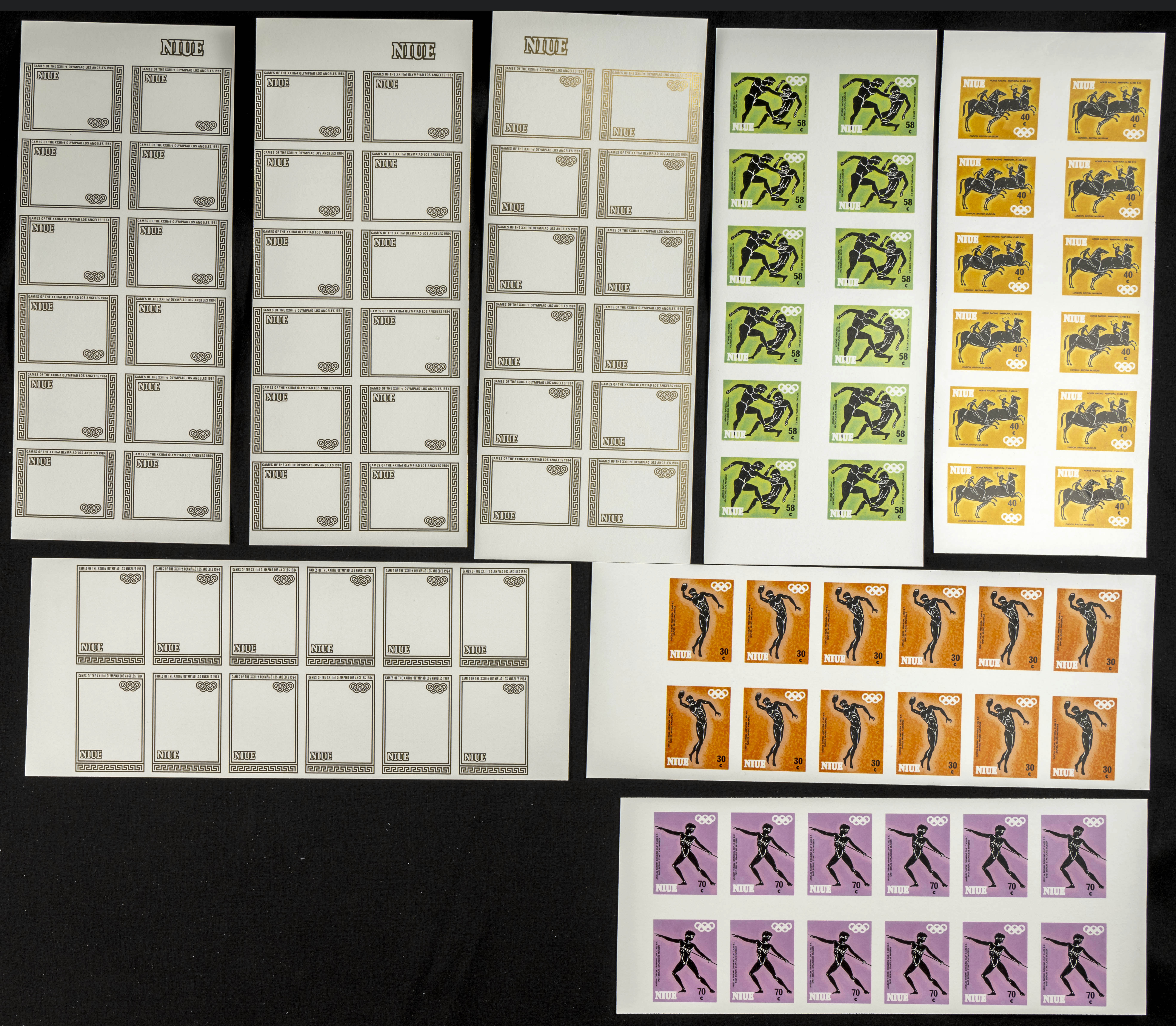 ★★Yvert 434/38. 1984. Olympic games Los Angeles. Group of progressive plate proofs of the set. TO EXAM.