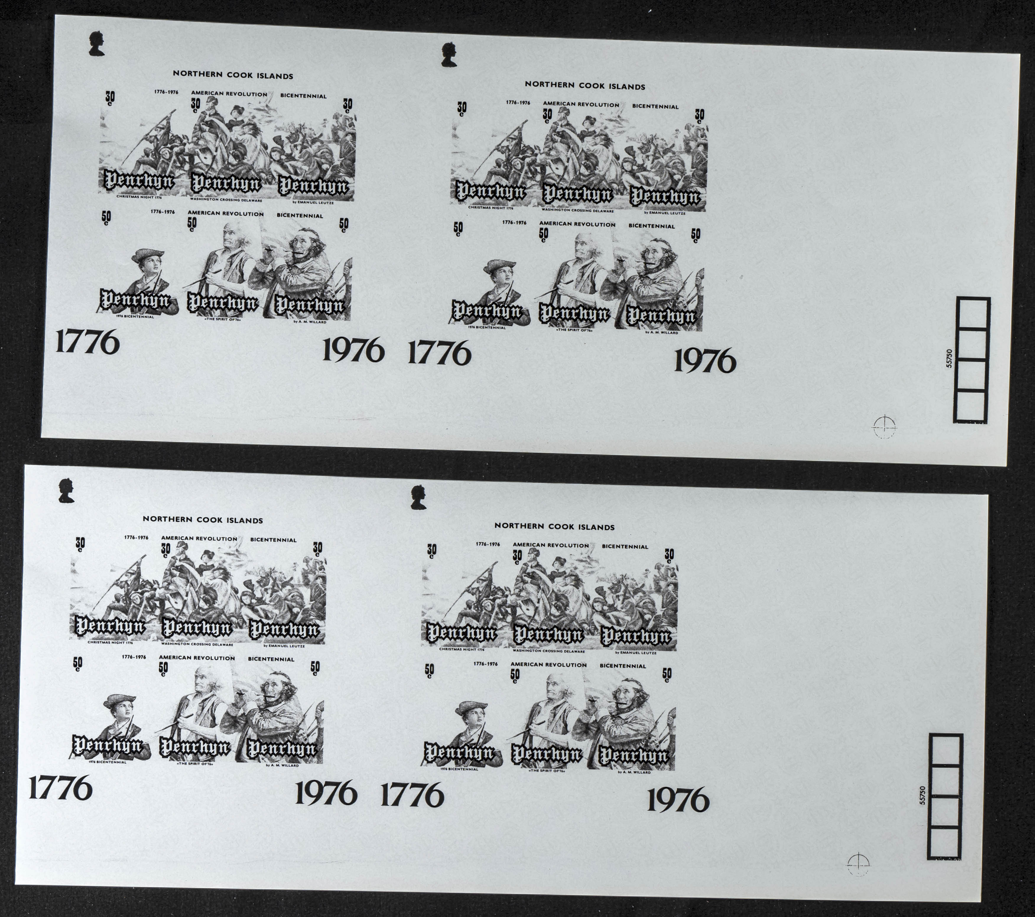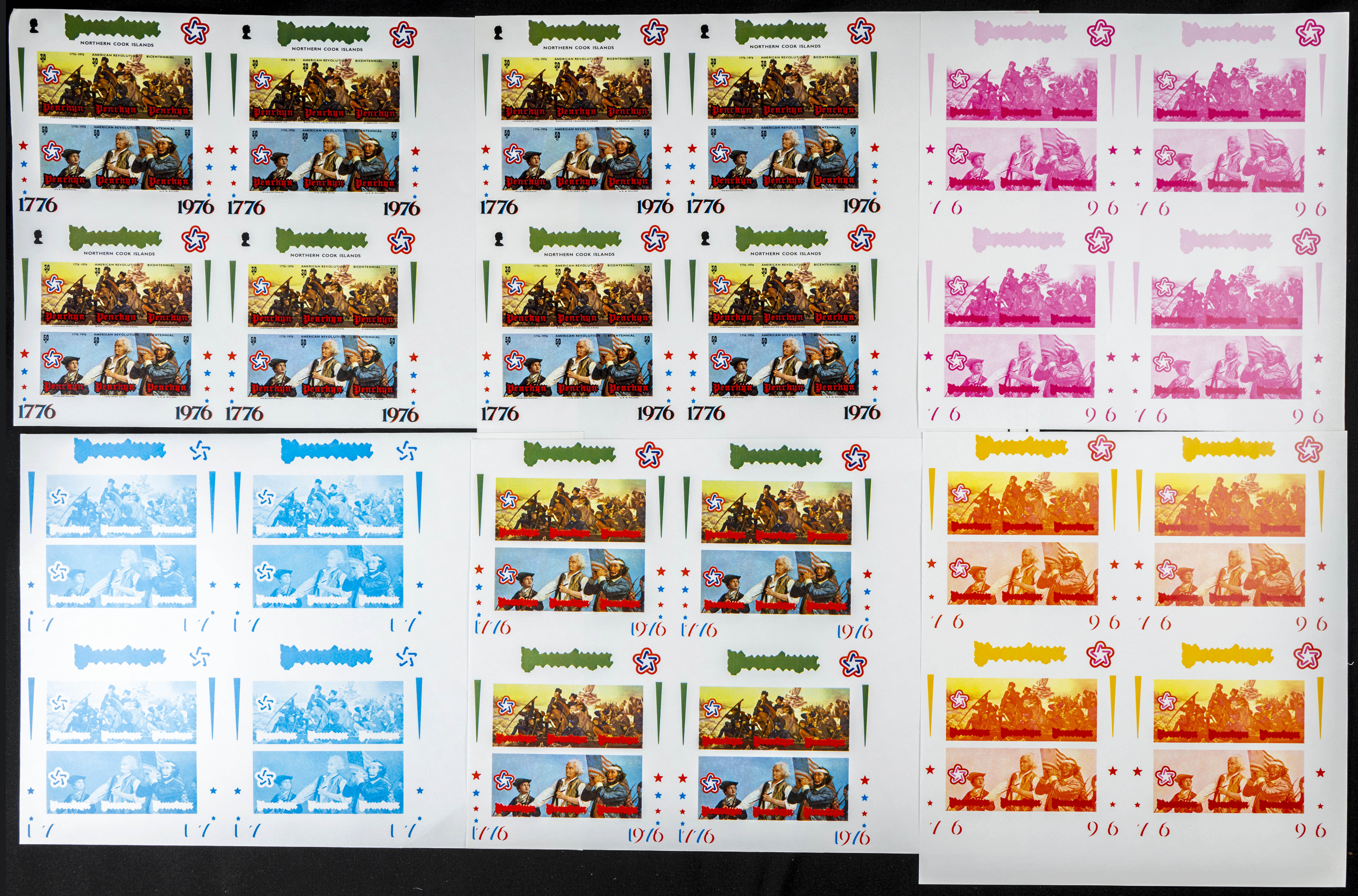 ★★Yvert B2. 1976. US bi-centenary. Group of progressive plate proofs of the set. TO EXAM.
