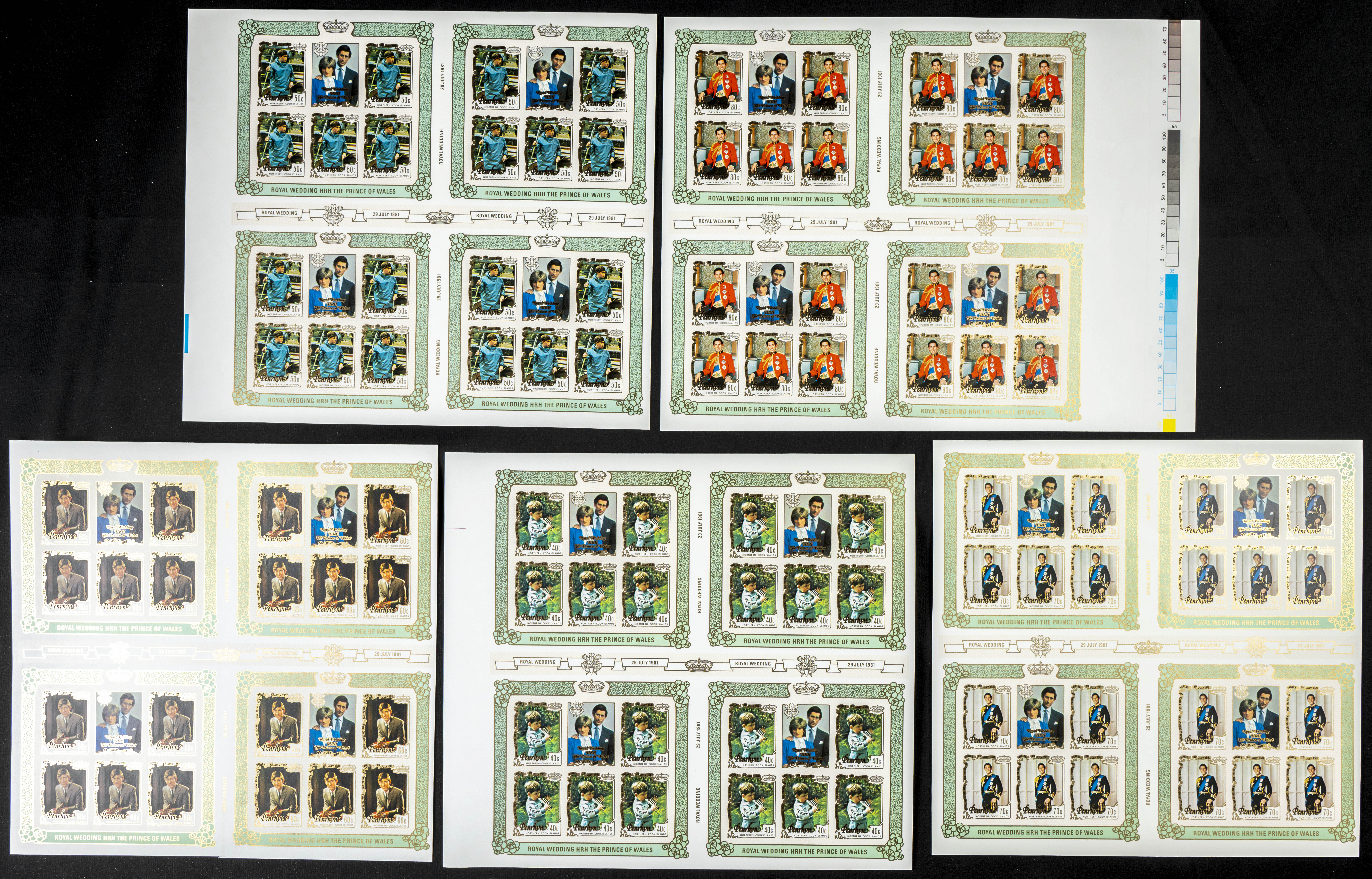 ★★Yvert 179/83. 1981. Charles & Diana wedding. Group of IMPERFORATED sets. TO EXAM.