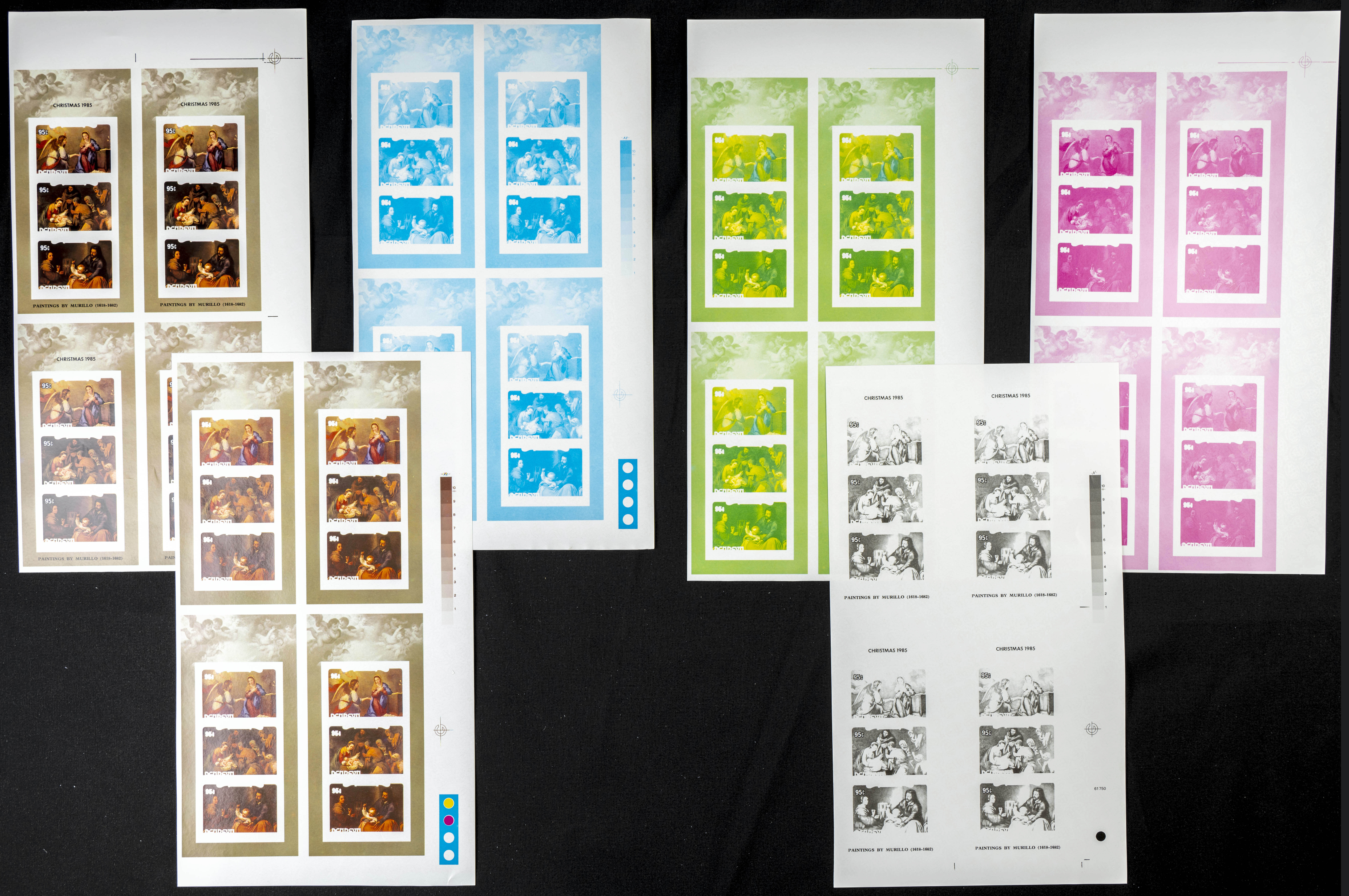 ★★Yvert B66. 1985. Christmas. Group of progressive plate proofs of the set. TO EXAM.