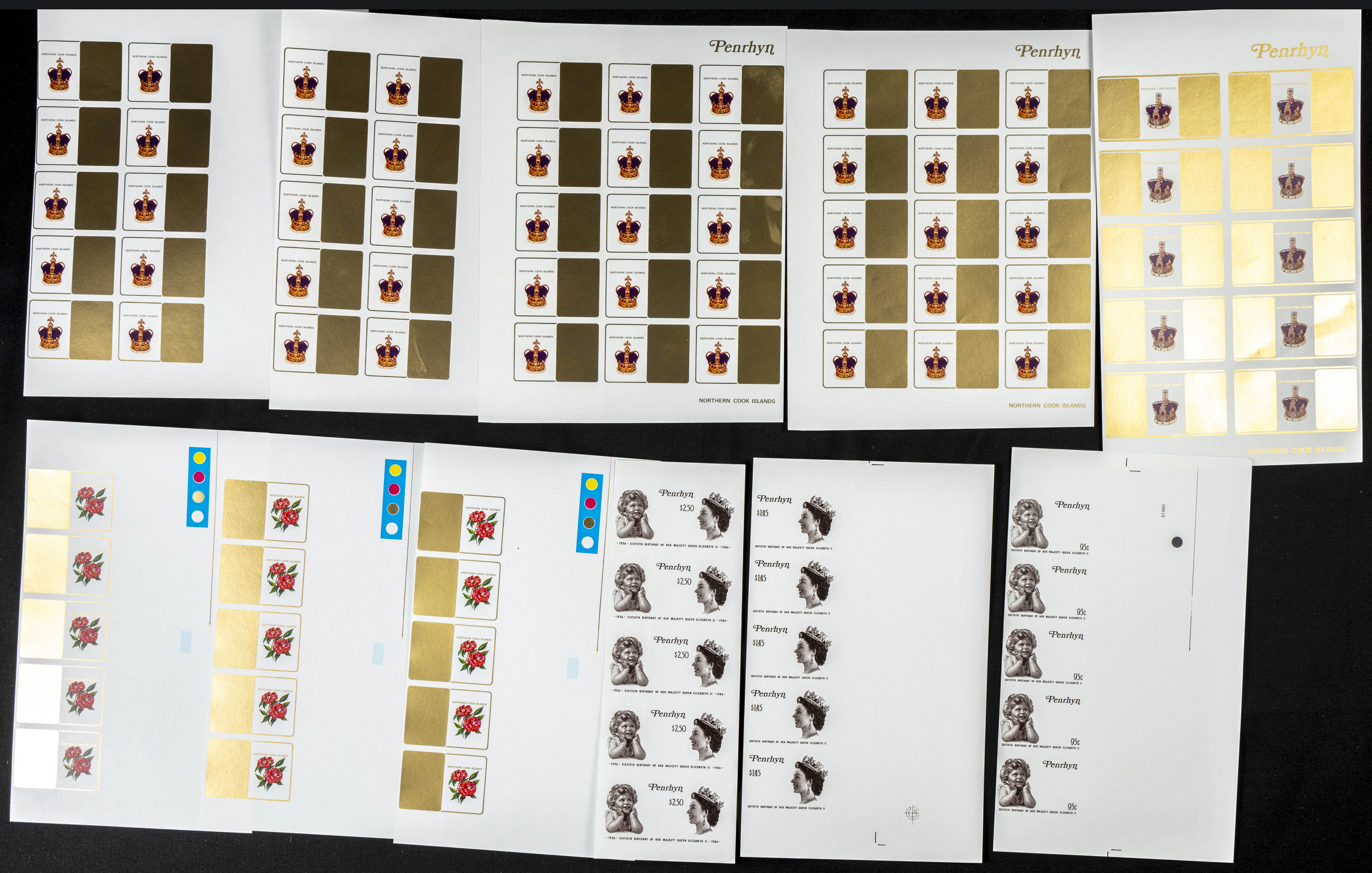 ★★Yvert 322/24. 1986. Elizabeth 60th birthday. Group of progressive plate proofs of the set. TO EXAM.