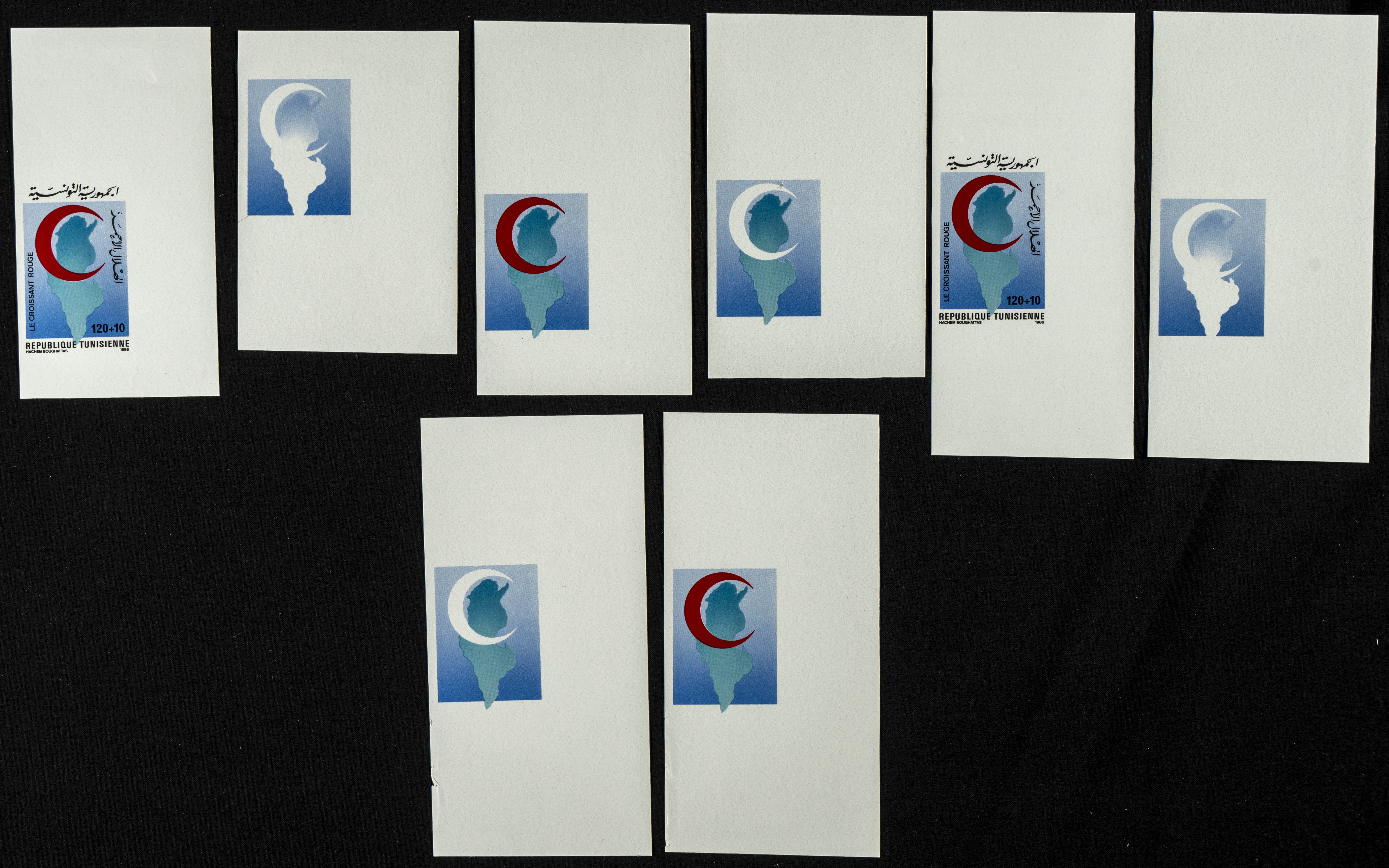 ★★Yvert 1054. 1986. Red Cross. Group of progressive plate proofs of the set. TO EXAM.
