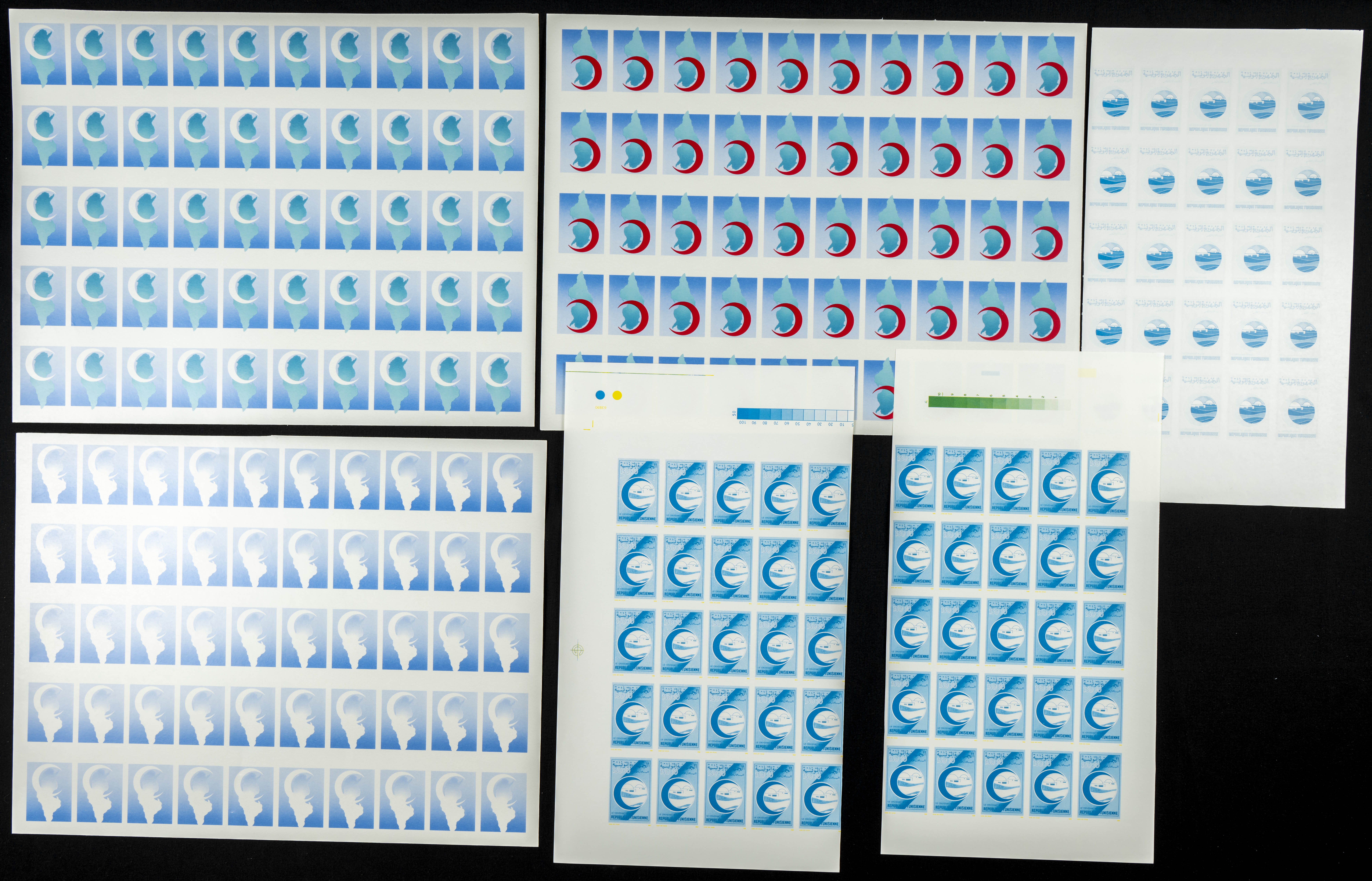 ★★Yvert 1145. 1990. Tunisian Red Crescent. Group of progressive plate proofs of the set. TO EXAM.