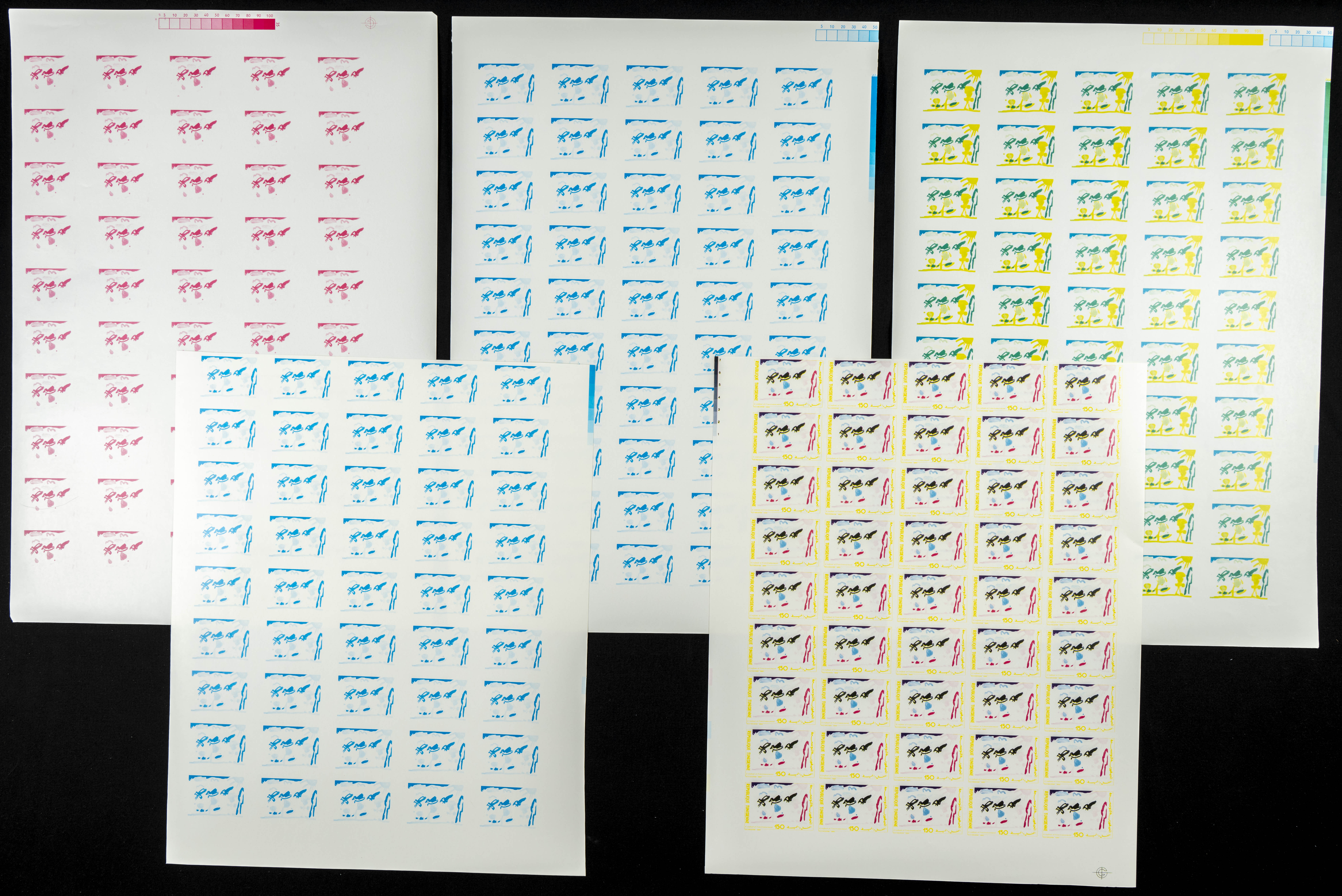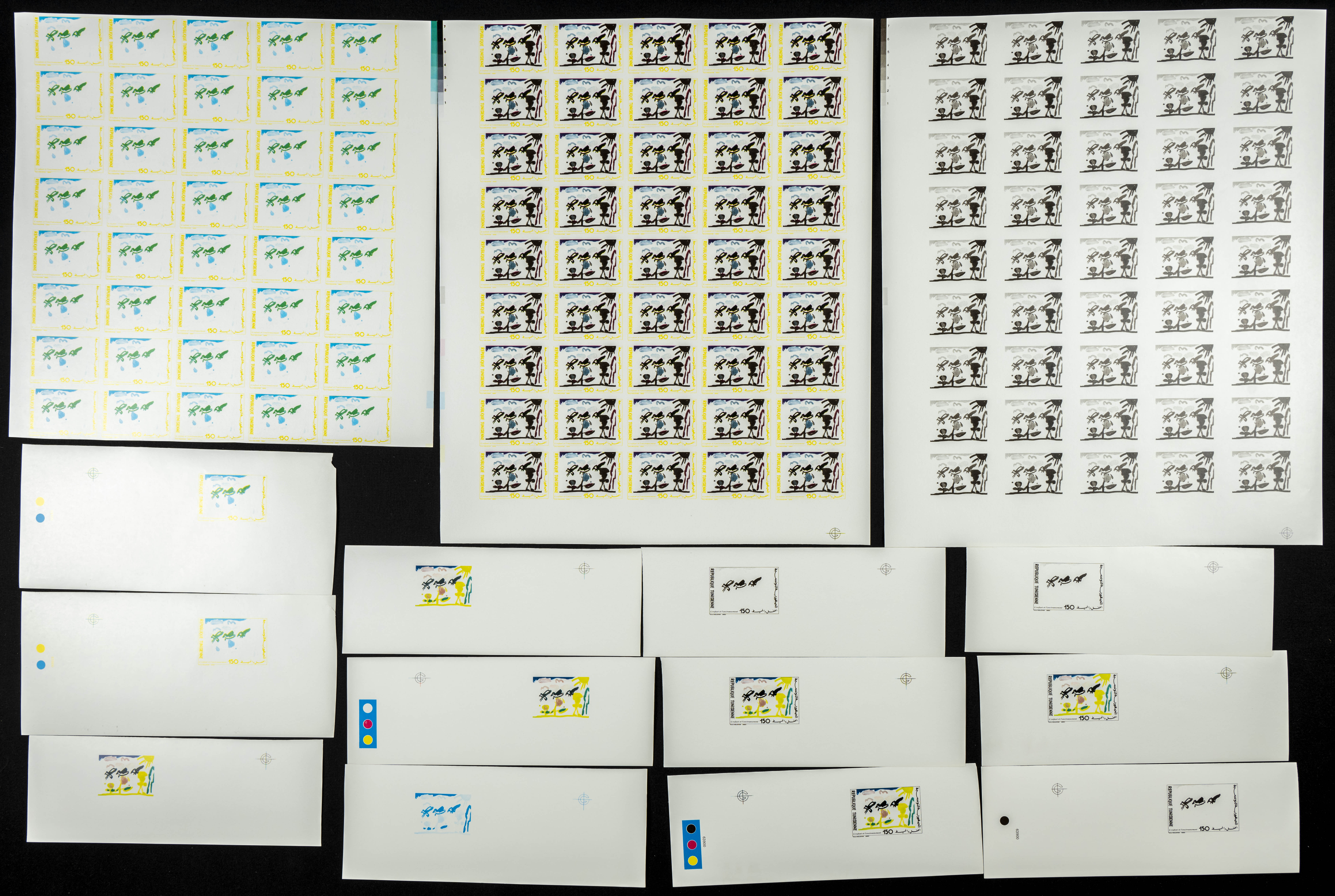 ★★Yvert 1147. 1990. Children and the Environment. Group of progressive plate proofs of the set. TO EXAM.