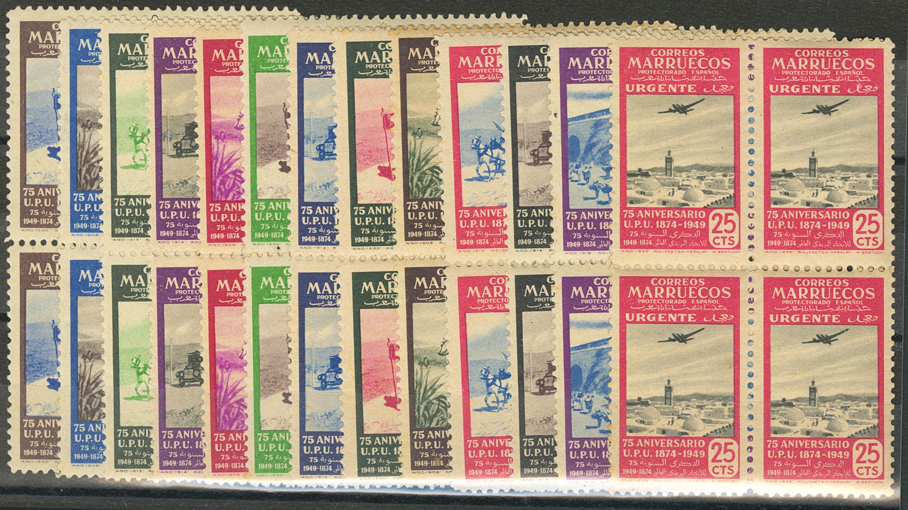 ★★ 312/24(4). 1949. Serie completa, bloque de cuatro. MAGNIFICA. Edifil 2026: +400 Euros