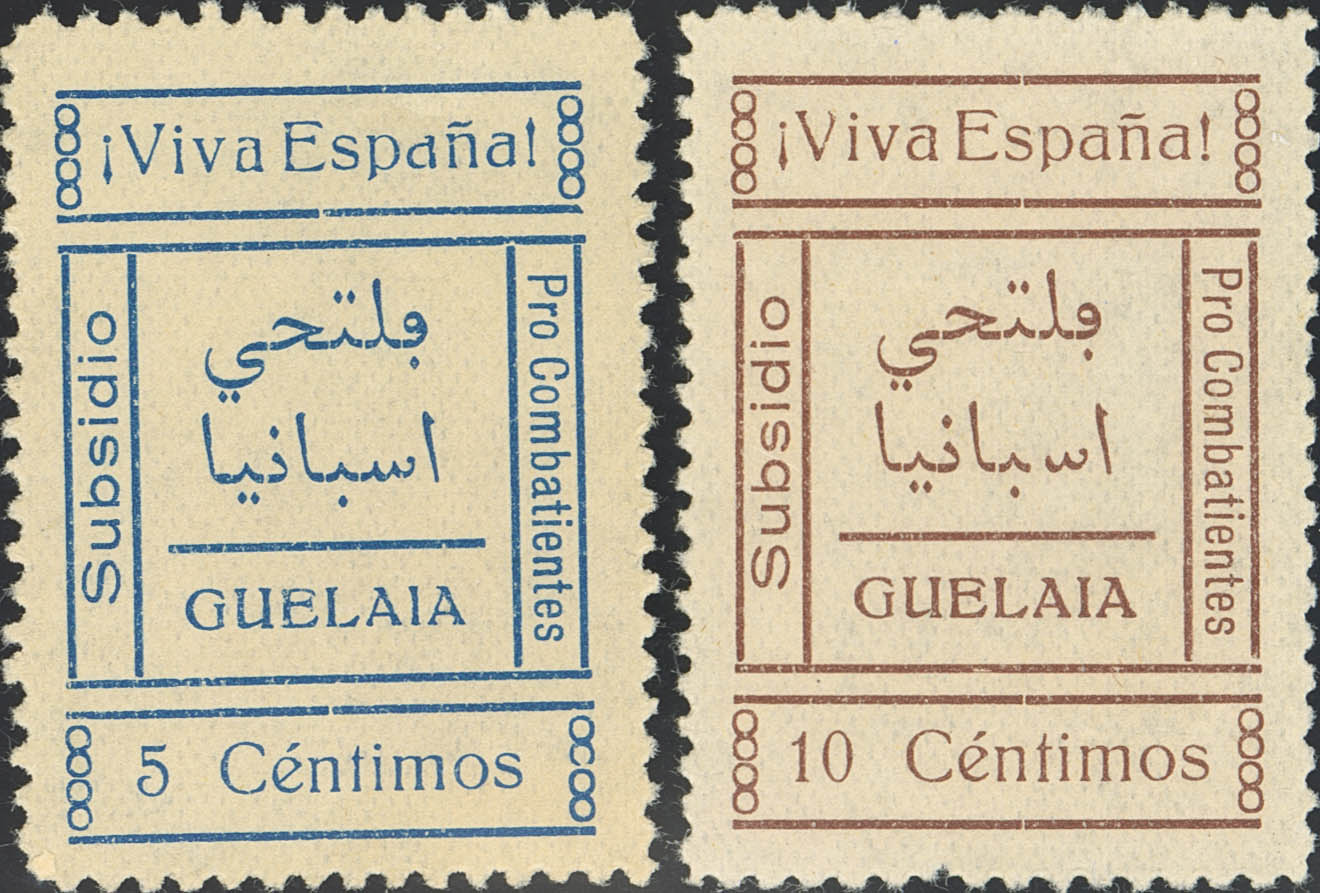 (★)(1936ca). 5 cts azul y 10 cts castaño. GUELAILA. SUBSIDIO PRO COMBATIENTES. MAGNIFICOS. (Fesofi 2/3, Allepuz 2/3)
