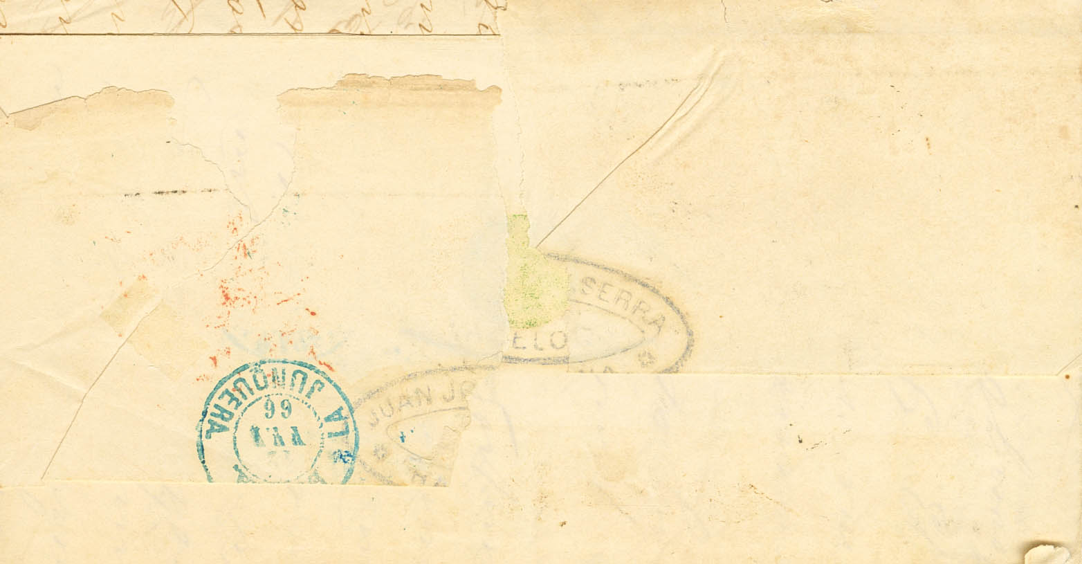 84(4). 1866. 10 cts verde, cuatro sellos. BARCELONA a MATAMOROS (MEJICO). Matasello BARCELONA / (3) (tipo modificado) y en el frente marca CORREOS / FRANCO / TAMPICO. MAGNIFICA Y ESPECTACULAR COMBINACION DE TARIFA PARA COMPLETAR UN PORTE SENCILLO CORRESPONDIENTE A 40 CENTIMOS Y EQUIVALENTE A LOS ANTIGUOS 4 REALES.