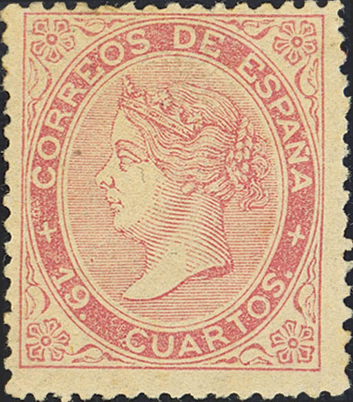 ★ 90. 1867. 19 cuartos rosa (esquina superior derecha retocada). BONITO. Cert. CEM.