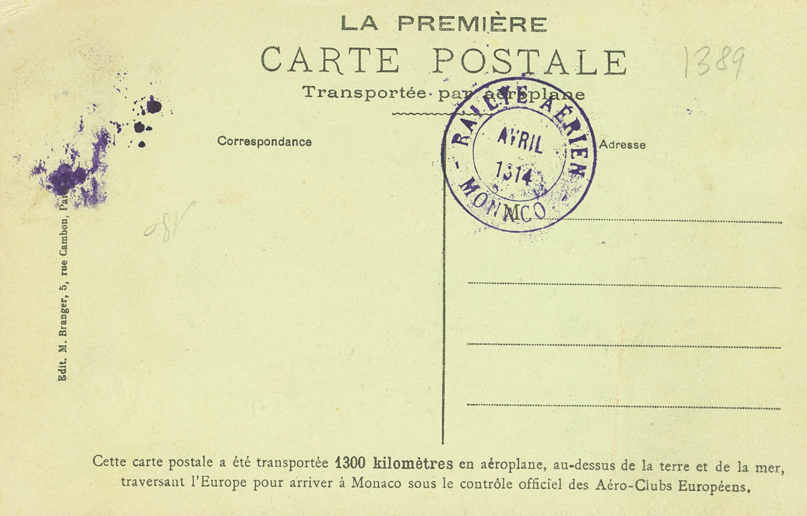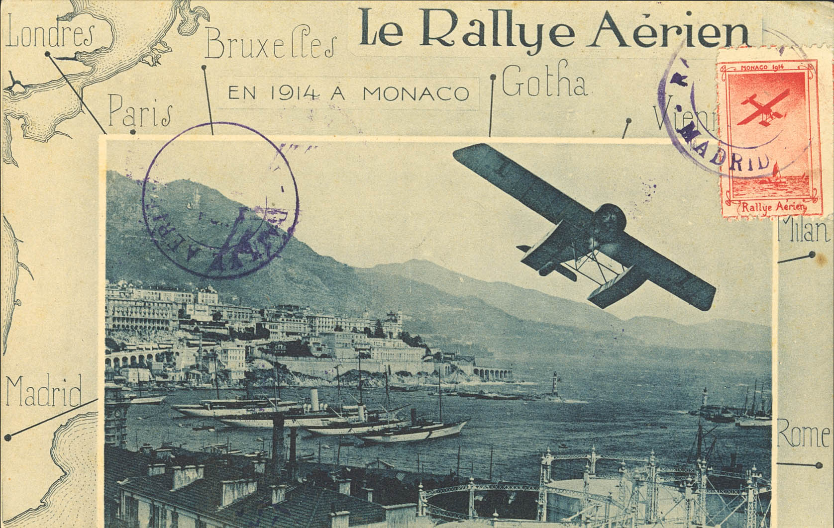 1914. Sin valor, rosa sobre Tarjeta Postal RALLY AERIEN de MADRID a MONACO. MAGNIFICA.