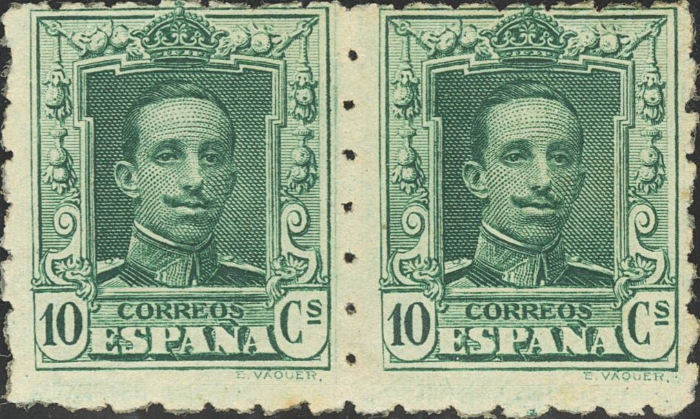 ★ 314de(2). 1922. 10 cts verde, pareja. DENTADO 6 1/2. MAGNIFICA. Edifil 2020: 142 Euros