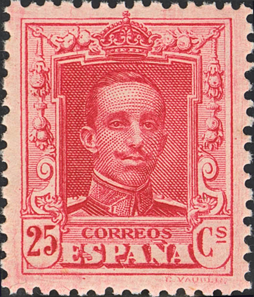 ★★ 317A. 1922. 25 cts rojo (Tipo II). Color y centraje excepcional. PIEZA DE LUJO.