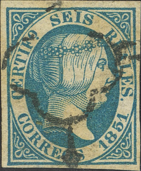 10. 1851. 6 reales azul. MAGNIFICO. Cert. GRAUS.