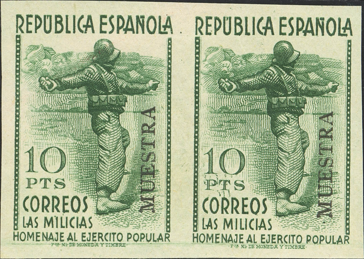 ★ 800Ms(2). 1938. 10 pts verde, pareja. SIN DENTAR y MUESTRA. MAGNIFICA. Edifil 2020: +234 Euros