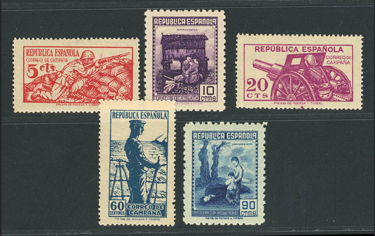 ★★ NE46/54N. 1938. Serie completa, cinco valores. (20 cts puntito de aguja sin importancia). NºA000000. MAGNIFICA. Edifil 2020: 82 Euros