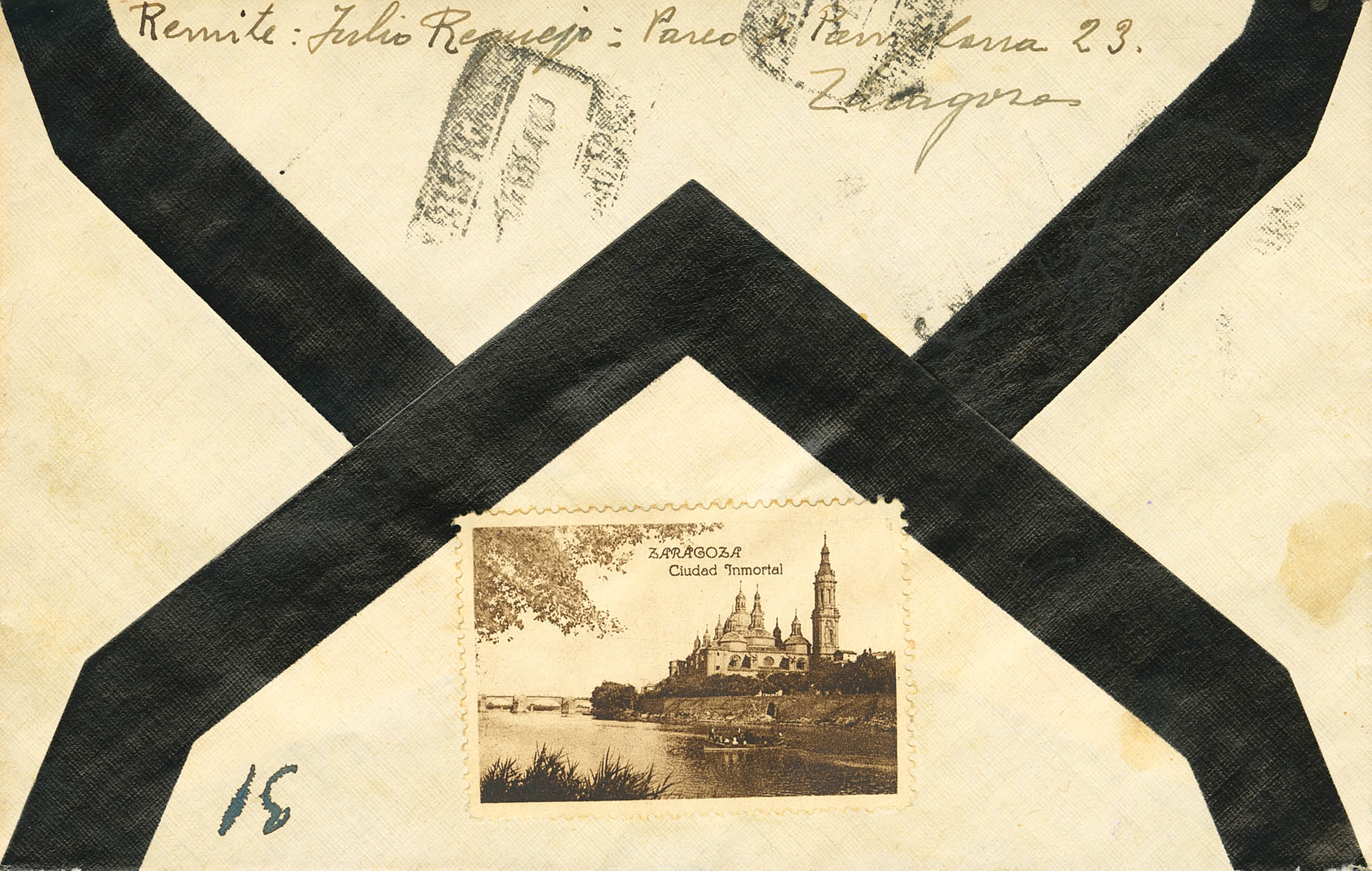 893(4). 1940. 40 cts+10 cts verde y rosa, bloque de cuatro. ZARAGOZA a MADRID. Al dorso llegada. MAGNIFICA.