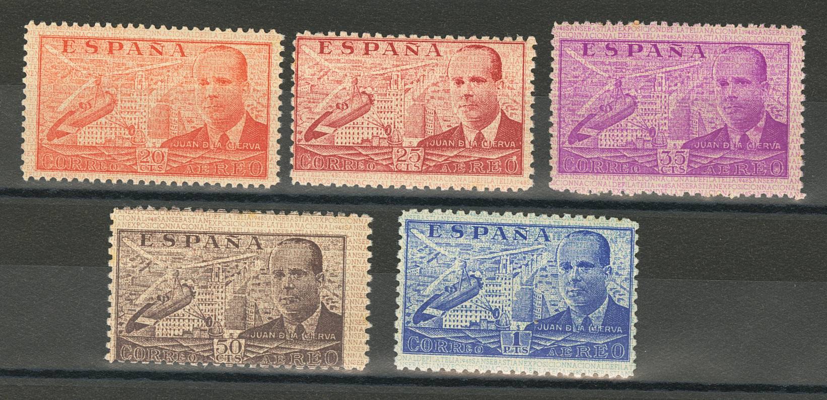 ★★ 940/44l. 1940. Serie completa, cinco valores. EXPOSICION NACIONAL FILATELICA 1948 SAN SEBASTIAN. MAGNIFICA. Edifil 2026: 85 Euros