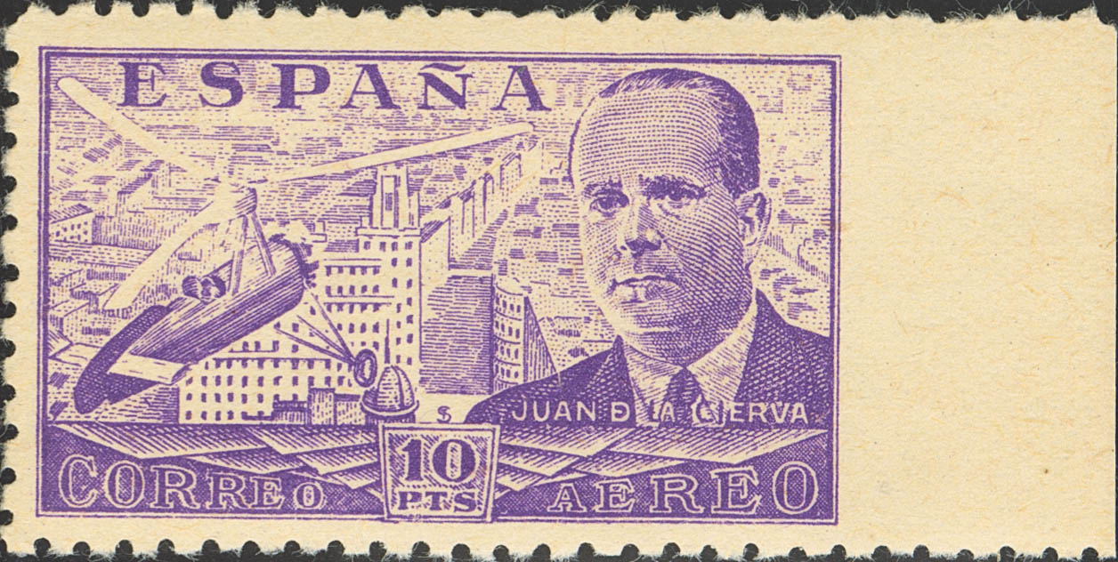 ★★ 947smd. 1940. 10 pts violeta, borde de hoja. SIN DENTAR. MAGNIFICO Y EXTRAORDINARIAMENTE RARO.