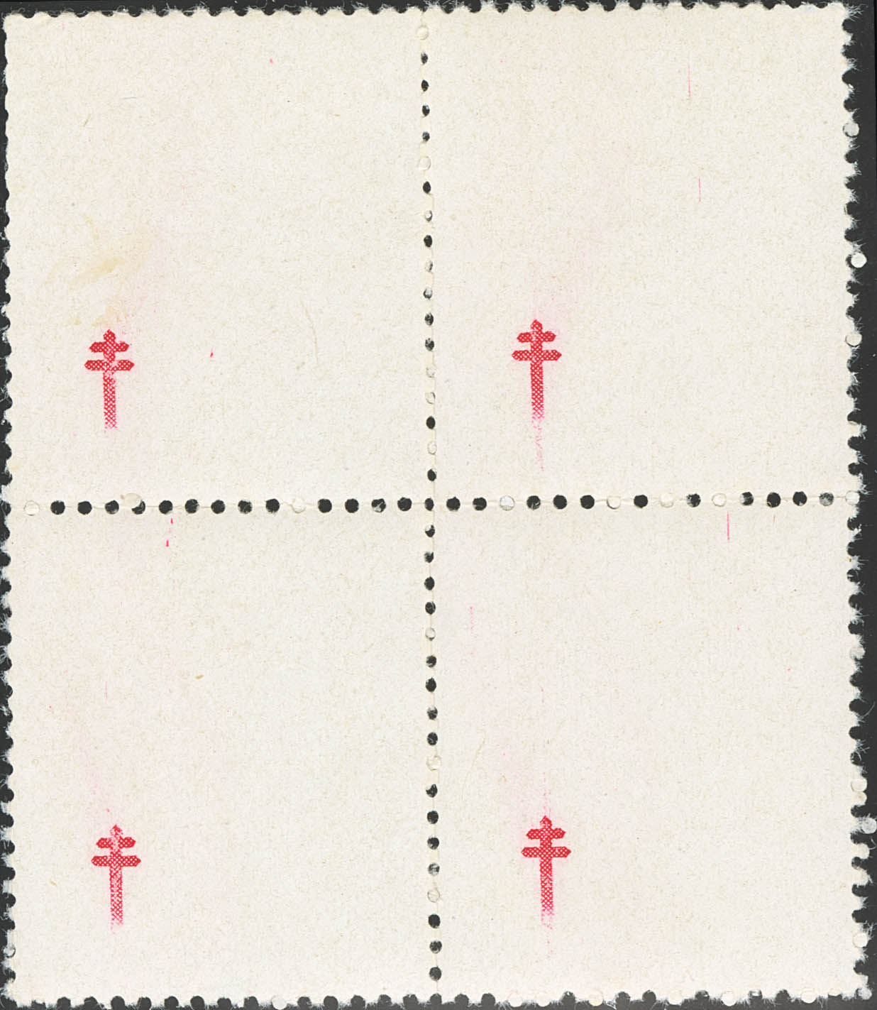 ★★1948. SIN IMPRESION DEL SELLO, SOLO IMPRESA LA CRUZ DE LORENA, bloque de cuatro. MAGNIFICO Y RARO.
