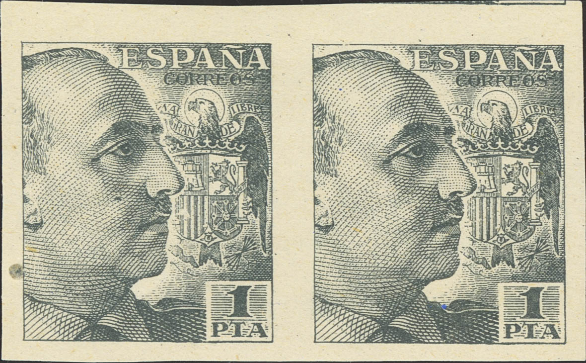 ★ 1056s(2). 1948. 1 pts negro, pareja. SIN DENTAR. MAGNIFICA Y MUY RARA, NO RESEÑADA. Cert. COMEX.