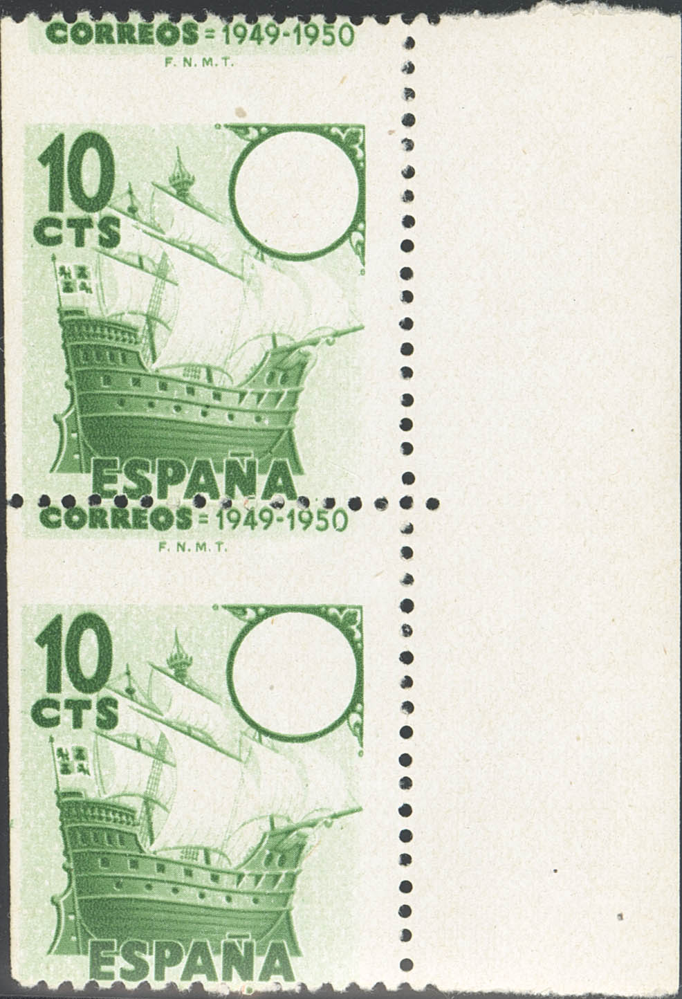 ★★ 1067eph(2). 1949. 10 cts verde, pareja. Variedad SIN CRUZ DE LORENA y DENTADO DESPLAZADO. MAGNIFICA. Edifil 2021: 110 Euros