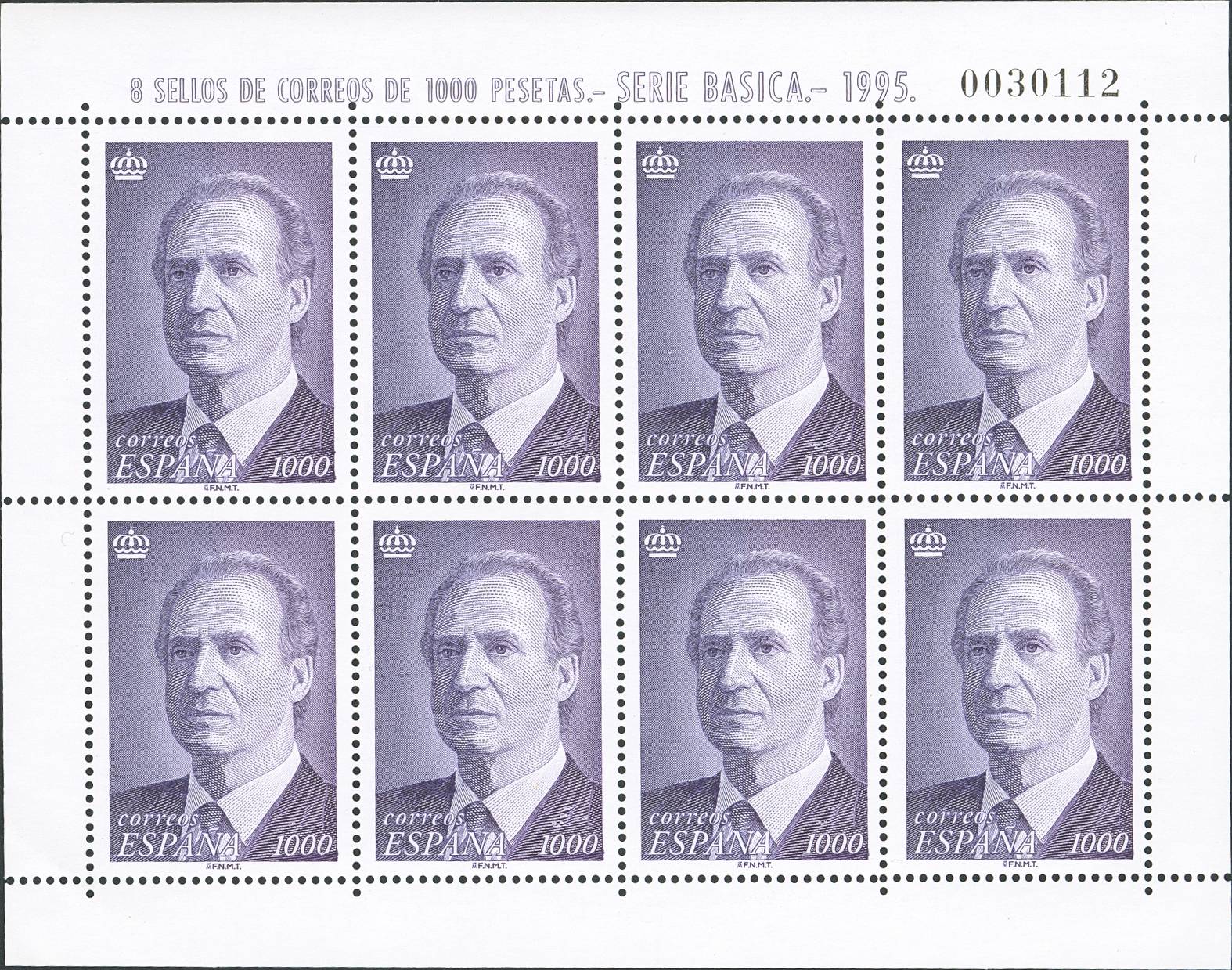 ★★ 3403(8). 1995. 1000 pts violeta, minihoja de ocho sellos. MAGNIFICA. Edifil 2026: 440 Euros