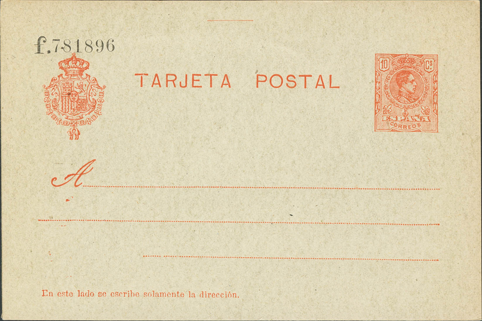 (★) EP49C. 1910. 10 cts naranja sobre Tarjeta Entero Postal (cartulina gris). MAGNIFICA. Edifil 2017: 83 Euros