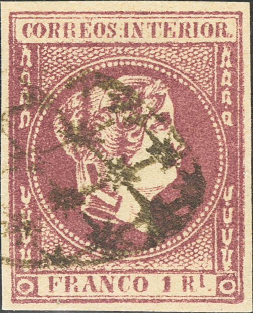 13F. 1863. 1 real violeta. FALSO SPERATI, al dorso marca B.P.A. MAGNIFICO.