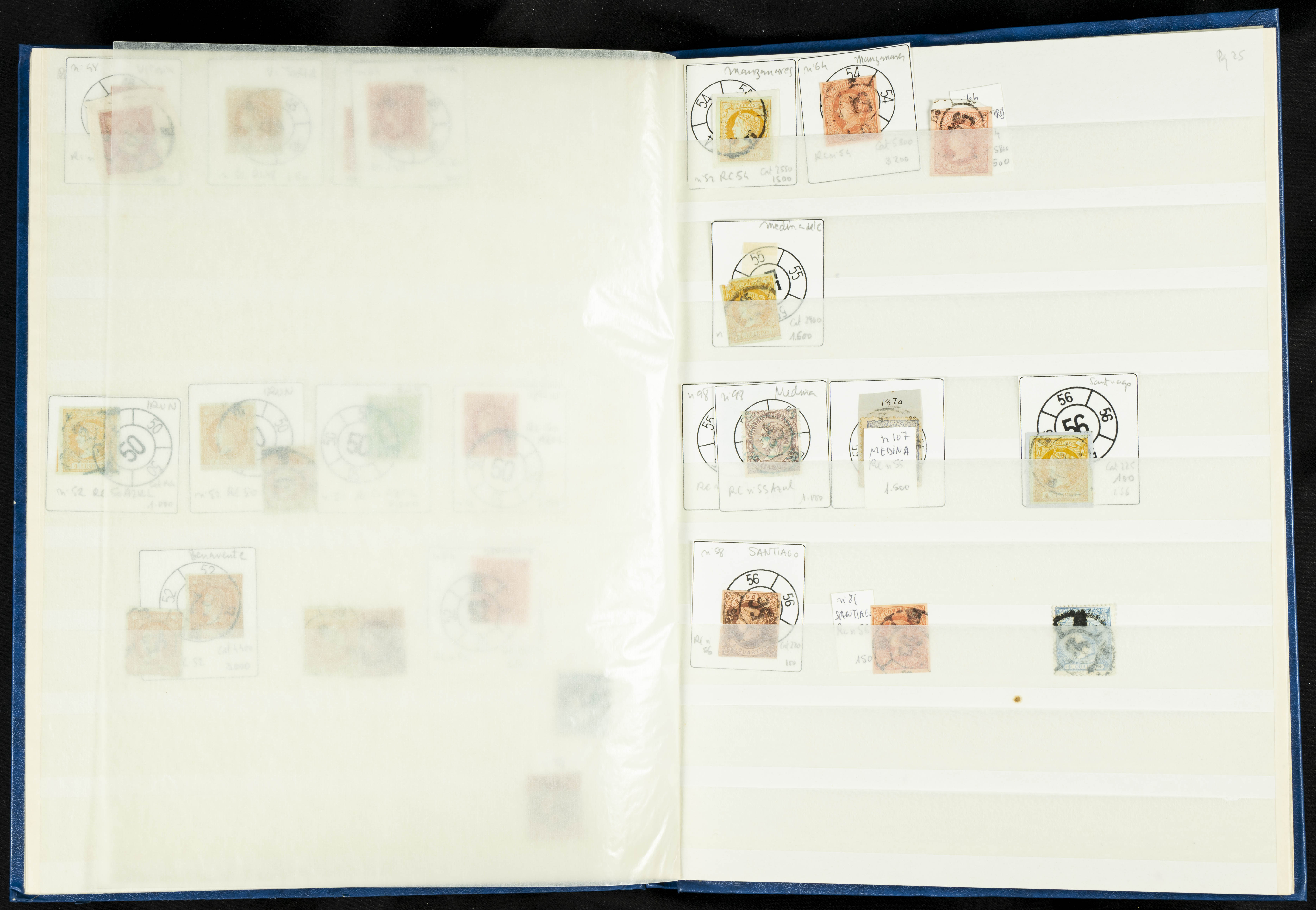 English (1851ca). Interesting collection of hundreds of classic stamps used between 1851 and 1870, most from 1855 onwards with cartwheel postmarks, arranged by town. TO BE EXAMINED.