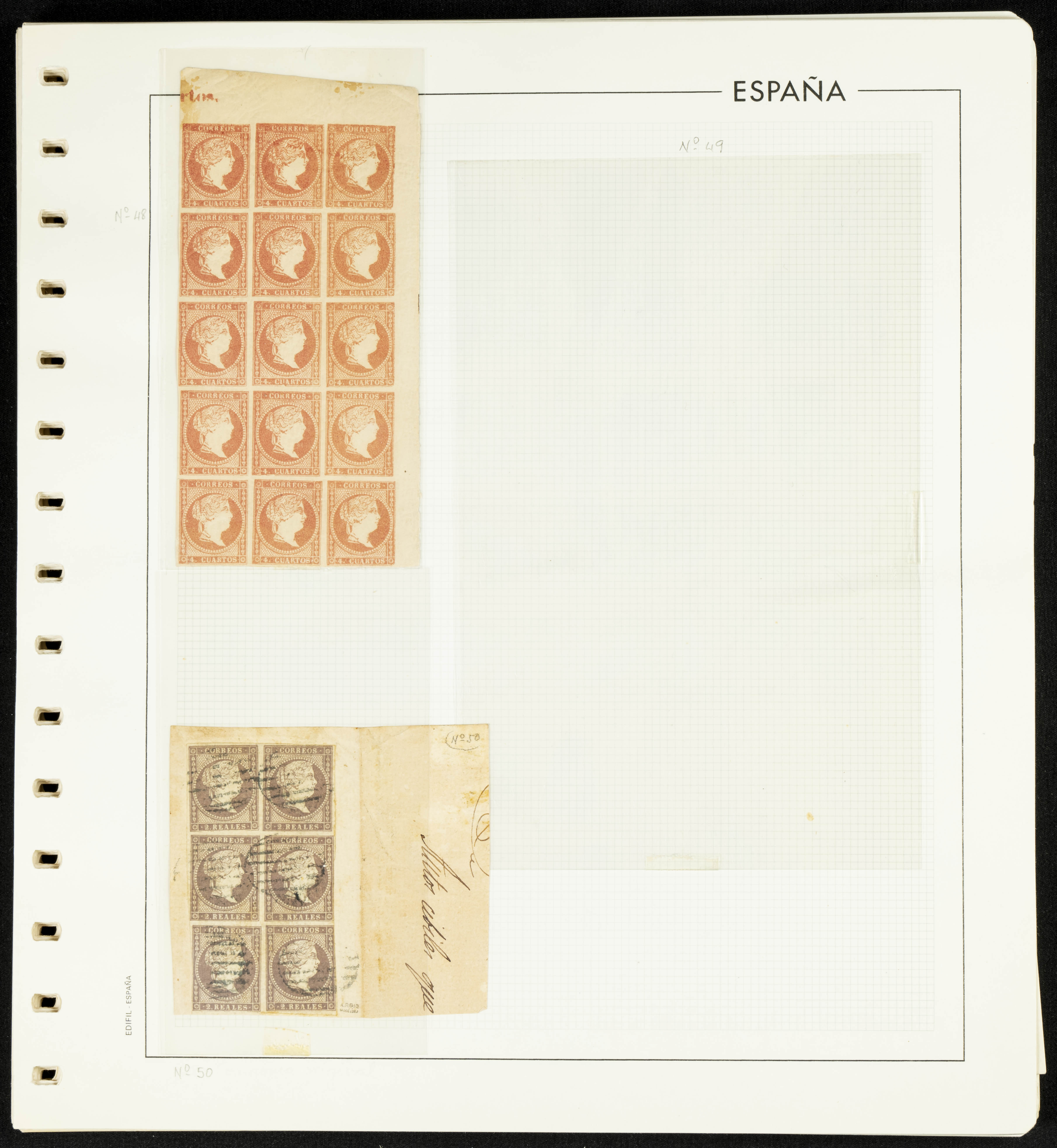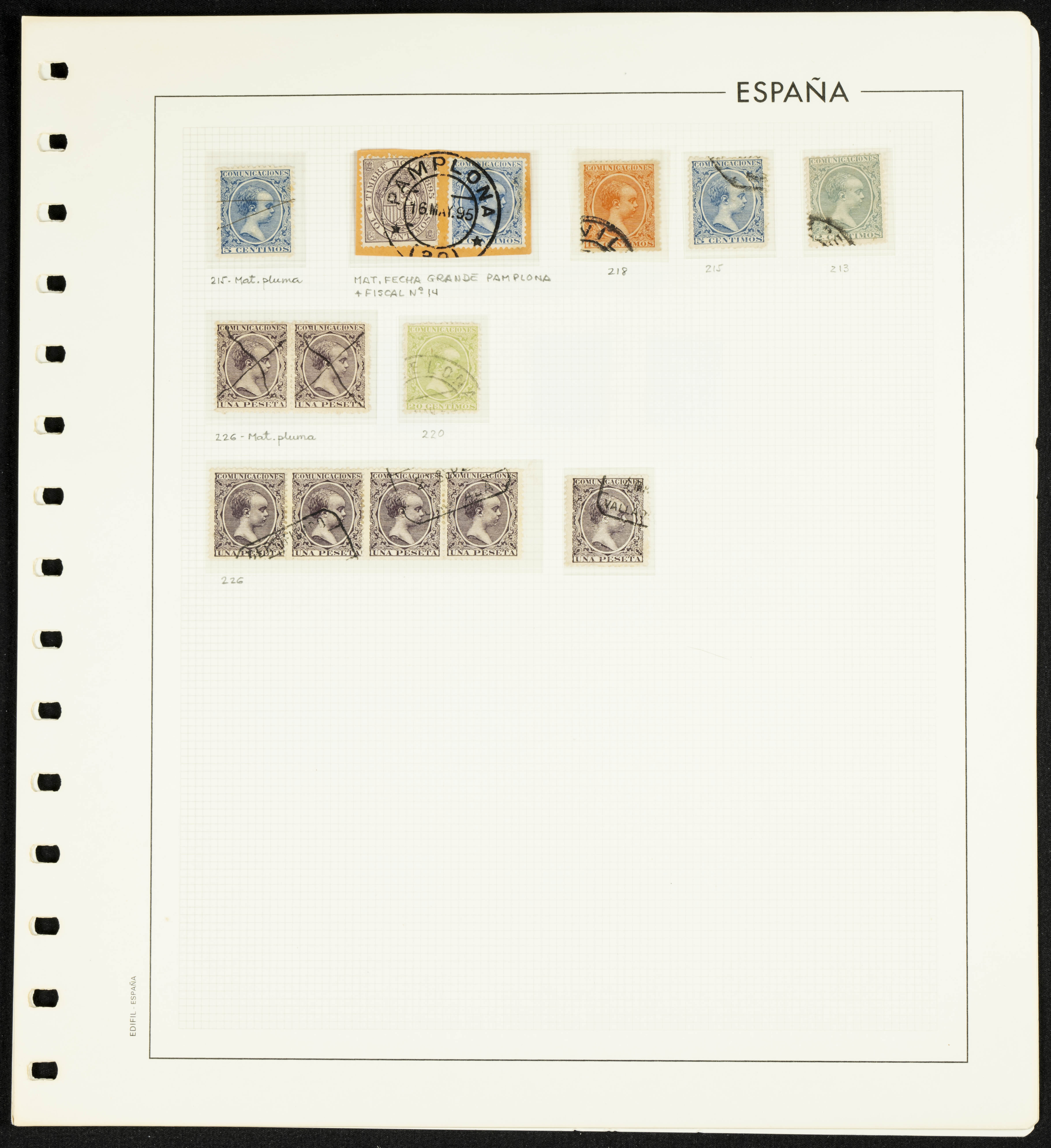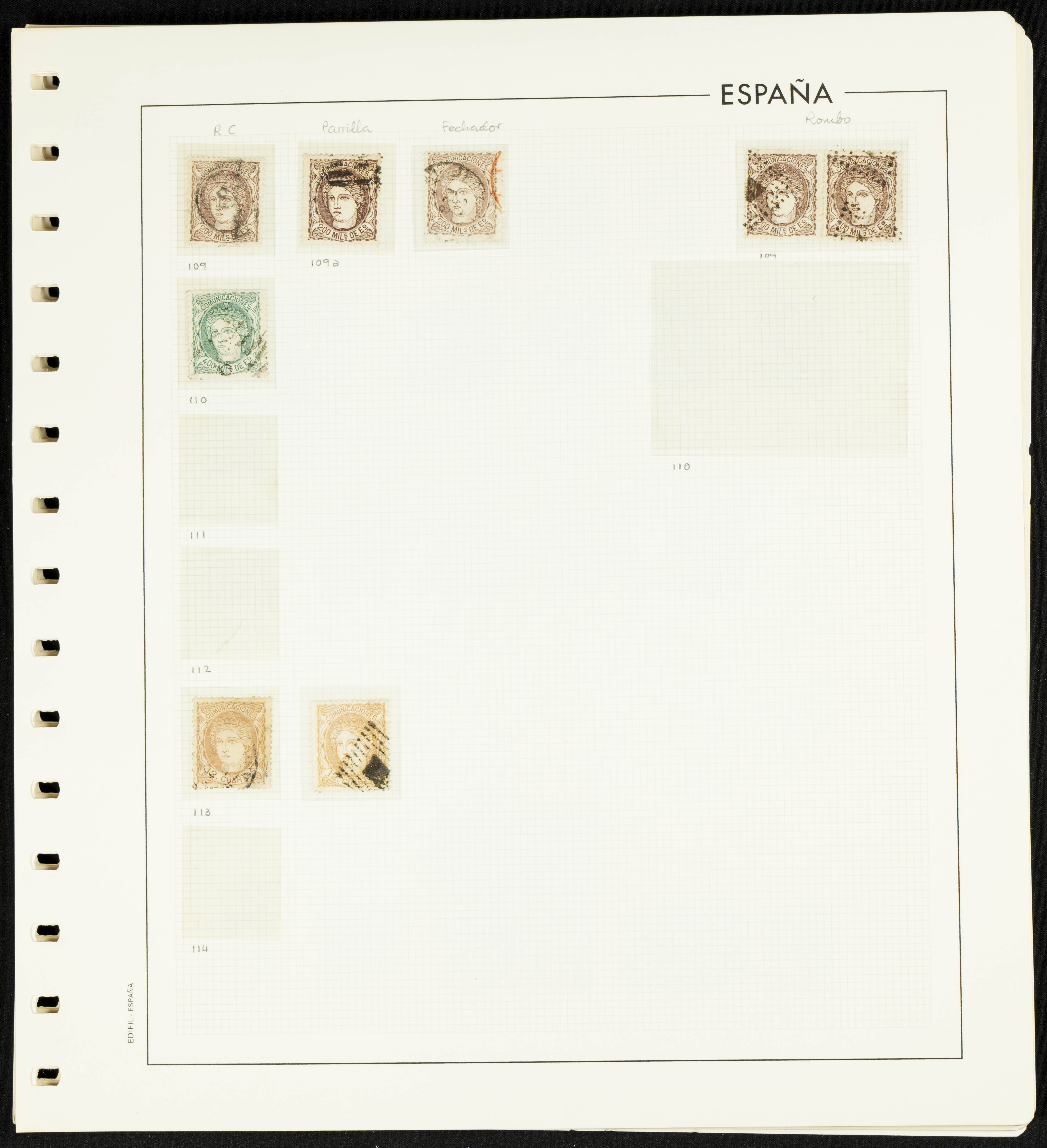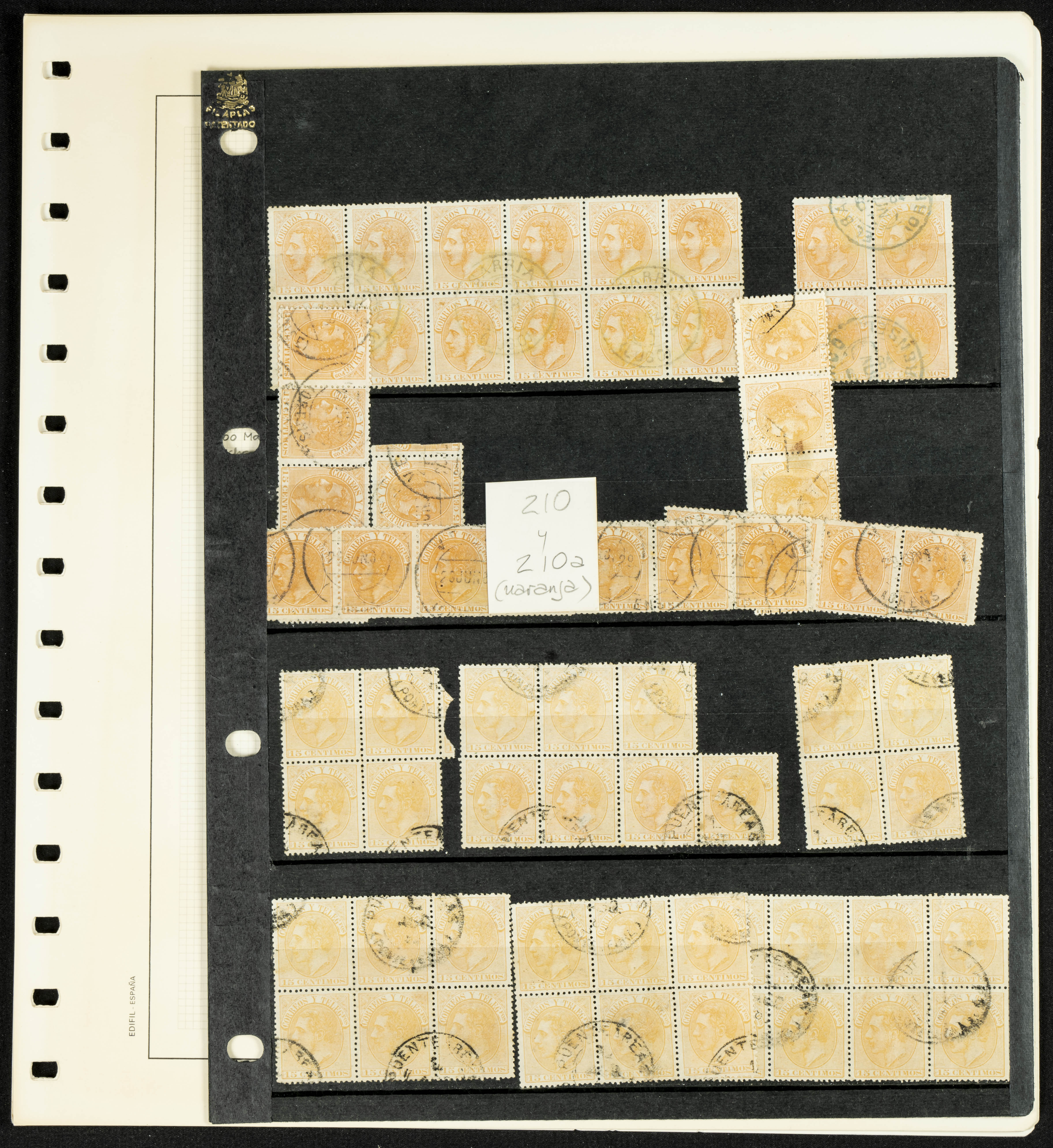★/(1853ca). A fascinating collection of classic stamps from 1853 to 1898, in used condition and including numerous cliché varieties, dozens of special postmarks (pre-philatelic, certified, date, wagon wheels, two of Carril, feather, postage, etc.), large blocks (some mint), some letters, etc. A MUST-SEE.