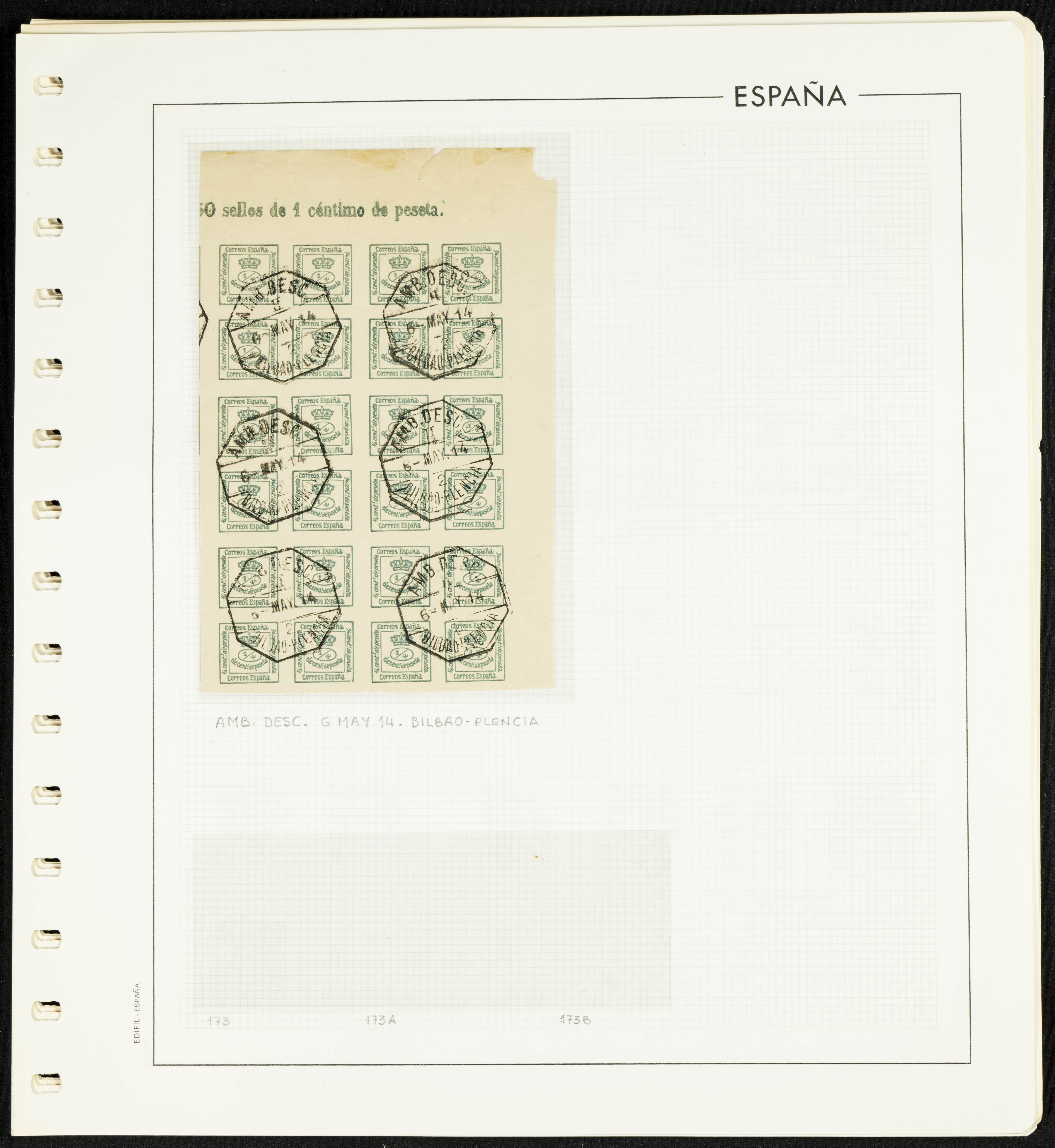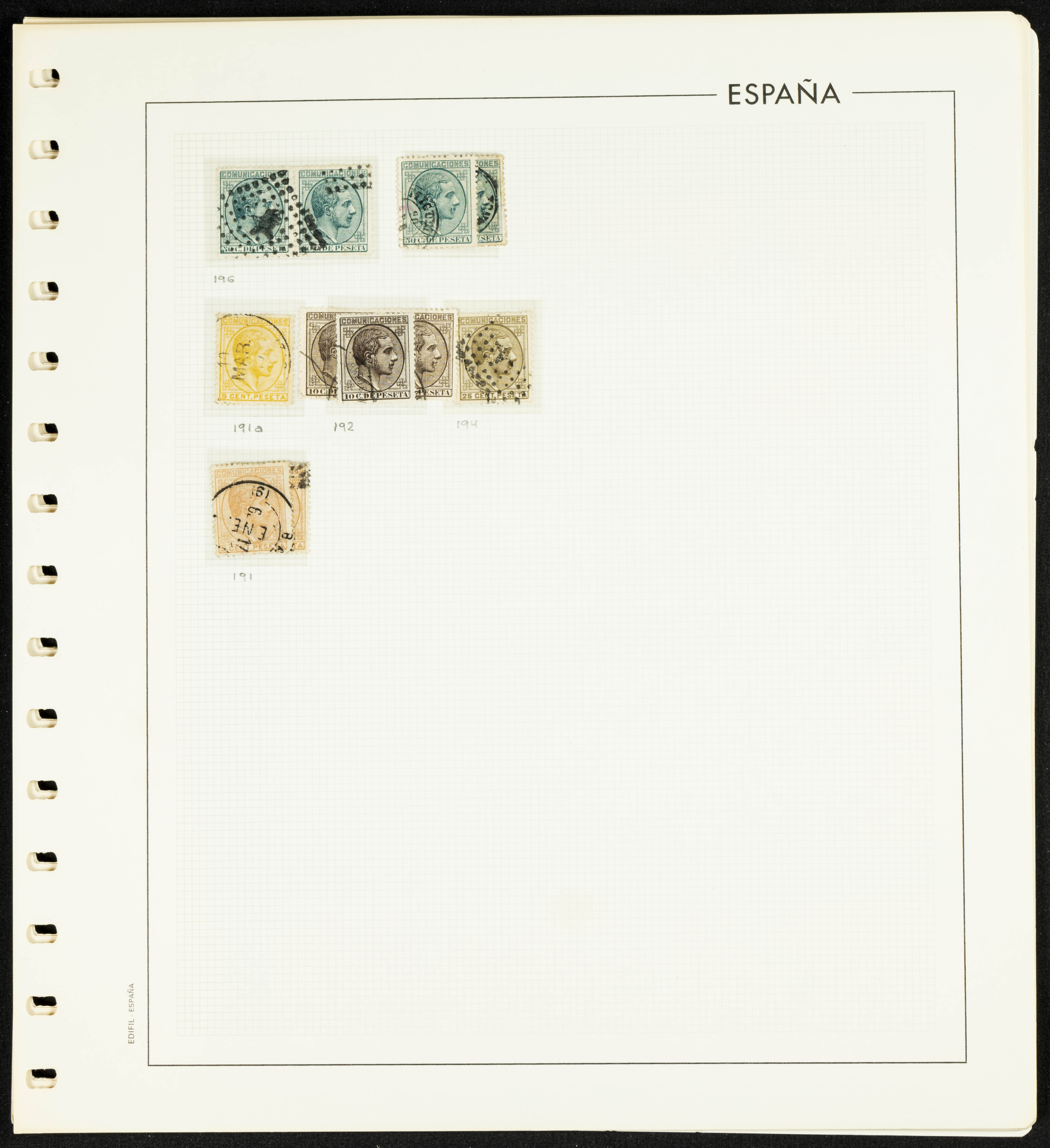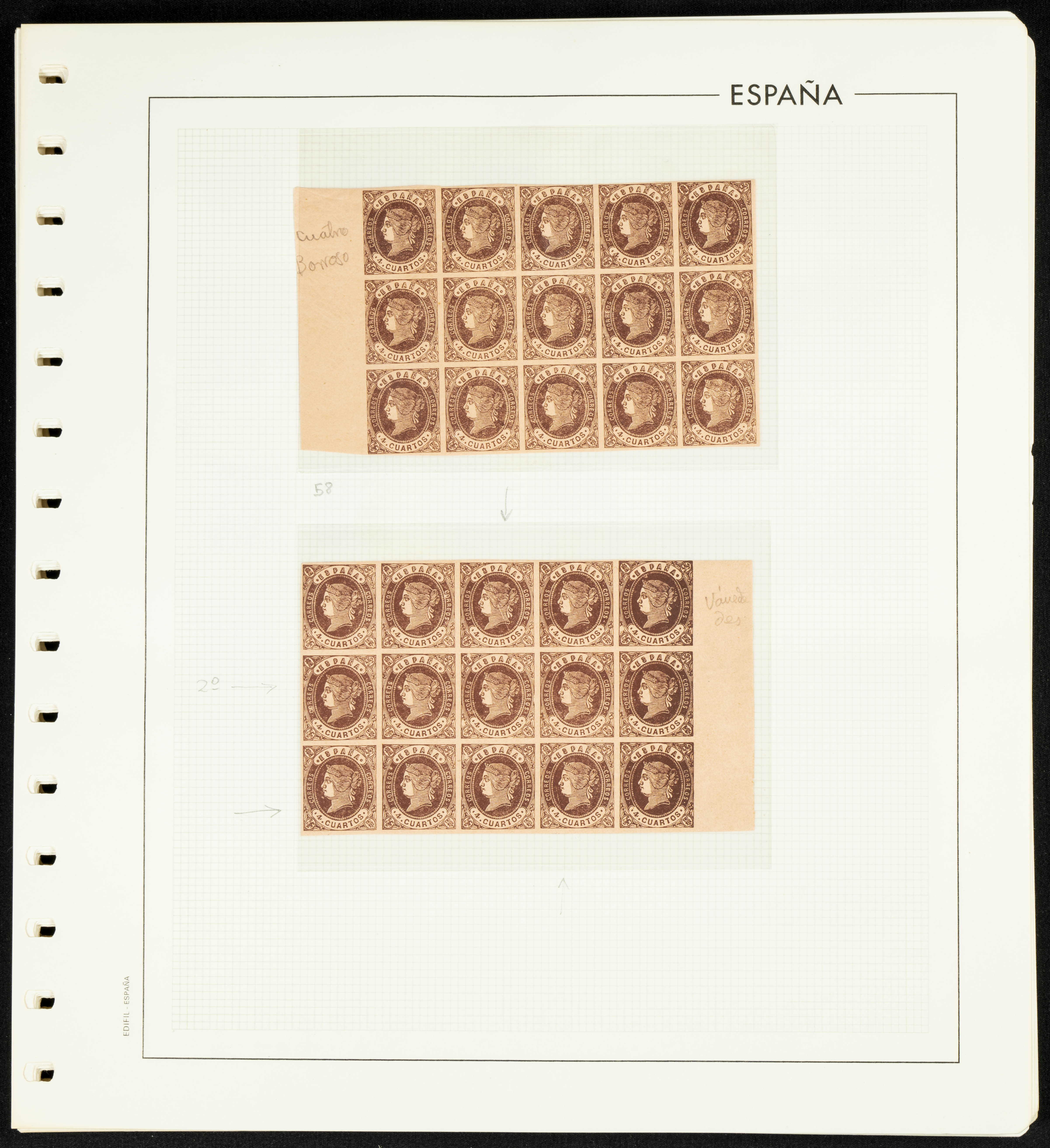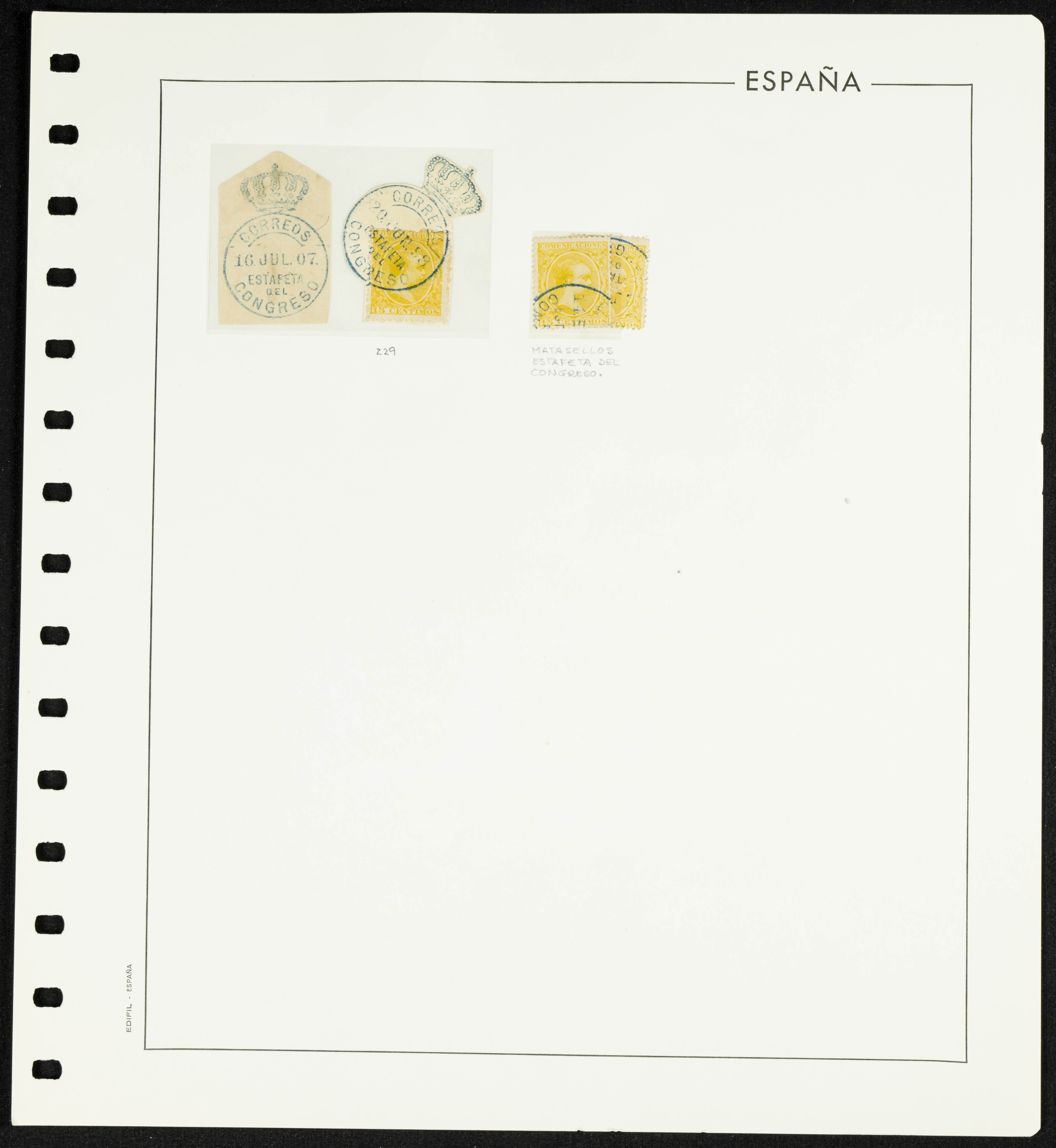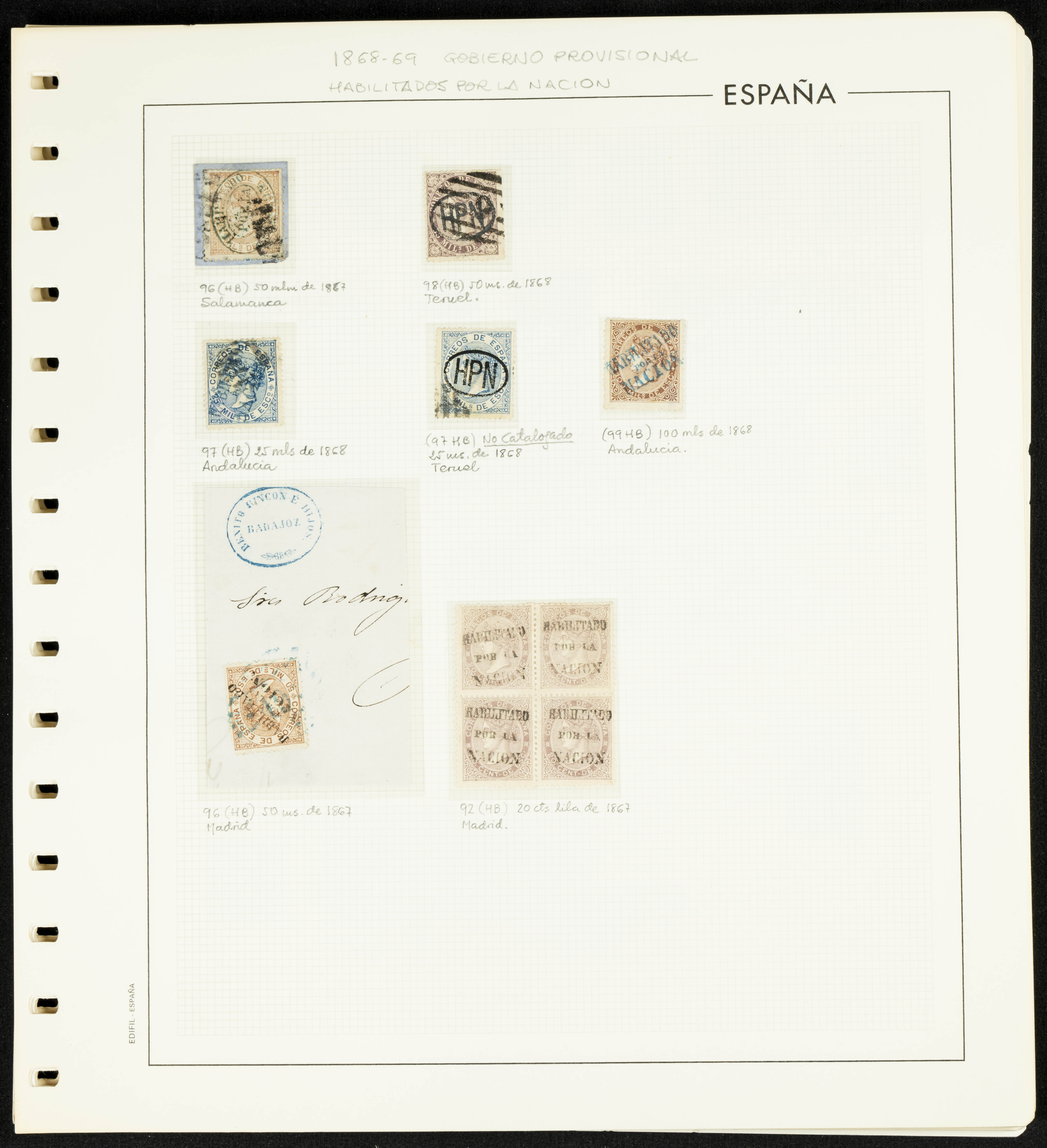 ★/(1853ca). A fascinating collection of classic stamps from 1853 to 1898, in used condition and including numerous cliché varieties, dozens of special postmarks (pre-philatelic, certified, date, wagon wheels, two of Carril, feather, postage, etc.), large blocks (some mint), some letters, etc. A MUST-SEE.