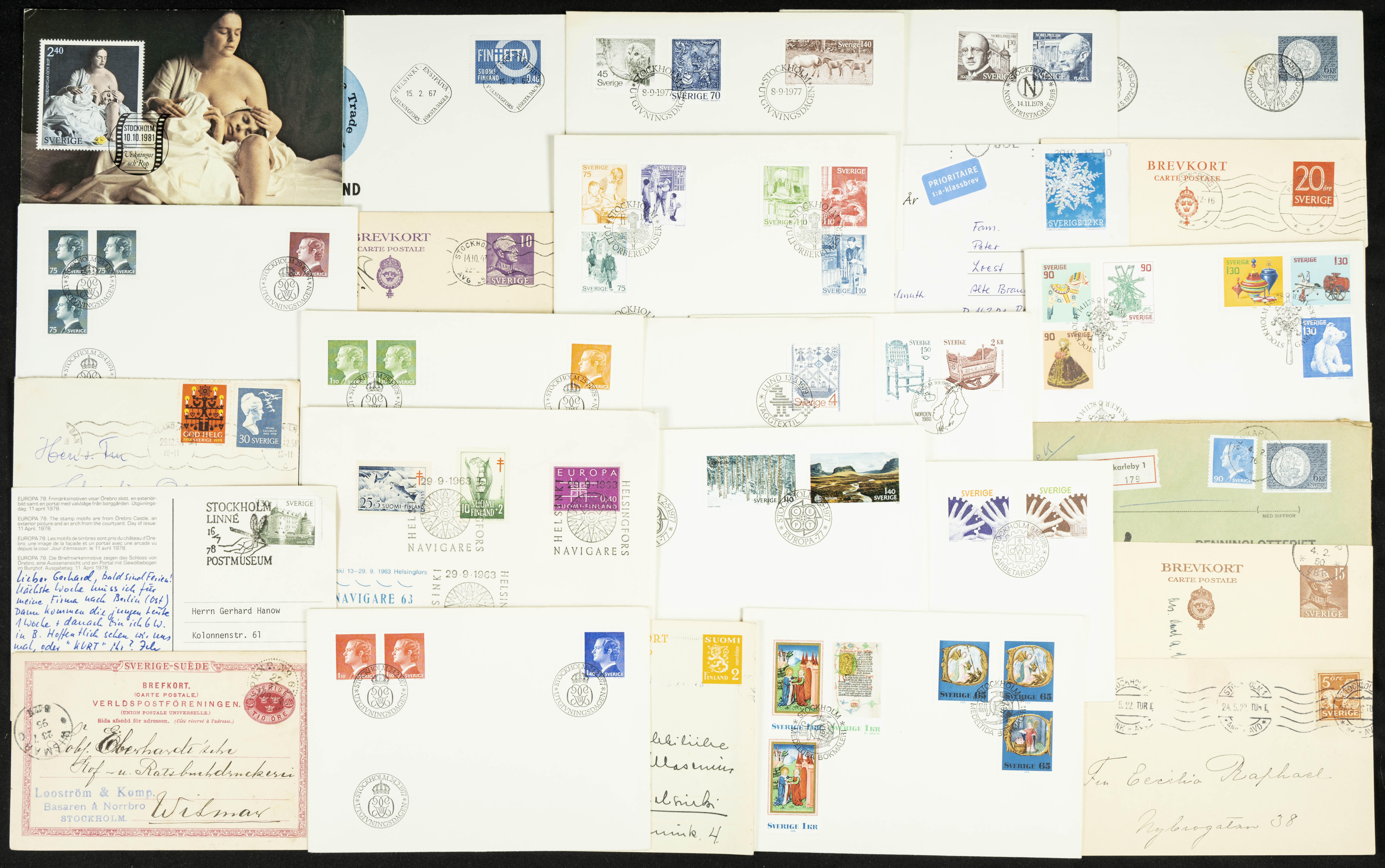 English (circa 1895). Interesting collection of over 150 letters and postal stationery cards from Finland and Sweden, circulated between 1895 and 1985, including some First Day Covers and mint postal stationery cards. TO BE EXAMINED.