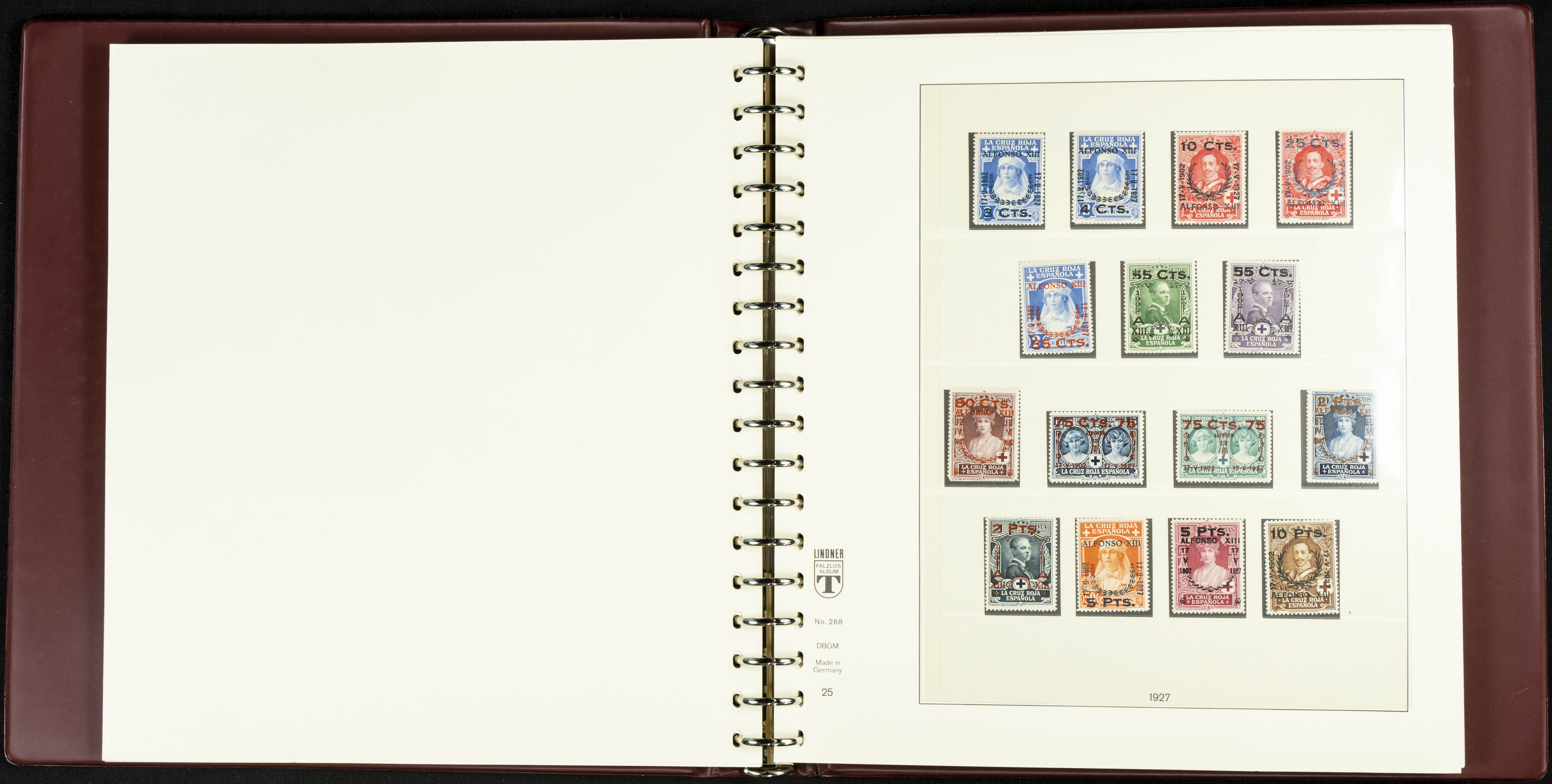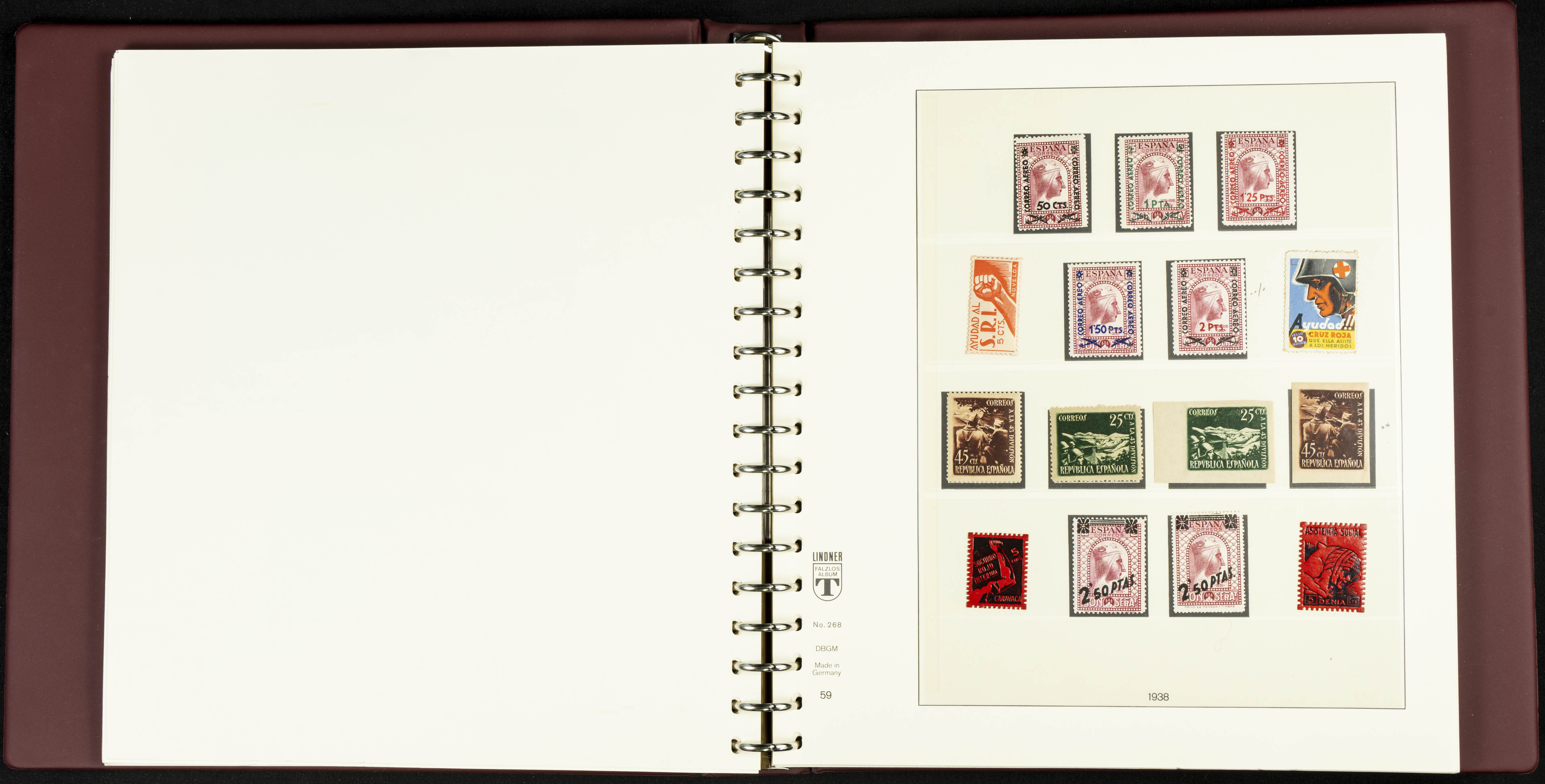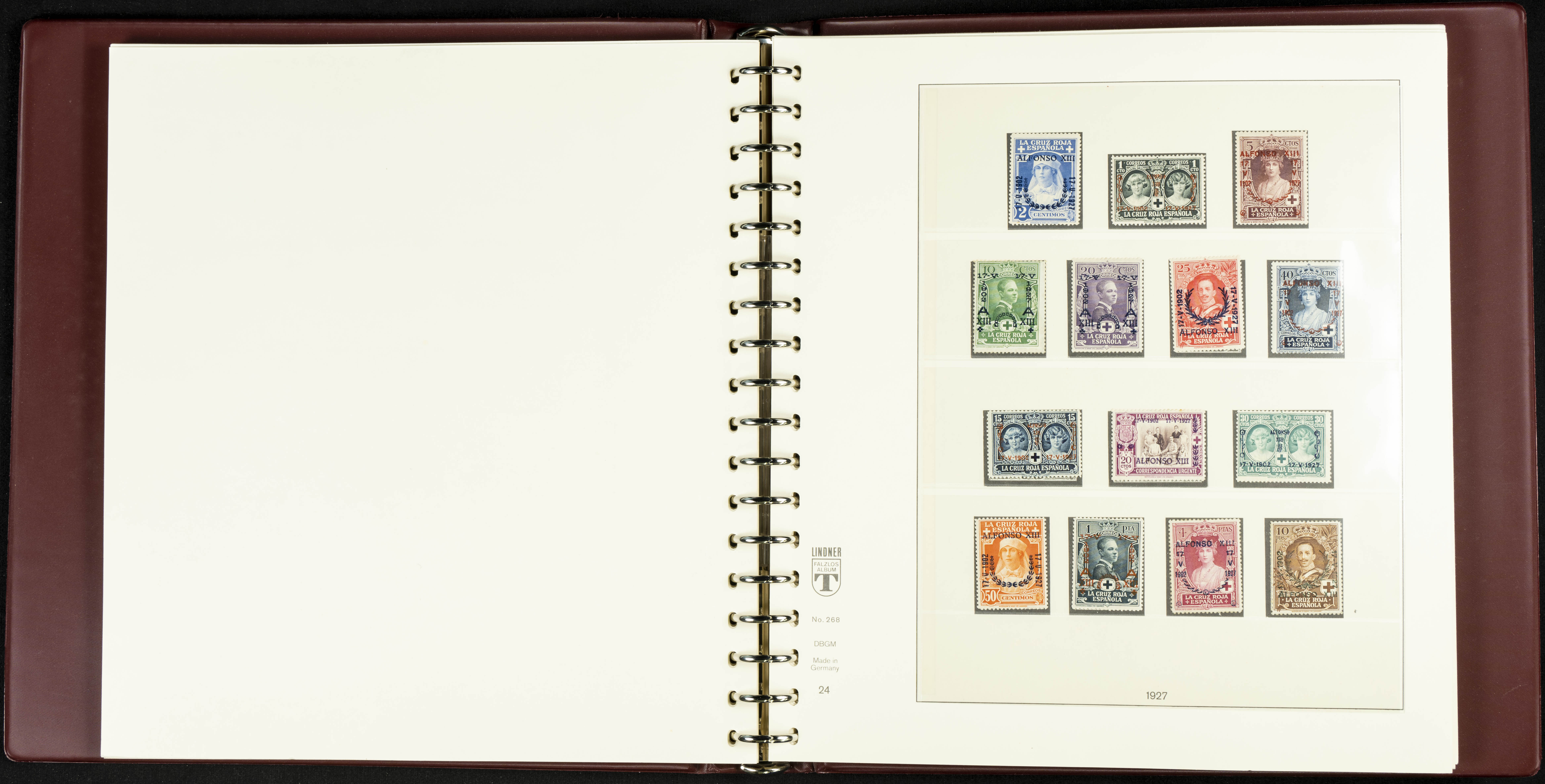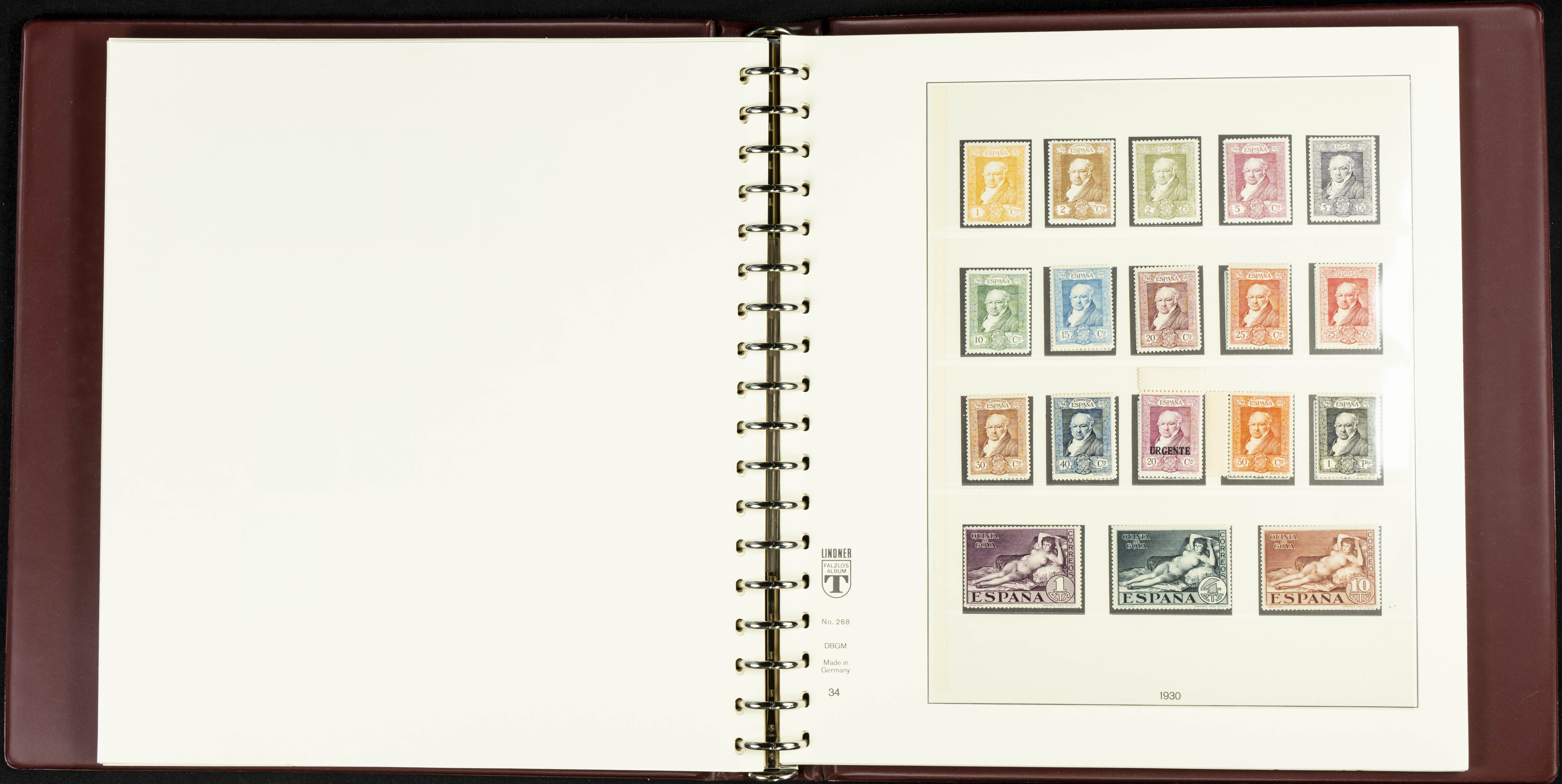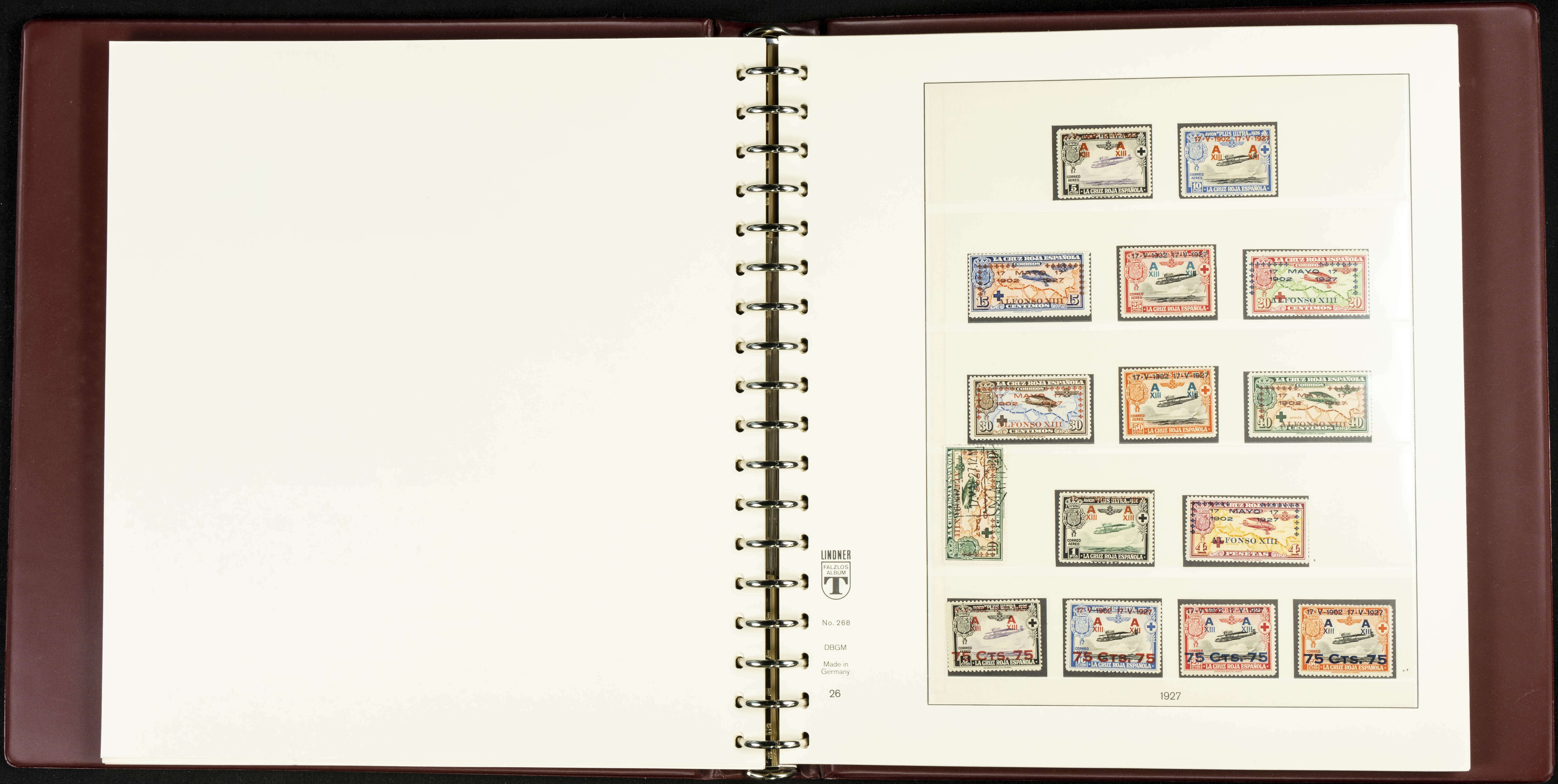English ★★/★(1889ca). Spectacular and practically complete collection from 1889 to 1949, in mint condition (most with hinges and some used series), highlighting Don Quixote, Medallion (very well centered), UPU, Red Cross (all, including the original Colonies series), Railway, Montserrat (without hinges except for the 20 cts urgent stamp), Expo Madrid (without hinges), Airmail + 5 Pts surcharges, Constitution stamps and souvenir sheet (the latter with certificate), Submarine series and souvenir sheet (with stamps from the souvenir sheet and one imperforate series), Militia, Cid and Isabella (without hinges), imperforate Toledo and Lepanto souvenir sheets, Pilar (land and airmail, the 10 pts without hinges), Franco, etc., in addition to some unissued stamps. EXTREMELY HIGH CATALOGUE VALUE. EXAMINATION IS ESSENTIAL.