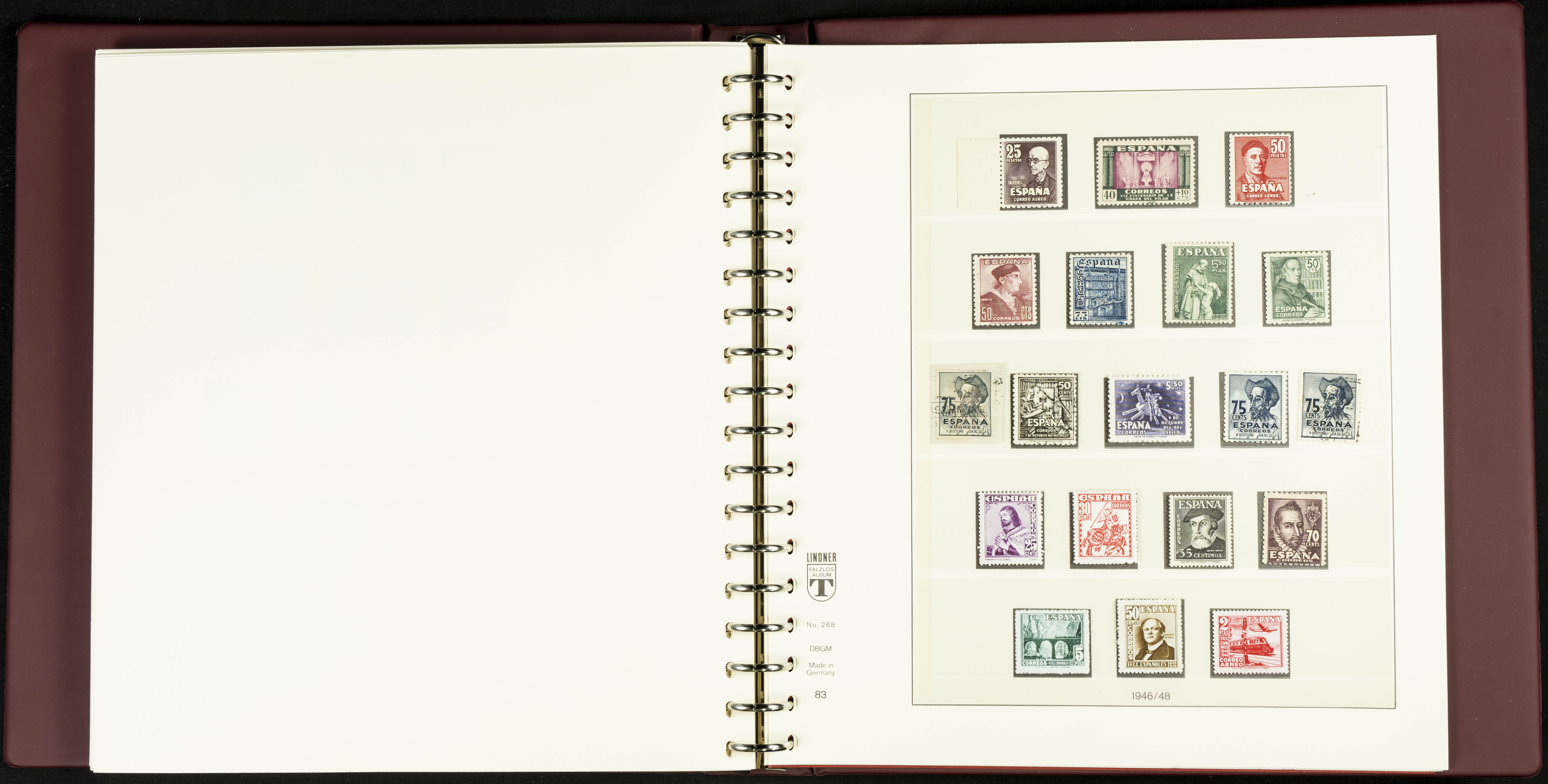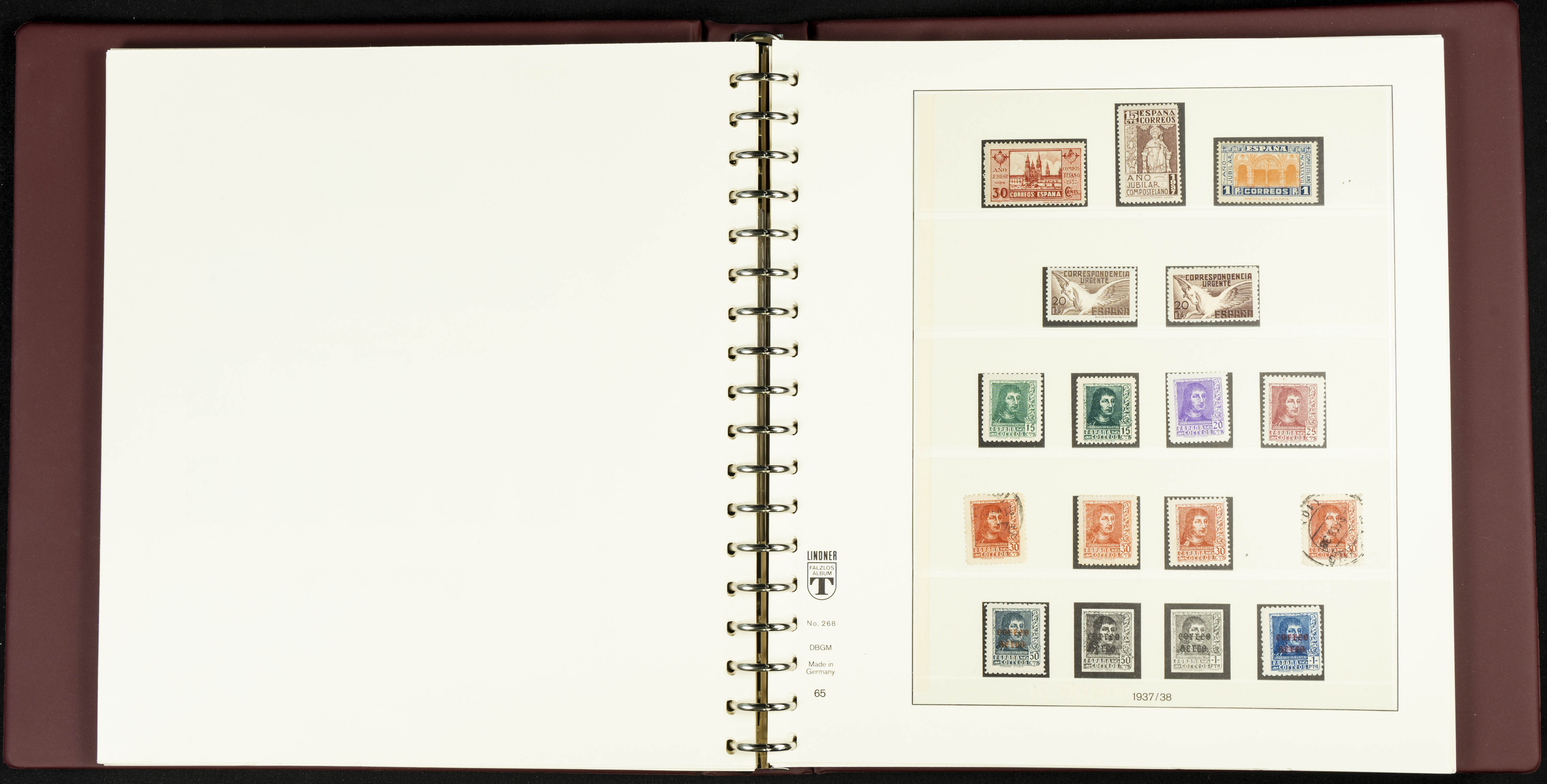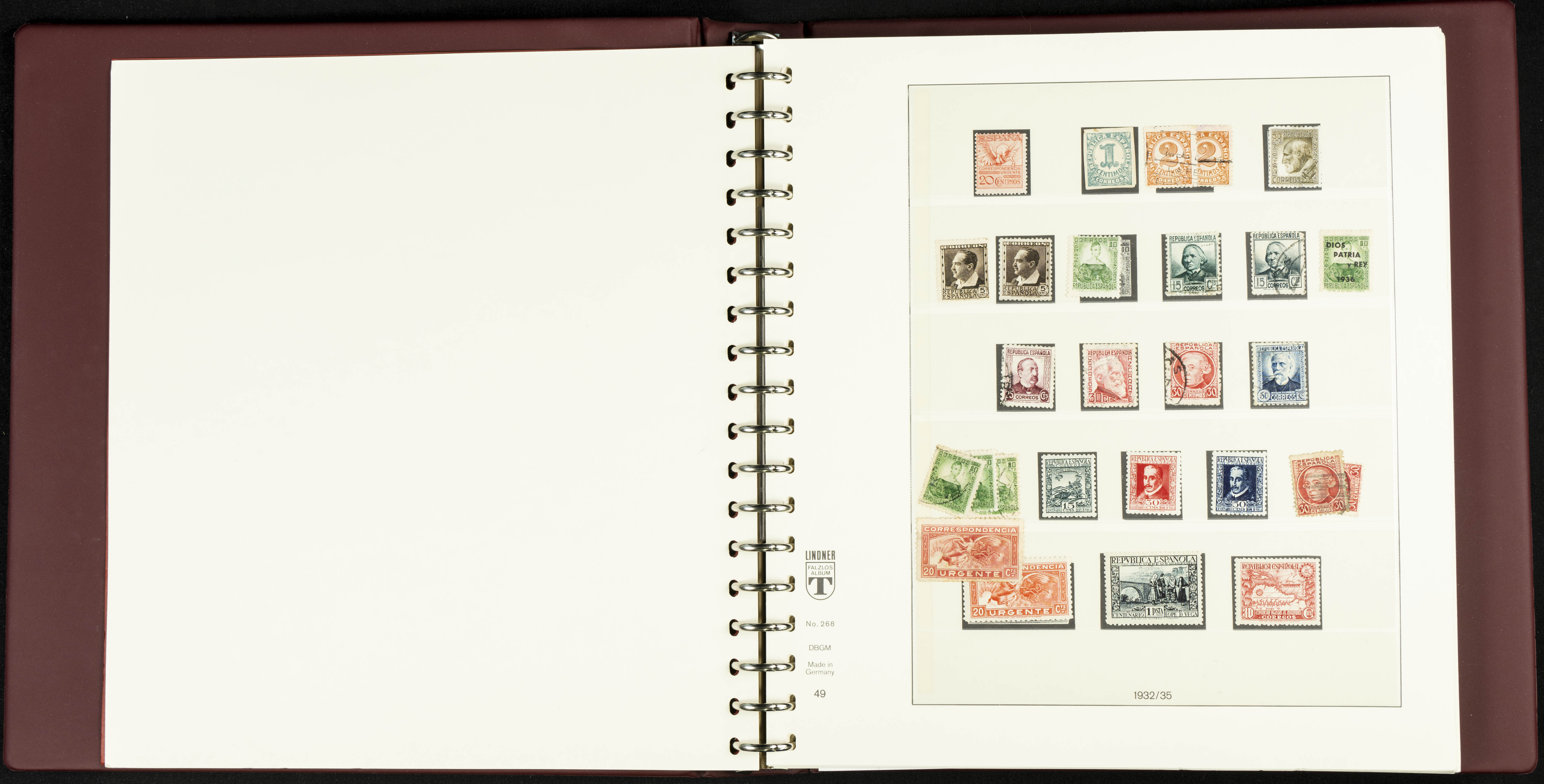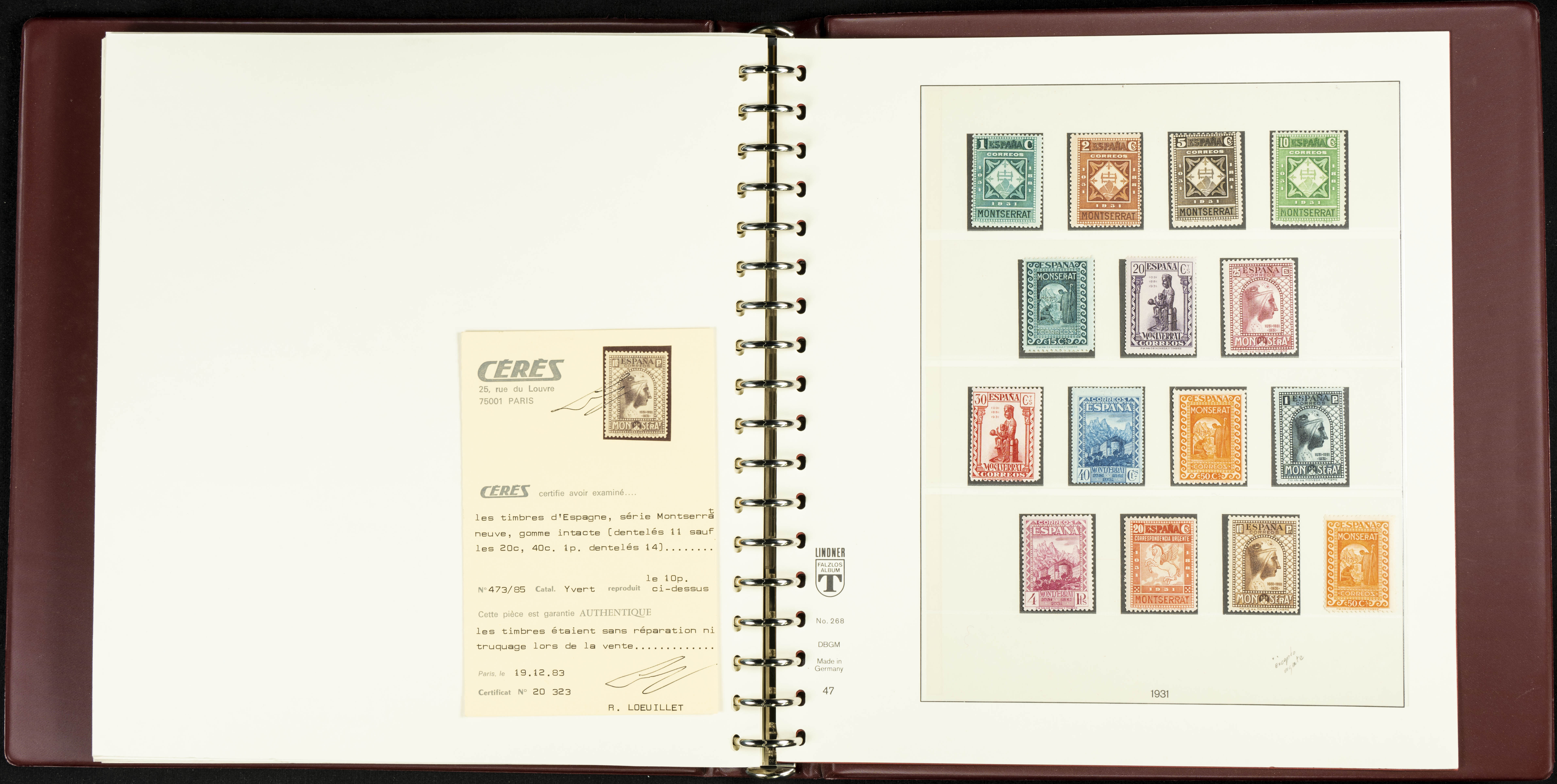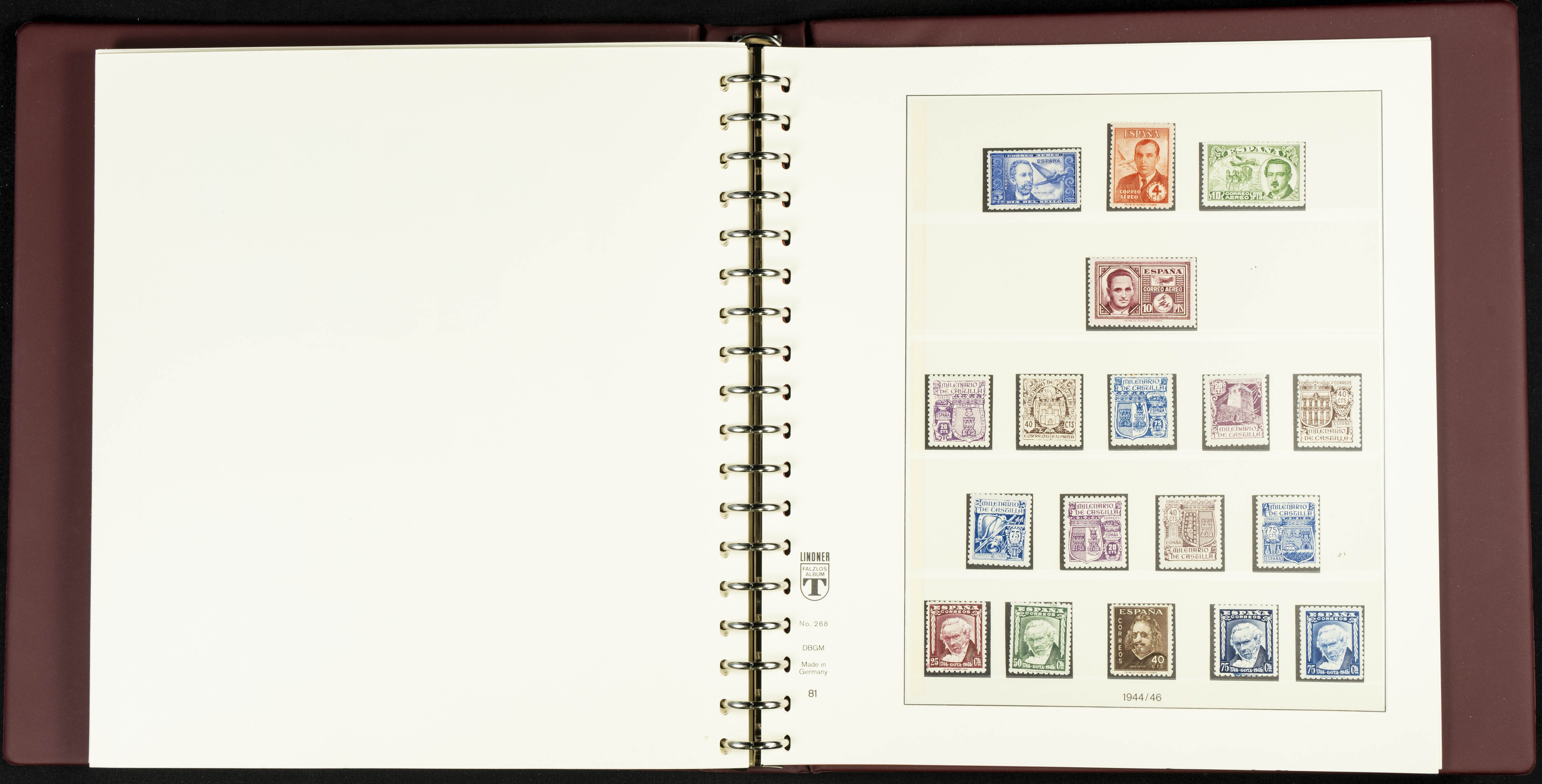 English ★★/★(1889ca). Spectacular and practically complete collection from 1889 to 1949, in mint condition (most with hinges and some used series), highlighting Don Quixote, Medallion (very well centered), UPU, Red Cross (all, including the original Colonies series), Railway, Montserrat (without hinges except for the 20 cts urgent stamp), Expo Madrid (without hinges), Airmail + 5 Pts surcharges, Constitution stamps and souvenir sheet (the latter with certificate), Submarine series and souvenir sheet (with stamps from the souvenir sheet and one imperforate series), Militia, Cid and Isabella (without hinges), imperforate Toledo and Lepanto souvenir sheets, Pilar (land and airmail, the 10 pts without hinges), Franco, etc., in addition to some unissued stamps. EXTREMELY HIGH CATALOGUE VALUE. EXAMINATION IS ESSENTIAL.