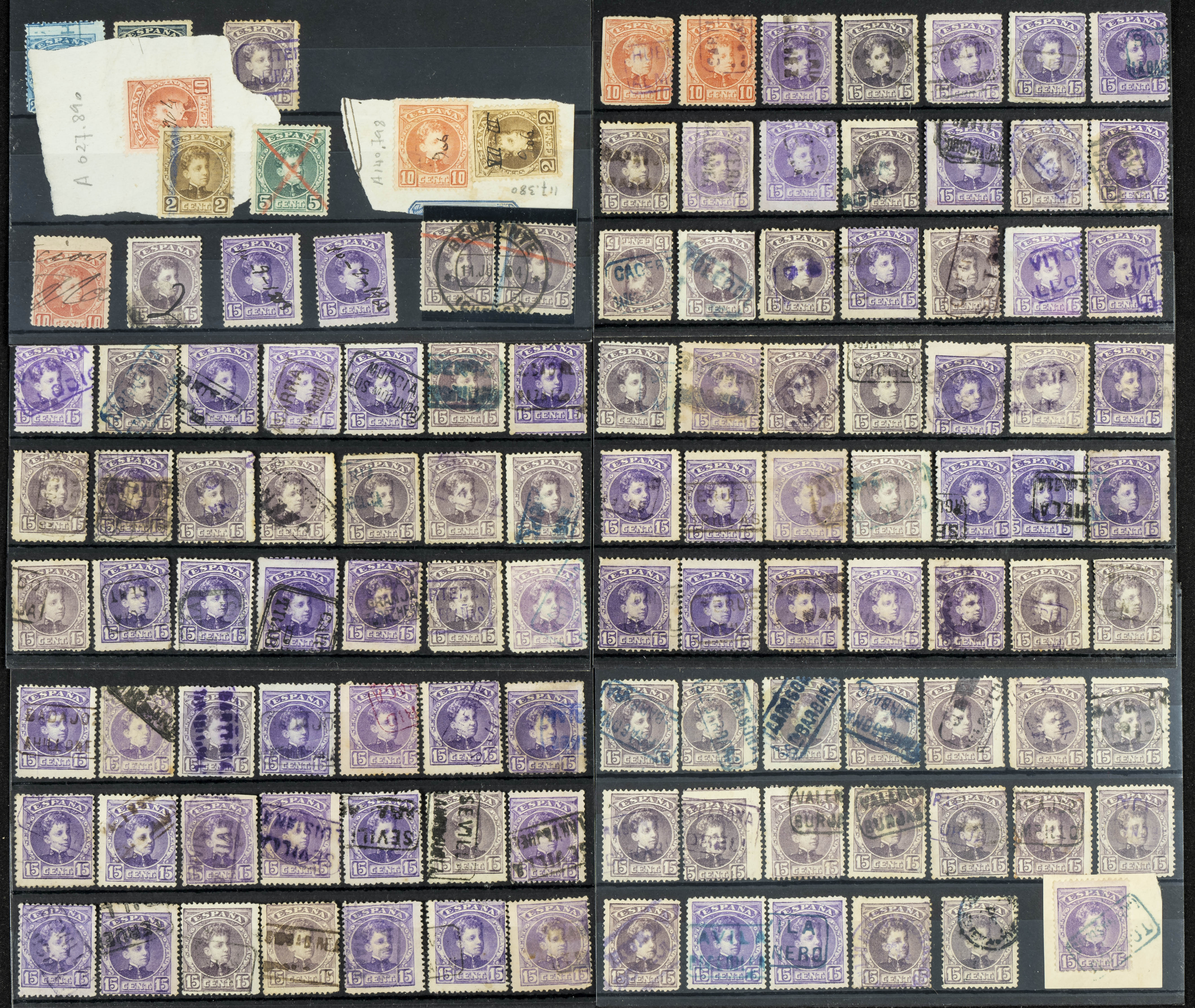 (ca. 1901). Interesting collection of over one hundred stamps from the Cadet issue, mostly with "Post Office" type postmarks, some of which have been erased with a pen. TO BE EXAMINED.