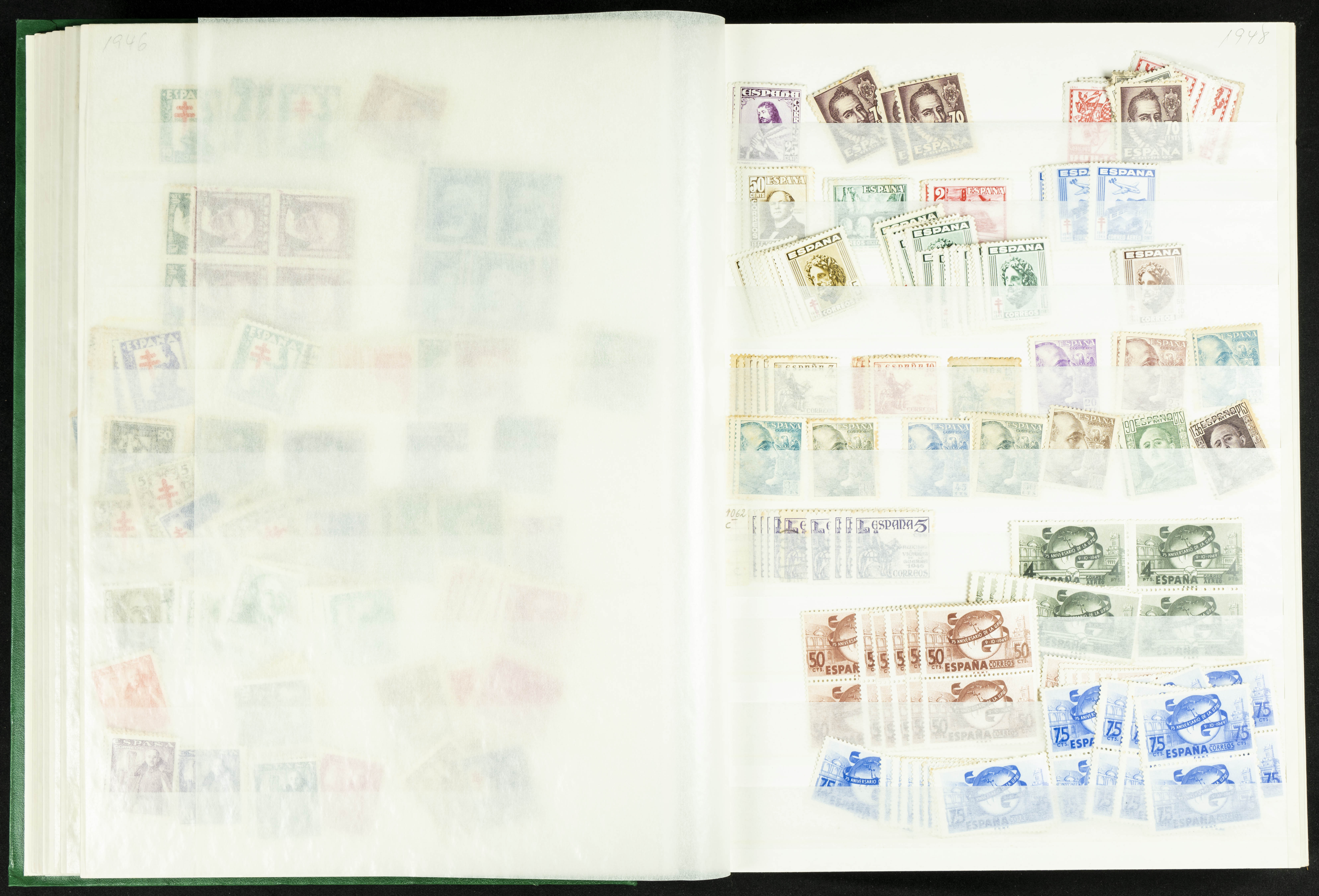★★/★(1901ca). Interesting collection of single stamps and complete series between 1901 and 1977, mostly in mint condition (minor age spots) and with various duplicates, including Centenary, "Legazpi and Sorolla," and Caudillo to the Canary Islands stamps with numbers, as well as a very complete collection in mint condition between 1965 and 1994 and a stock of complete series from the 1960s and 1970s. EXTREMELY HIGH CATALOG VALUE. EXAMINATION IS ESSENTIAL.