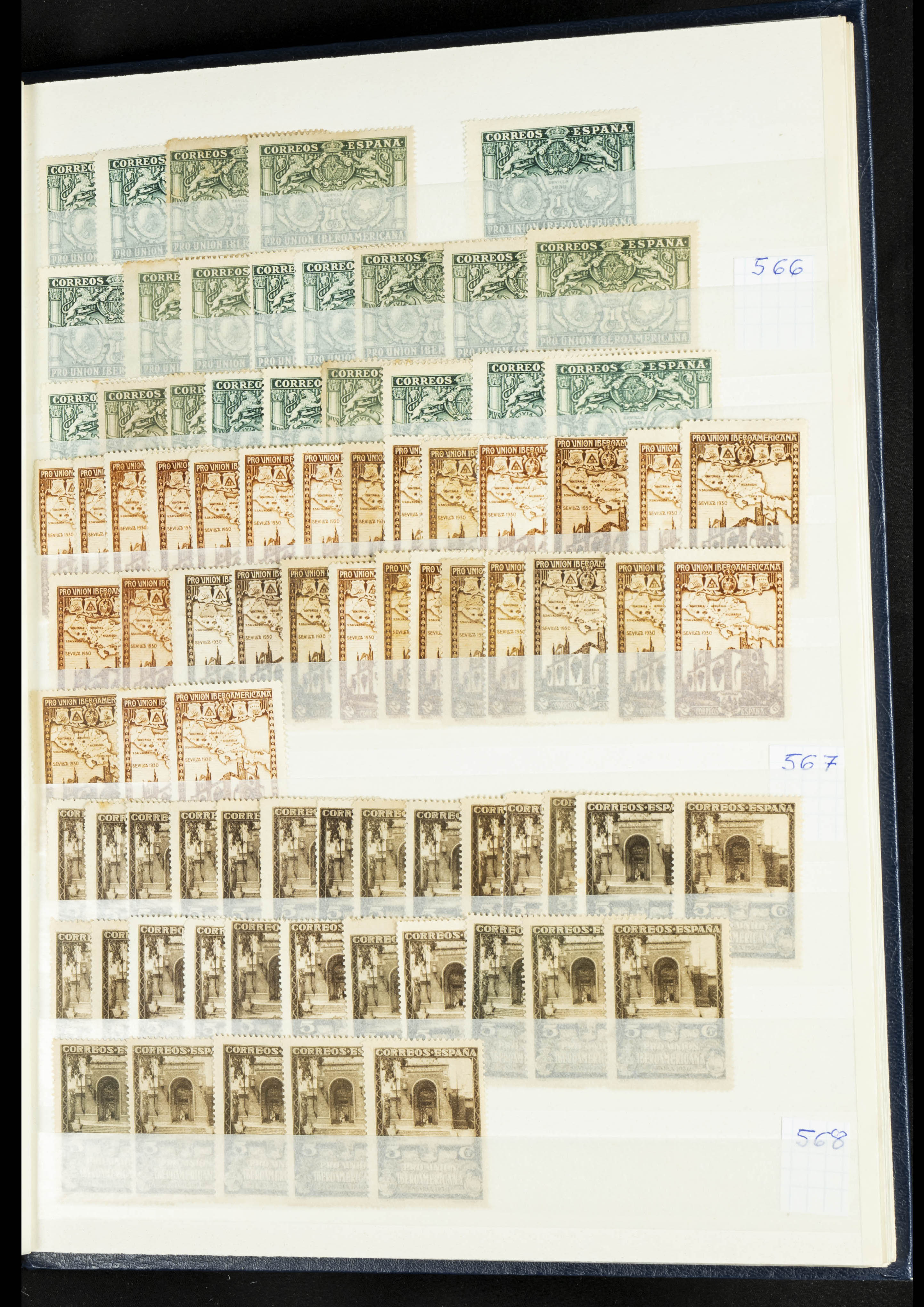 ★★/★1930. Interesting collection of loose stamps from the Pro Ibero-American Union issue, including duplicates, mint condition, reprints, and varieties of various types. HIGH CATALOG VALUE. TO BE EXAMINED.