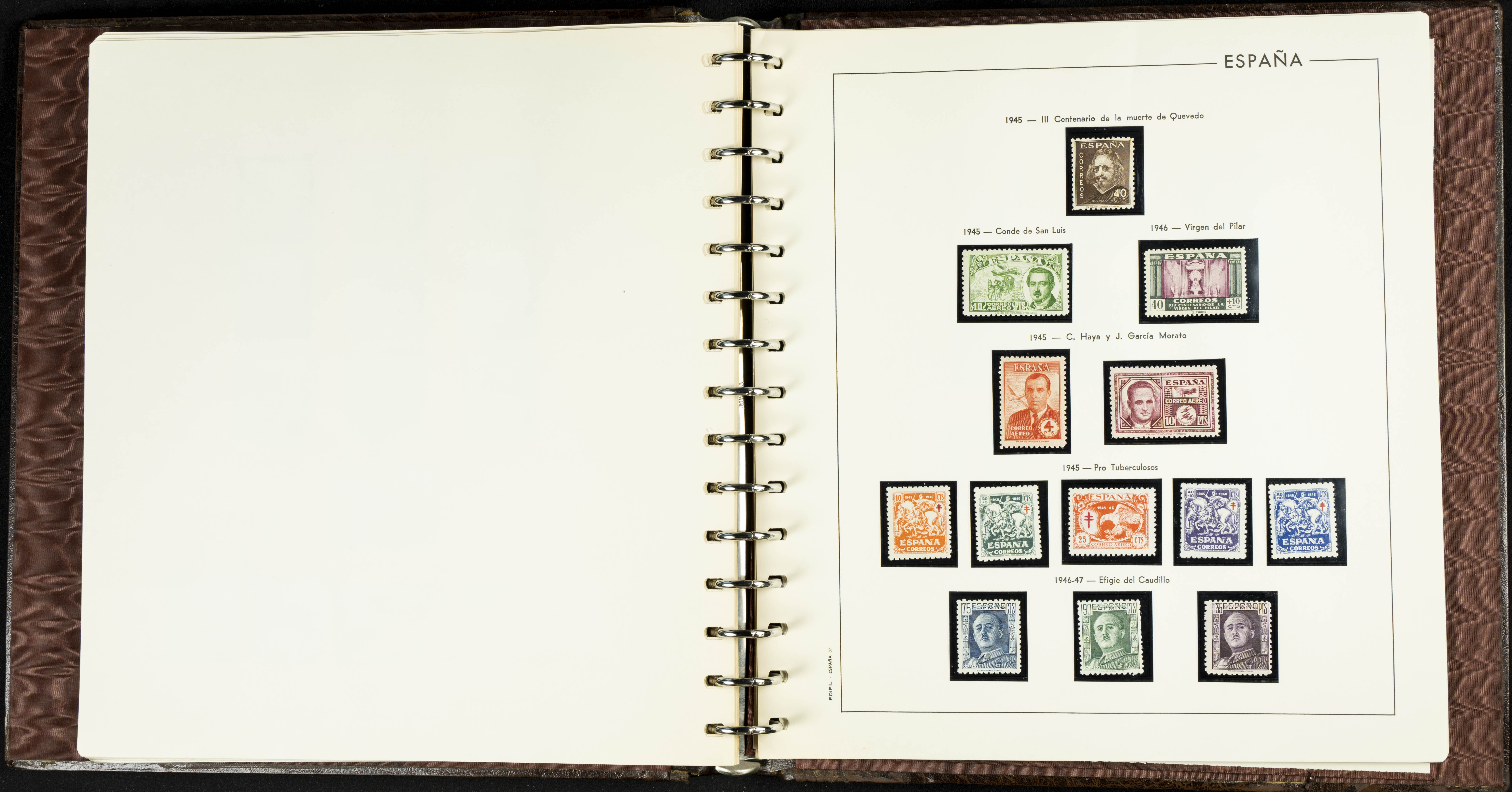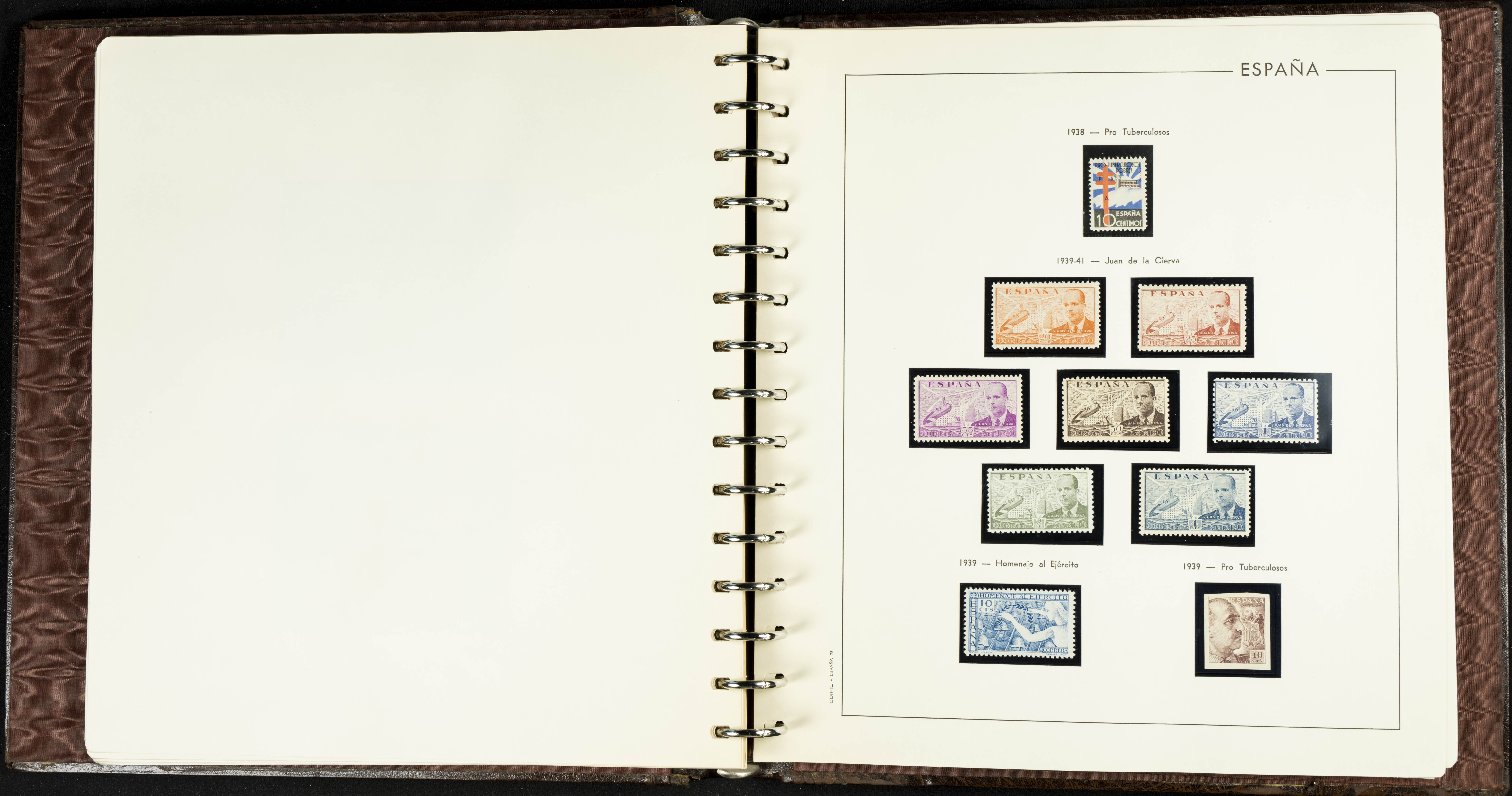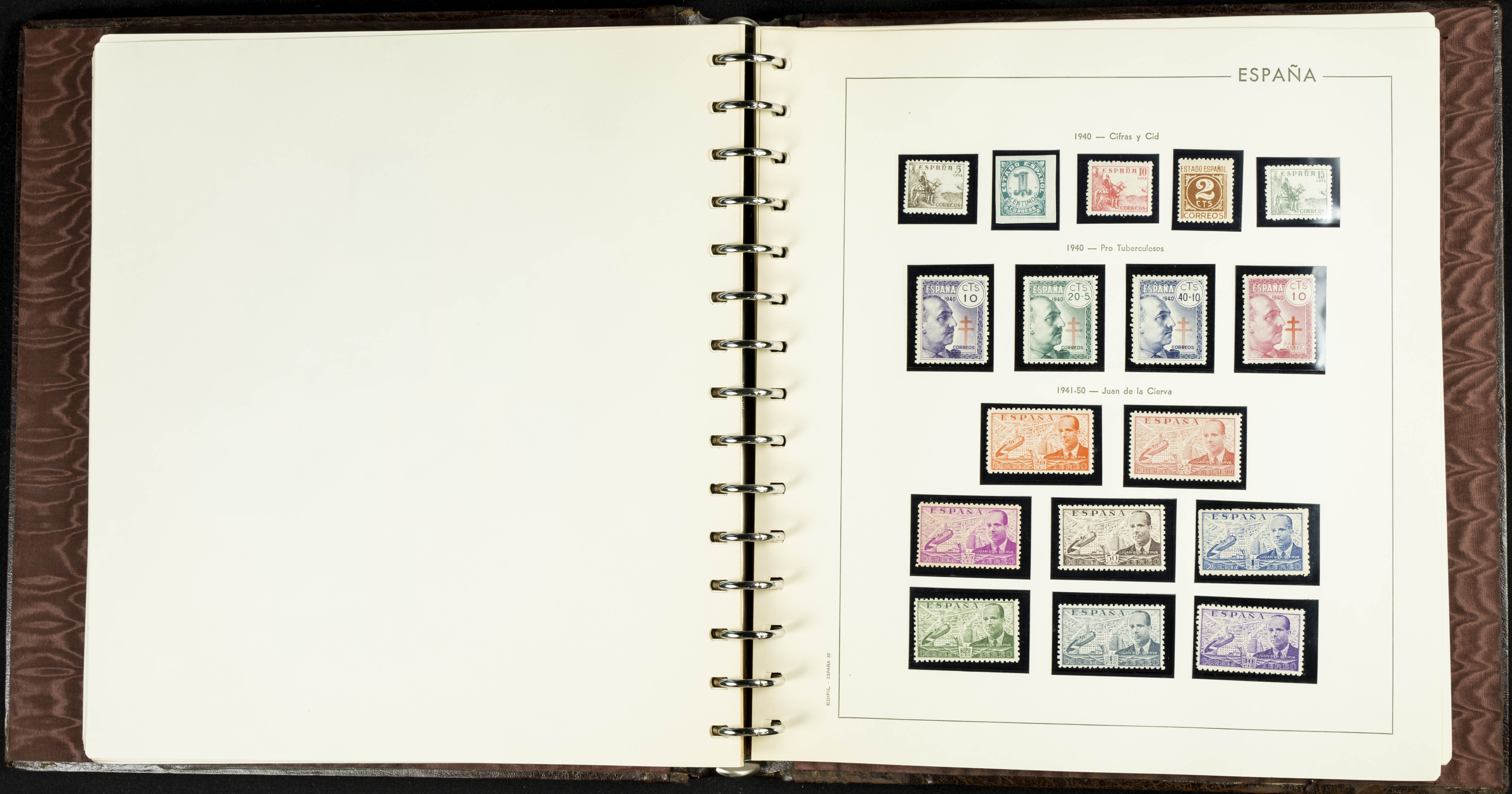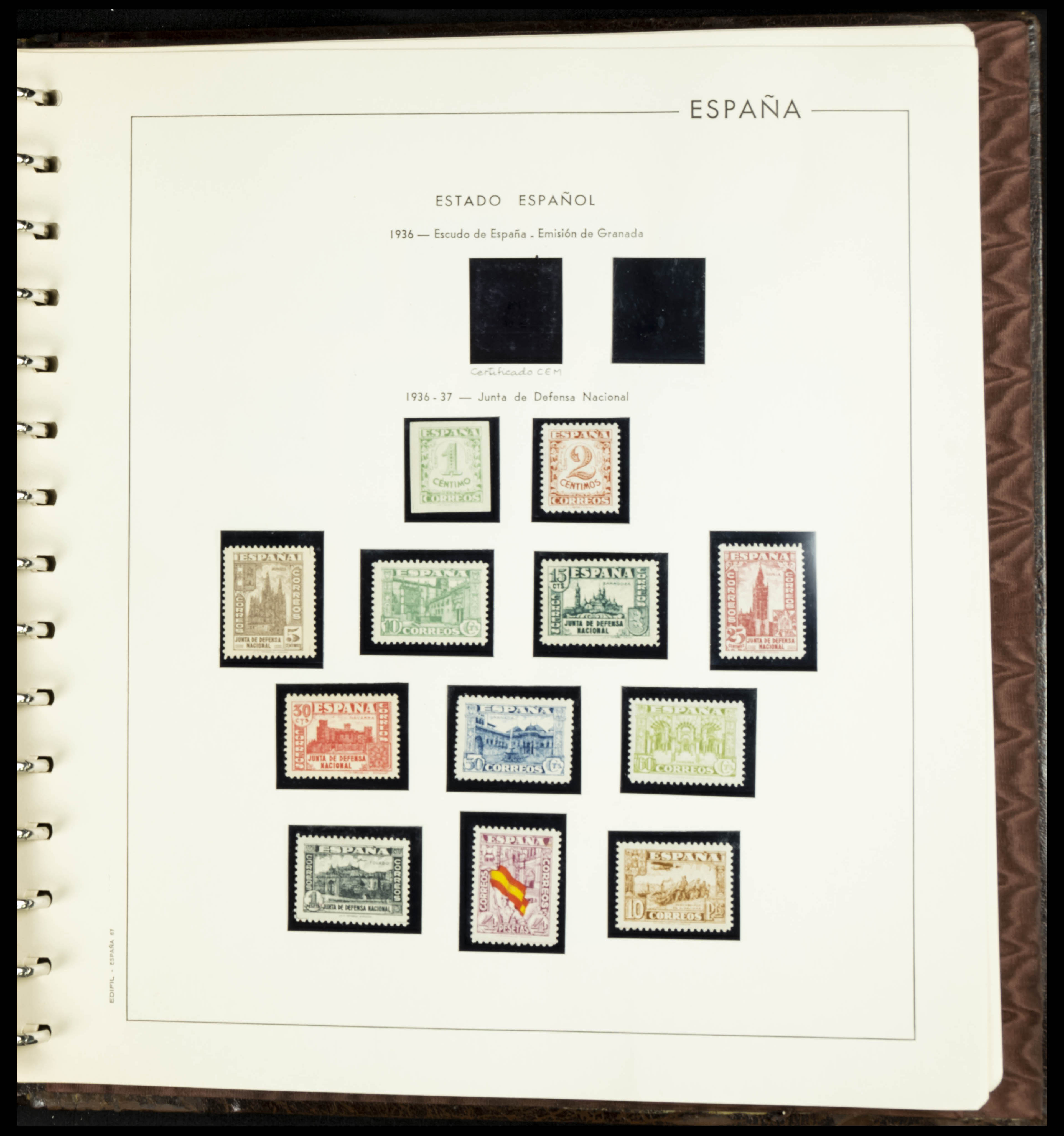 English ★★(1936ca). Interesting and very complete remainder of the Spanish State stamp collection from 1936 to 1949, in mint condition without hinges (some stamps of very little value with hinges), including some souvenir sheets and featuring notable stamps from the Junta de Defensa, the HB Ejército y Marina (perforated and imperforate), Isabel La Católica, Franco (Sánchez Toda and coarse perforated), and "Falla y Zuloaga" (generally good quality). EXAMINATION IS ESSENTIAL. Edifil 2026: +2,900 Euros