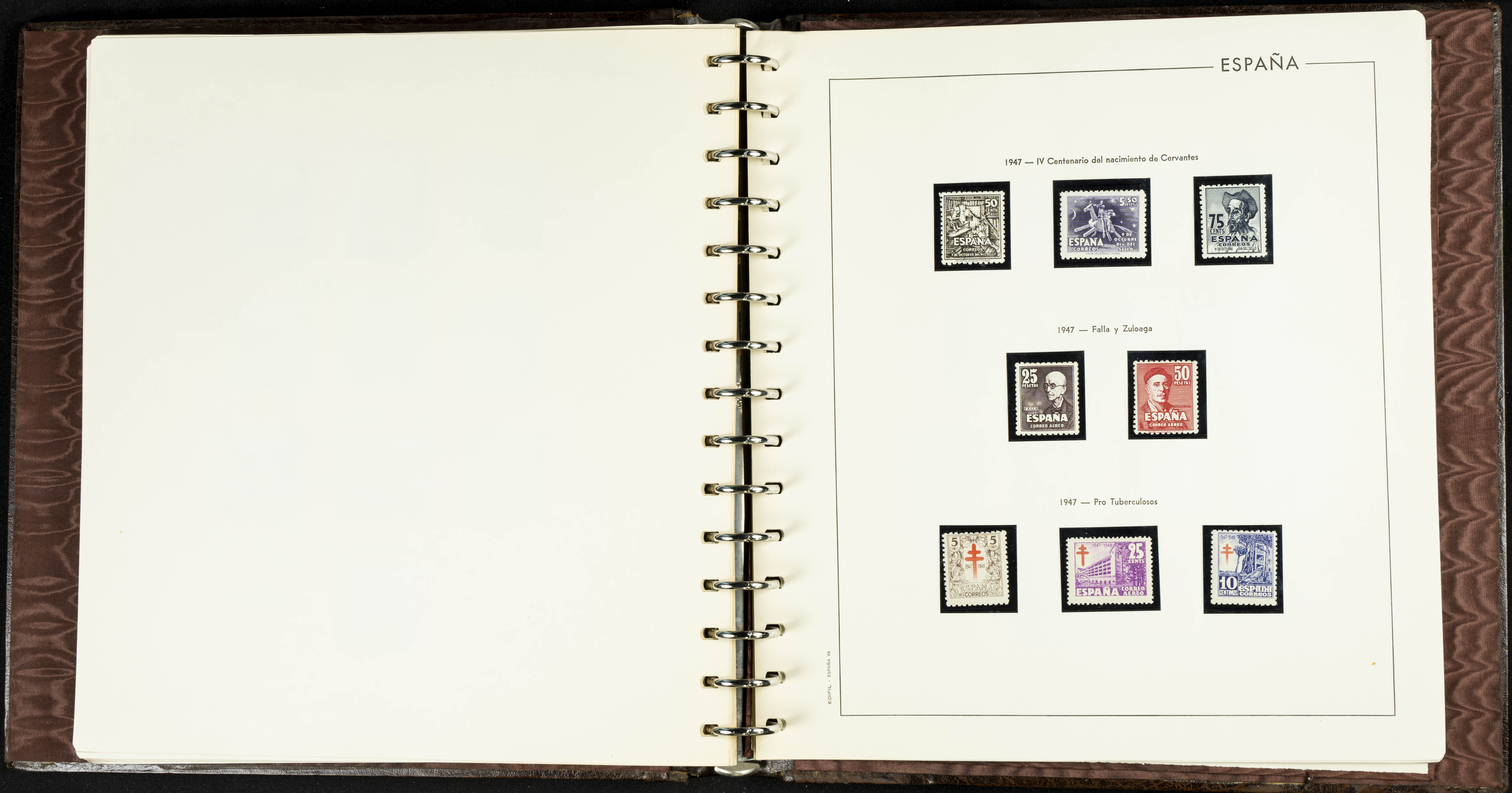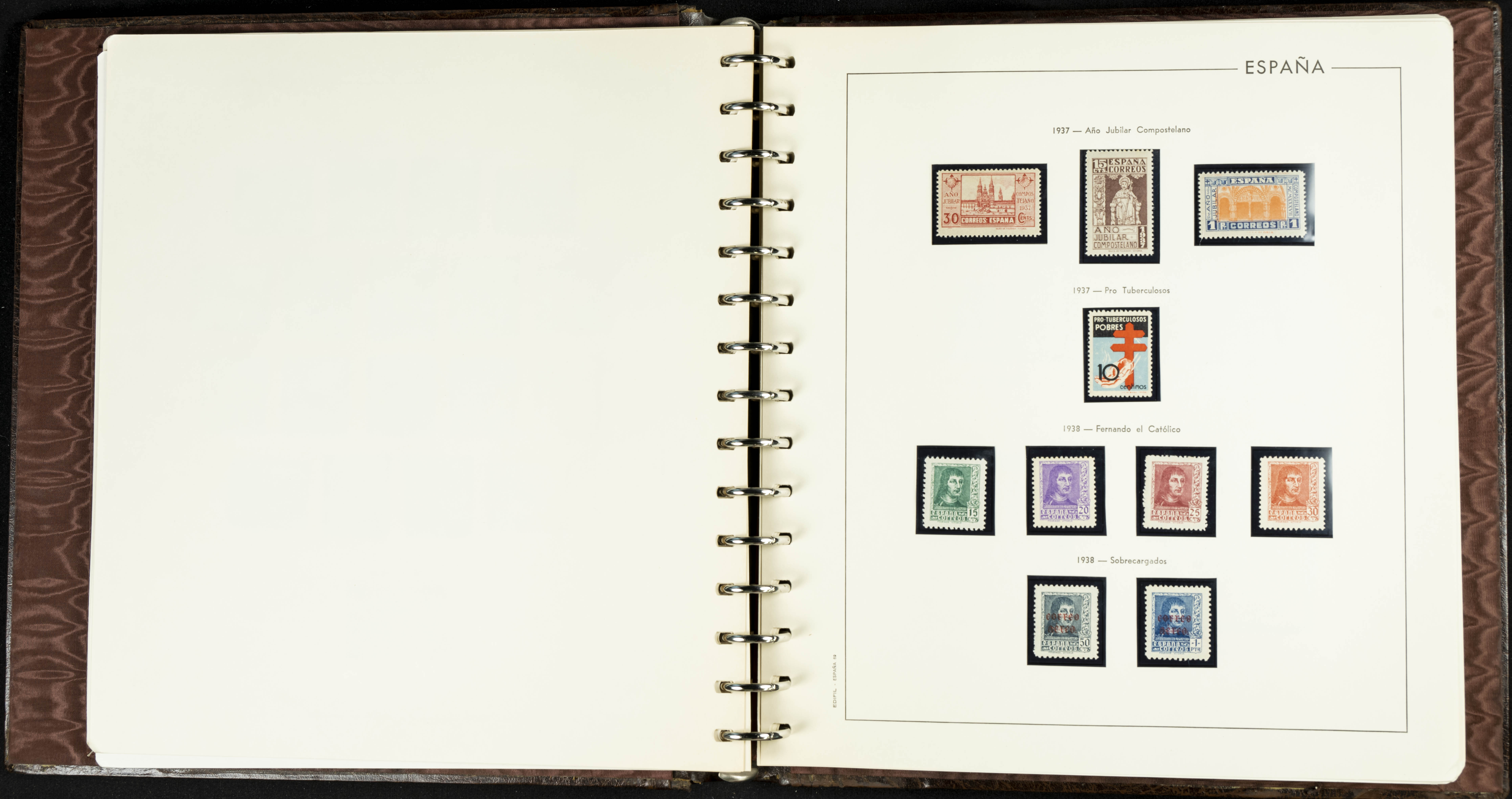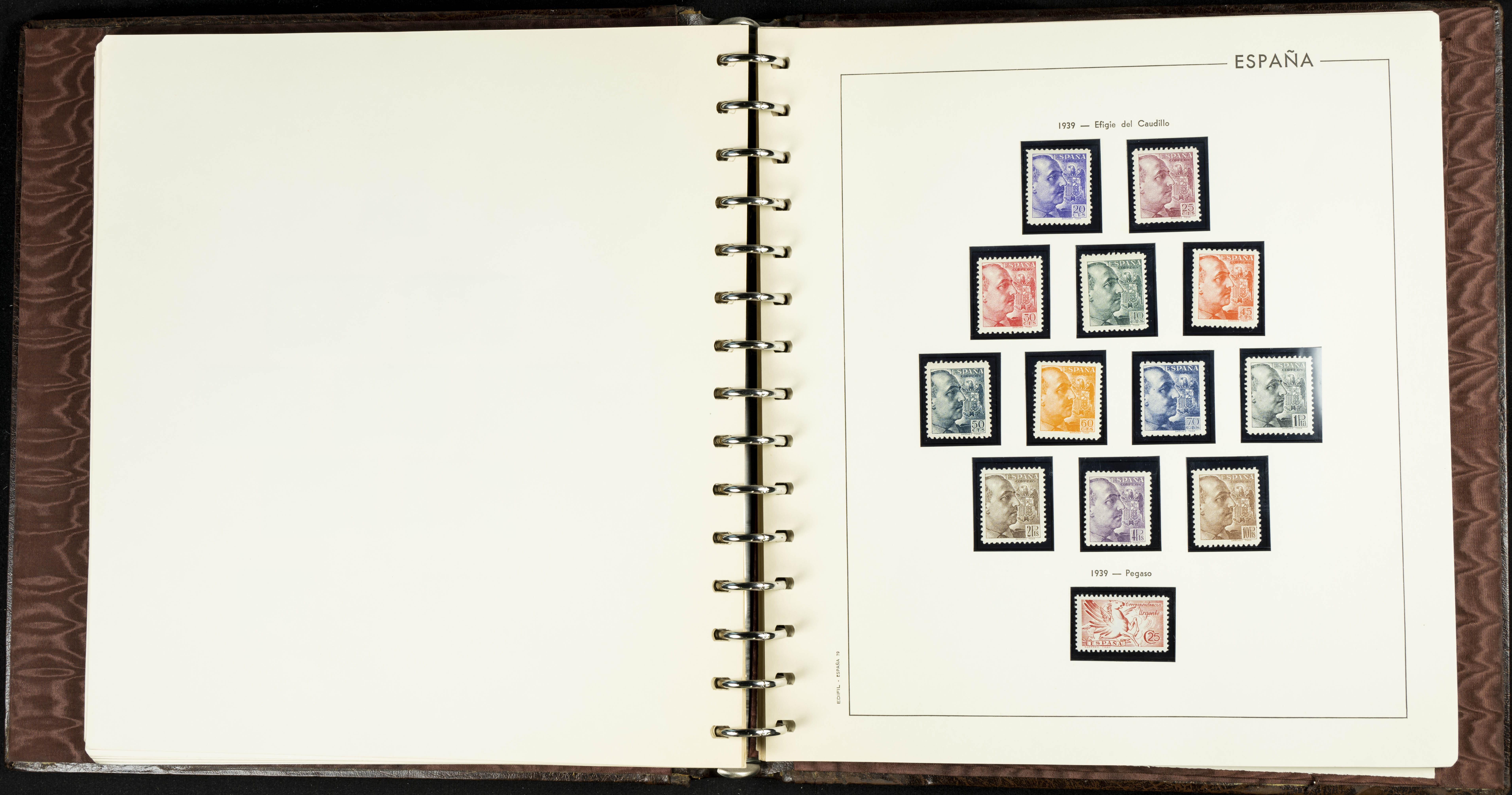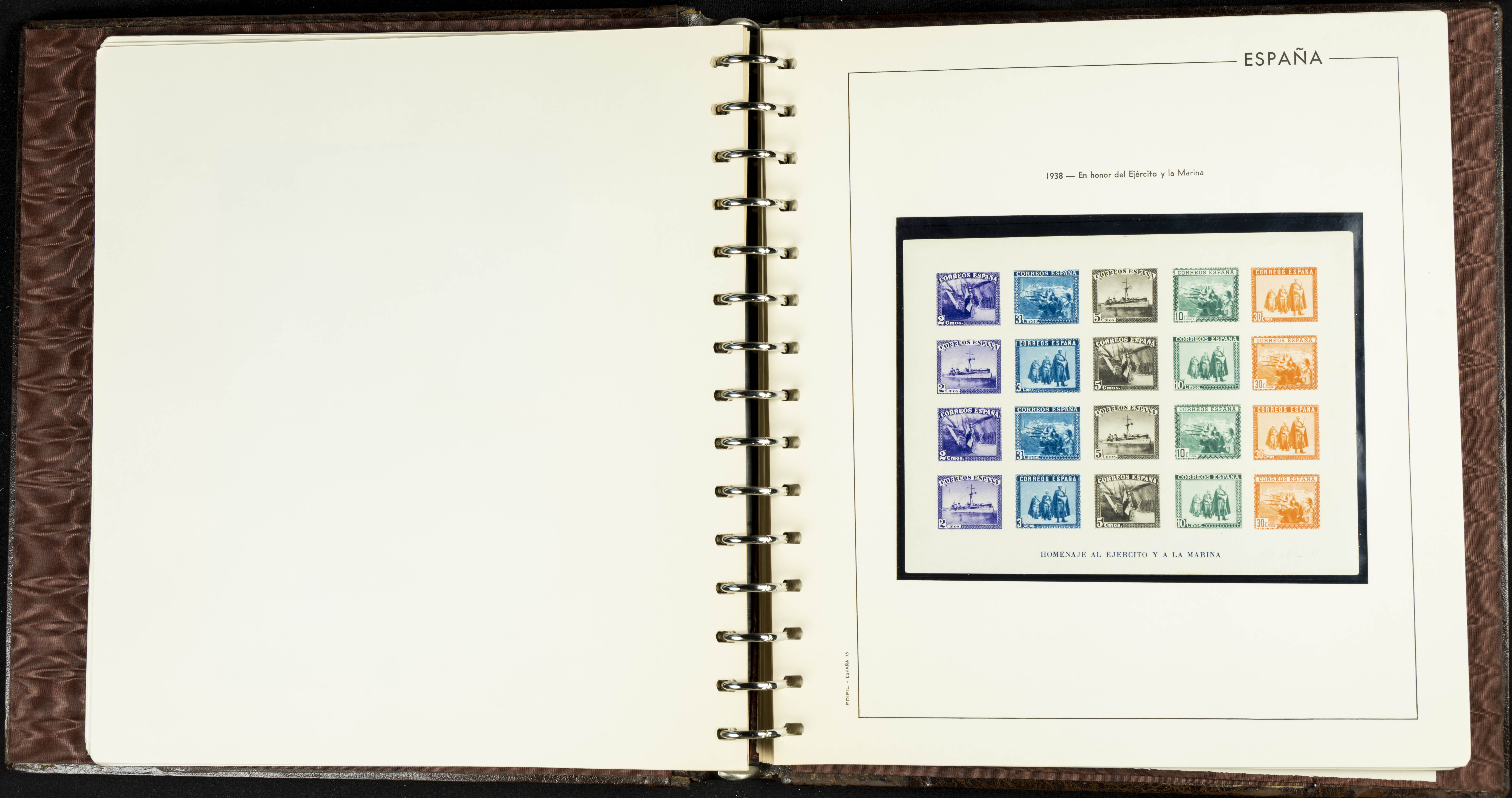 English ★★(1936ca). Interesting and very complete remainder of the Spanish State stamp collection from 1936 to 1949, in mint condition without hinges (some stamps of very little value with hinges), including some souvenir sheets and featuring notable stamps from the Junta de Defensa, the HB Ejército y Marina (perforated and imperforate), Isabel La Católica, Franco (Sánchez Toda and coarse perforated), and "Falla y Zuloaga" (generally good quality). EXAMINATION IS ESSENTIAL. Edifil 2026: +2,900 Euros