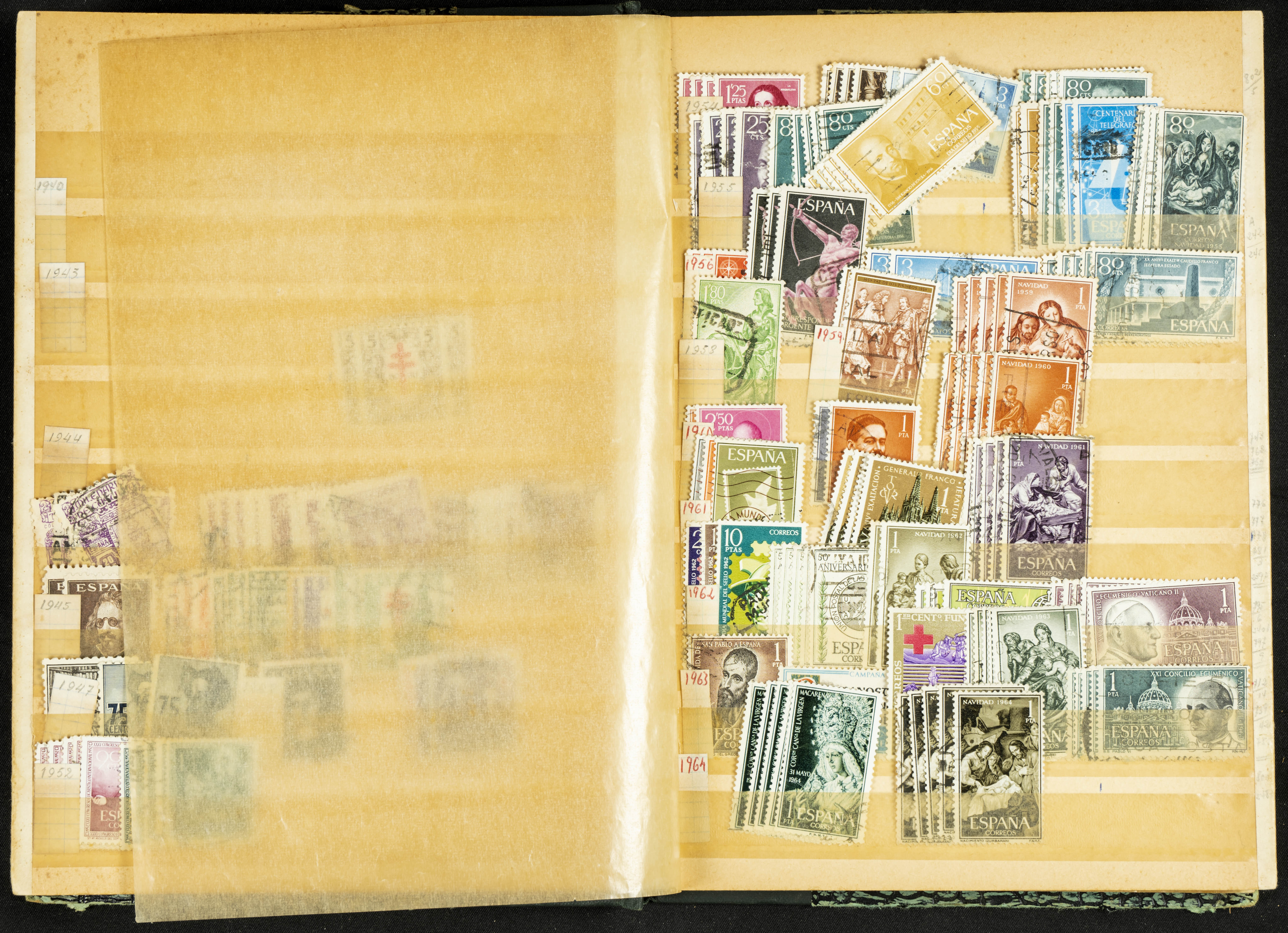 (1936ca). Collection of several thousand stamps from Spain and abroad, used and some organized in albums or envelopes. TO BE EXAMINED.