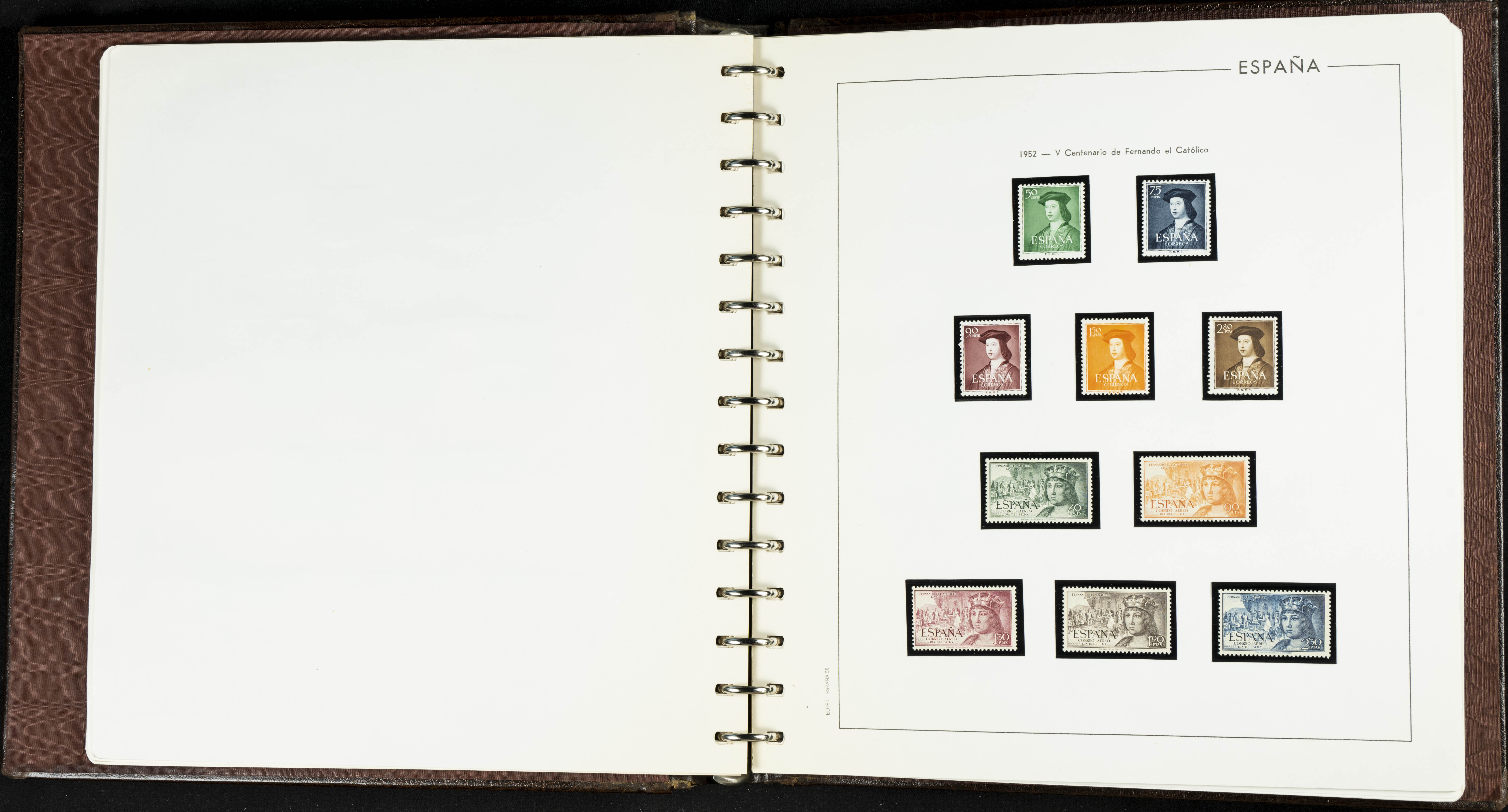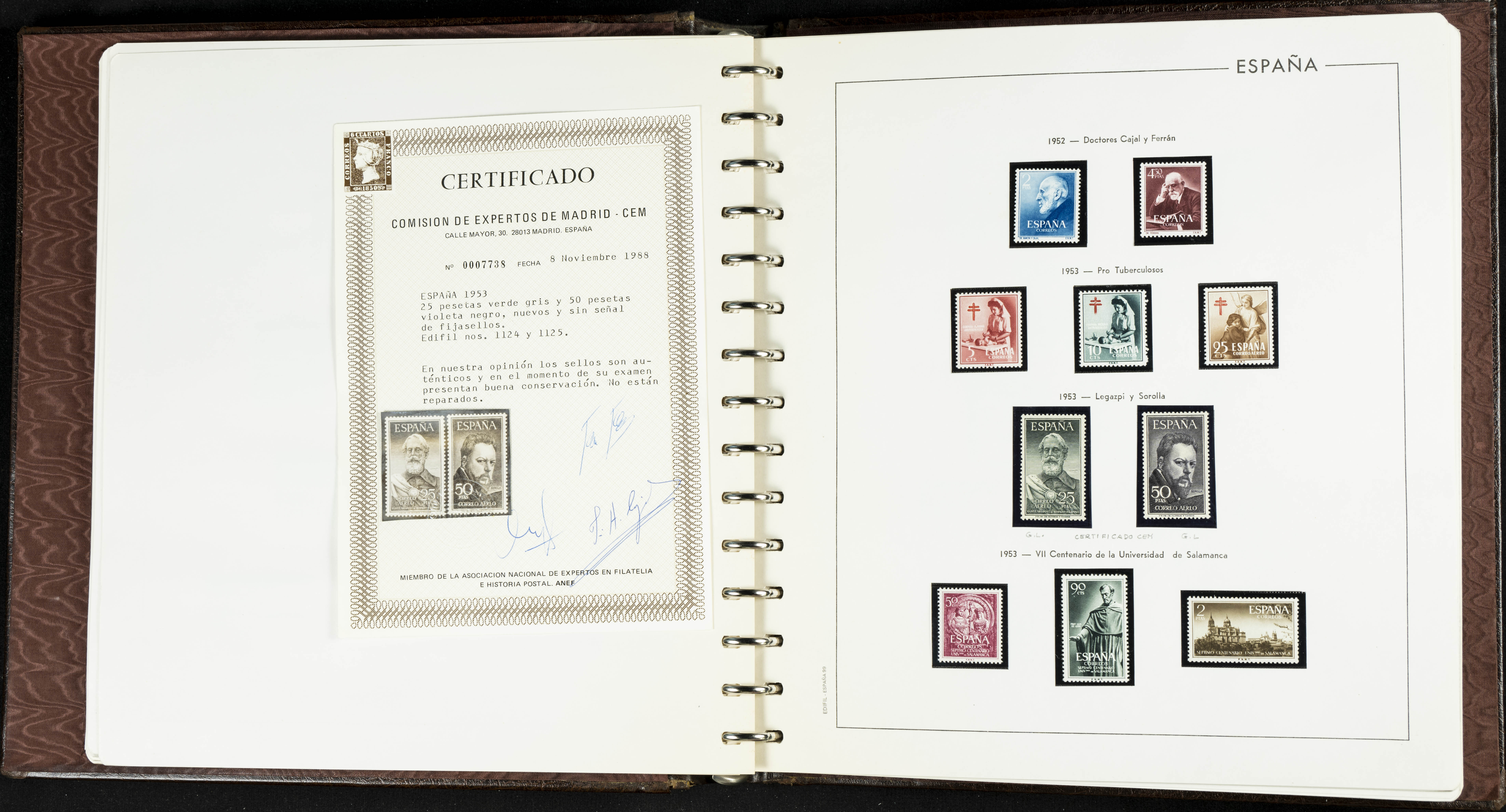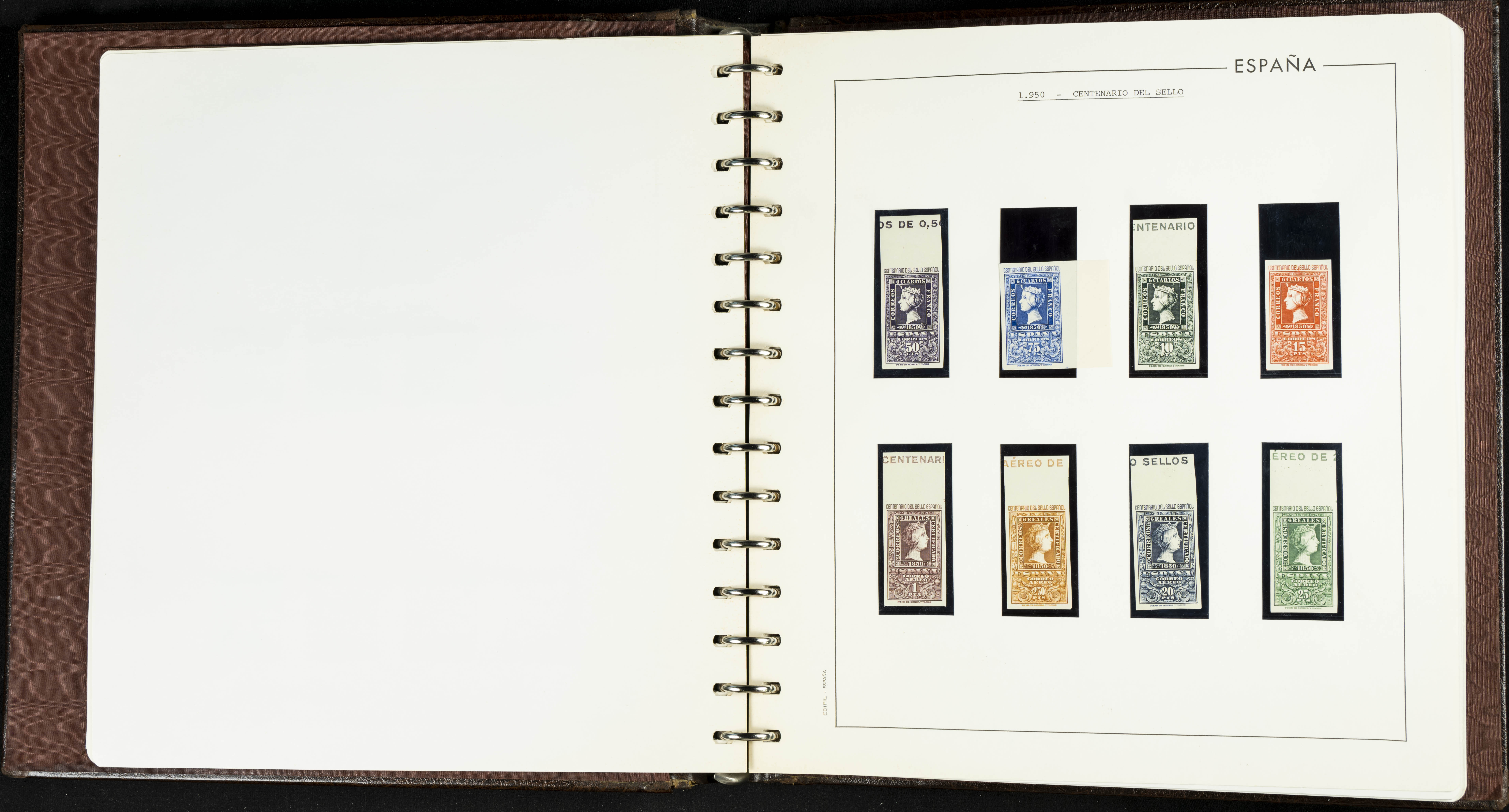 ★★(circa 1950). Interesting and practically complete collection from 1950 to 1994, mint condition without hinges, lacking only the unnumbered Canarias stamp and the 1st Print, including the Centenario (leaf edges), the numbered Canarias stamp (excellent centering), and the "Legazpi and Sorolla" stamp (with certificate) (very good quality overall). VERY HIGH CATALOG VALUE. TO BE EXAMINED.