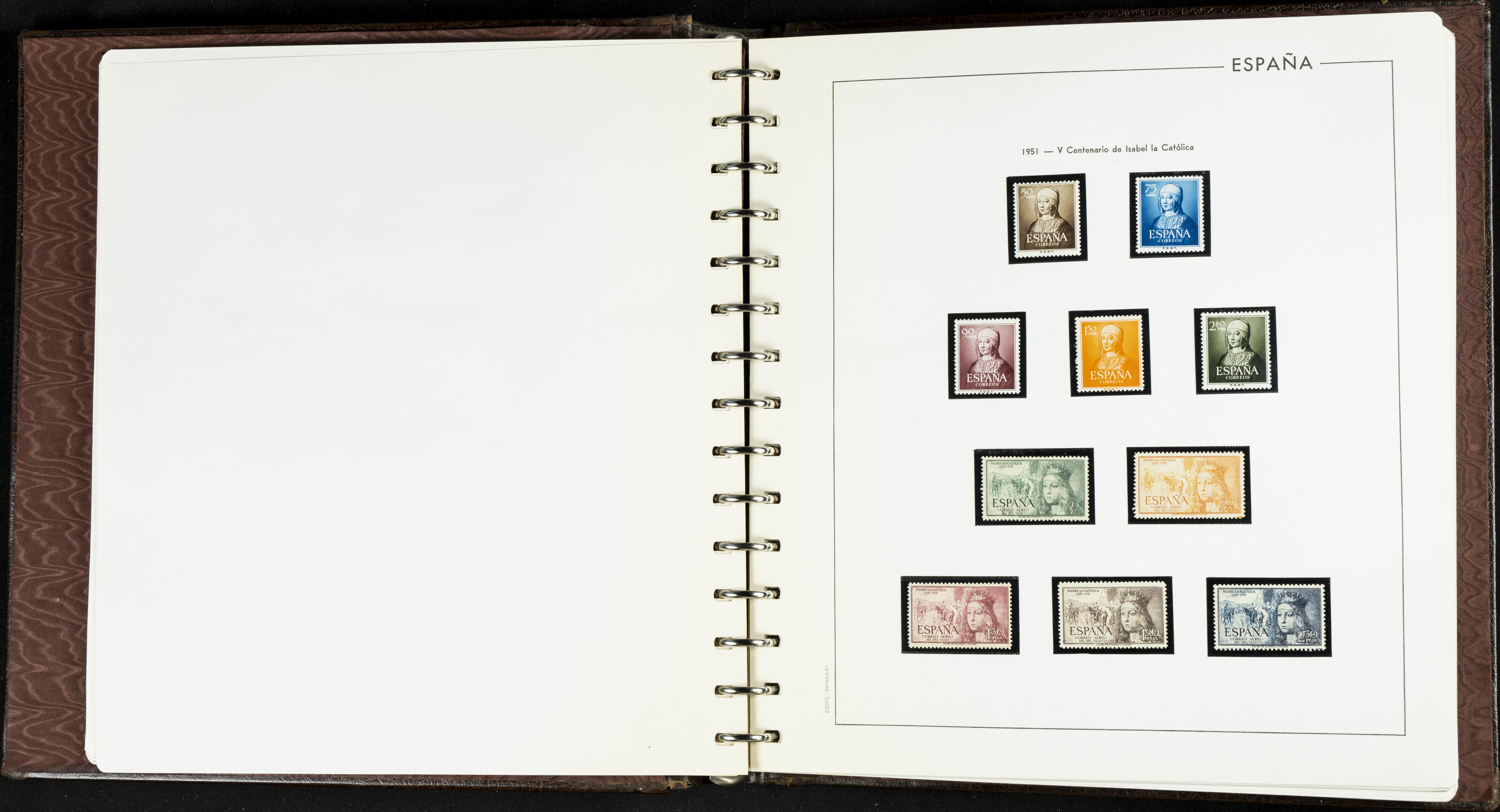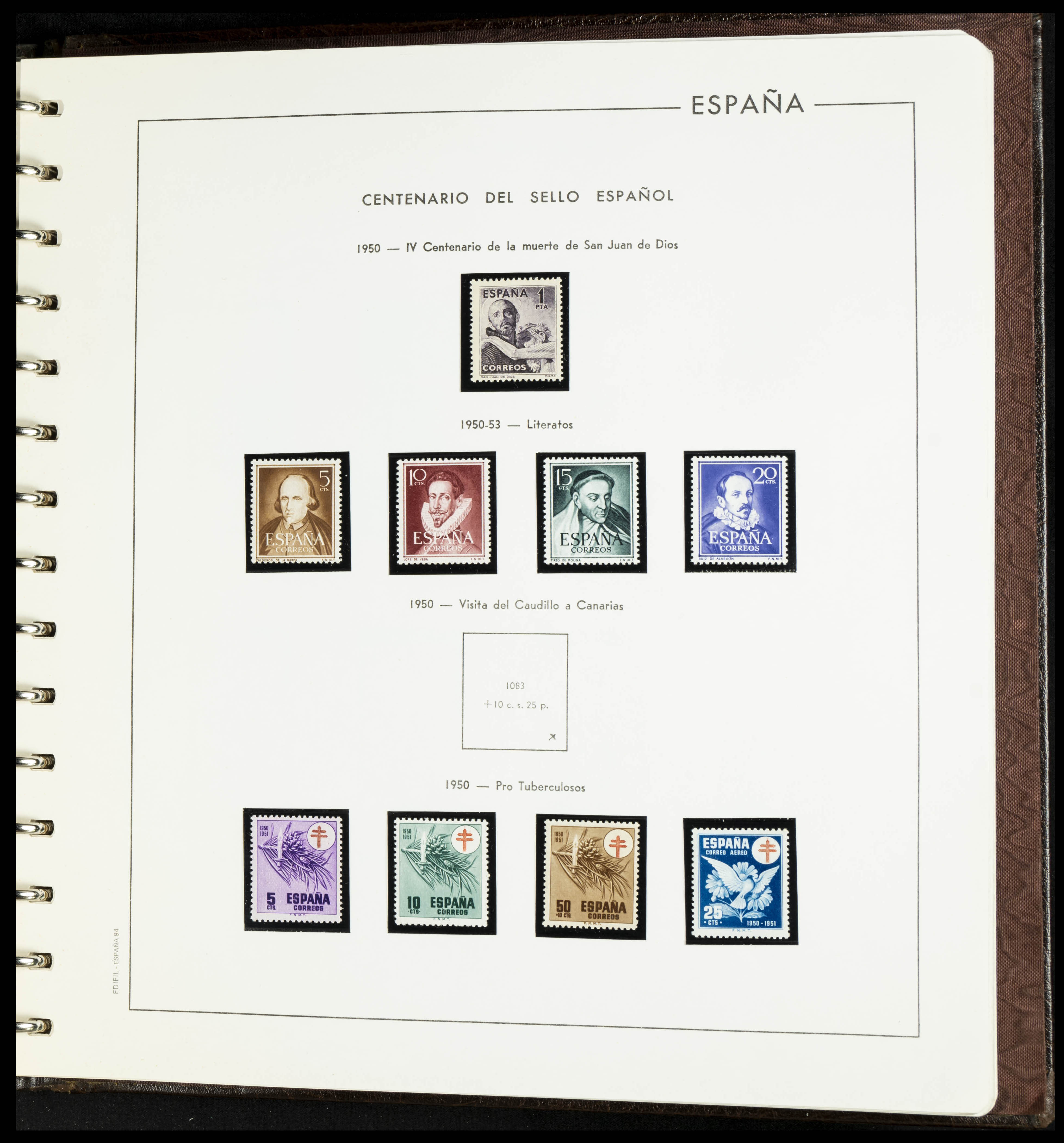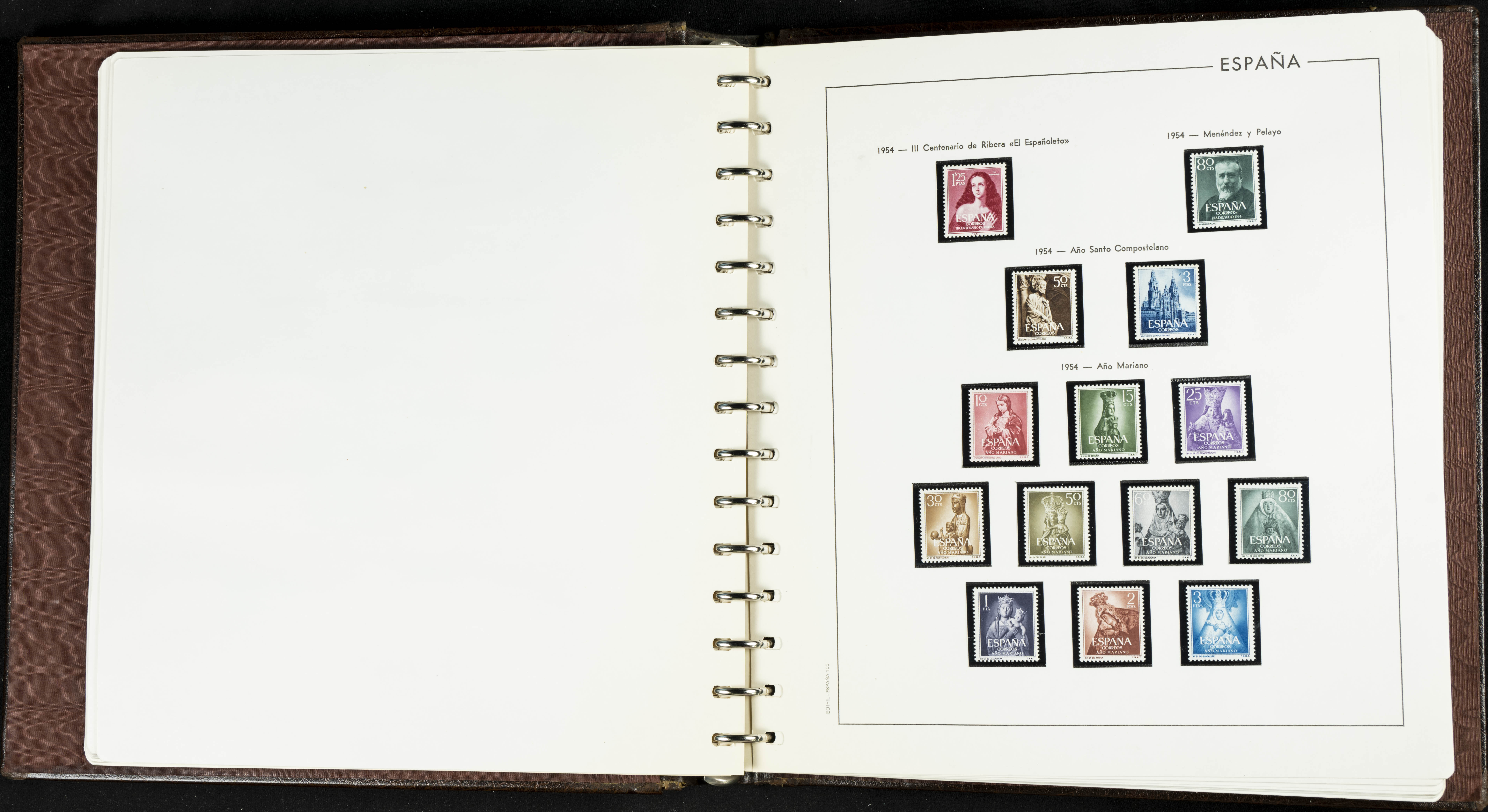 ★★(circa 1950). Interesting and practically complete collection from 1950 to 1994, mint condition without hinges, lacking only the unnumbered Canarias stamp and the 1st Print, including the Centenario (leaf edges), the numbered Canarias stamp (excellent centering), and the "Legazpi and Sorolla" stamp (with certificate) (very good quality overall). VERY HIGH CATALOG VALUE. TO BE EXAMINED.
