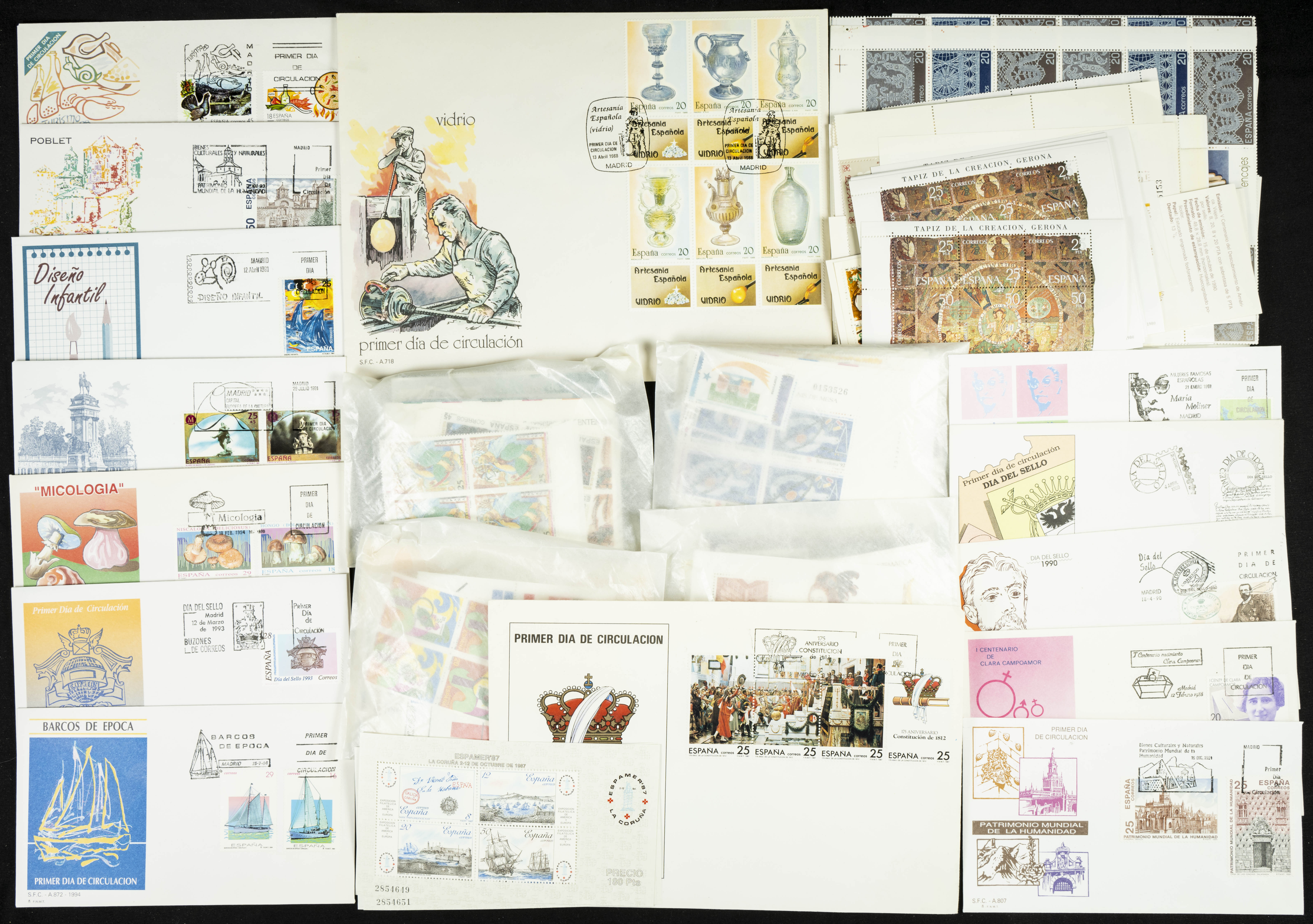 English ★★(1967ca). Stock of complete series and souvenir sheets between 1967 and 2000, in mint condition, with most duplicates up to five of each, many in their original postal envelopes. Includes Andorra and Equatorial Guinea. HIGH CATALOG VALUE. TO BE EXAMINED.