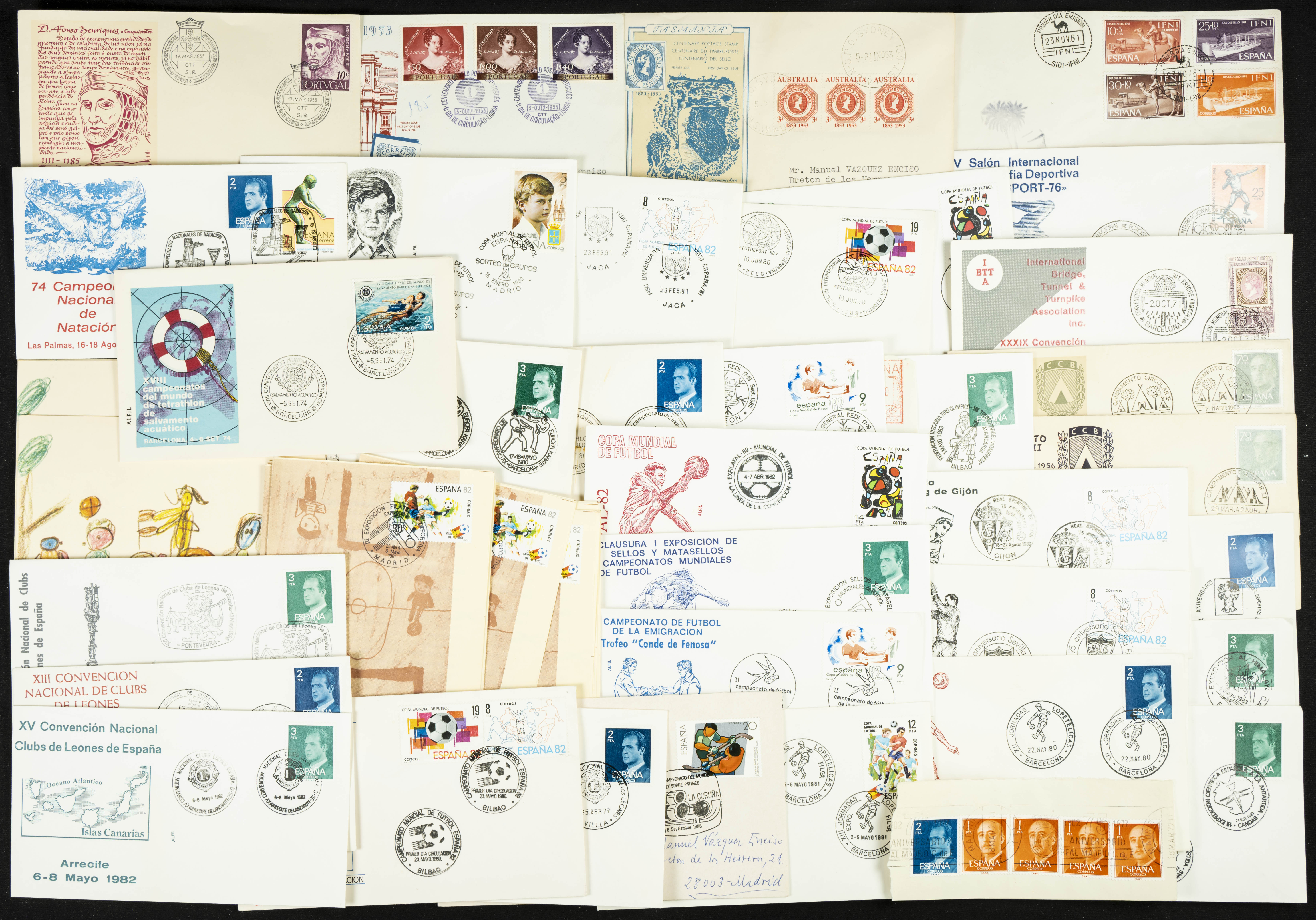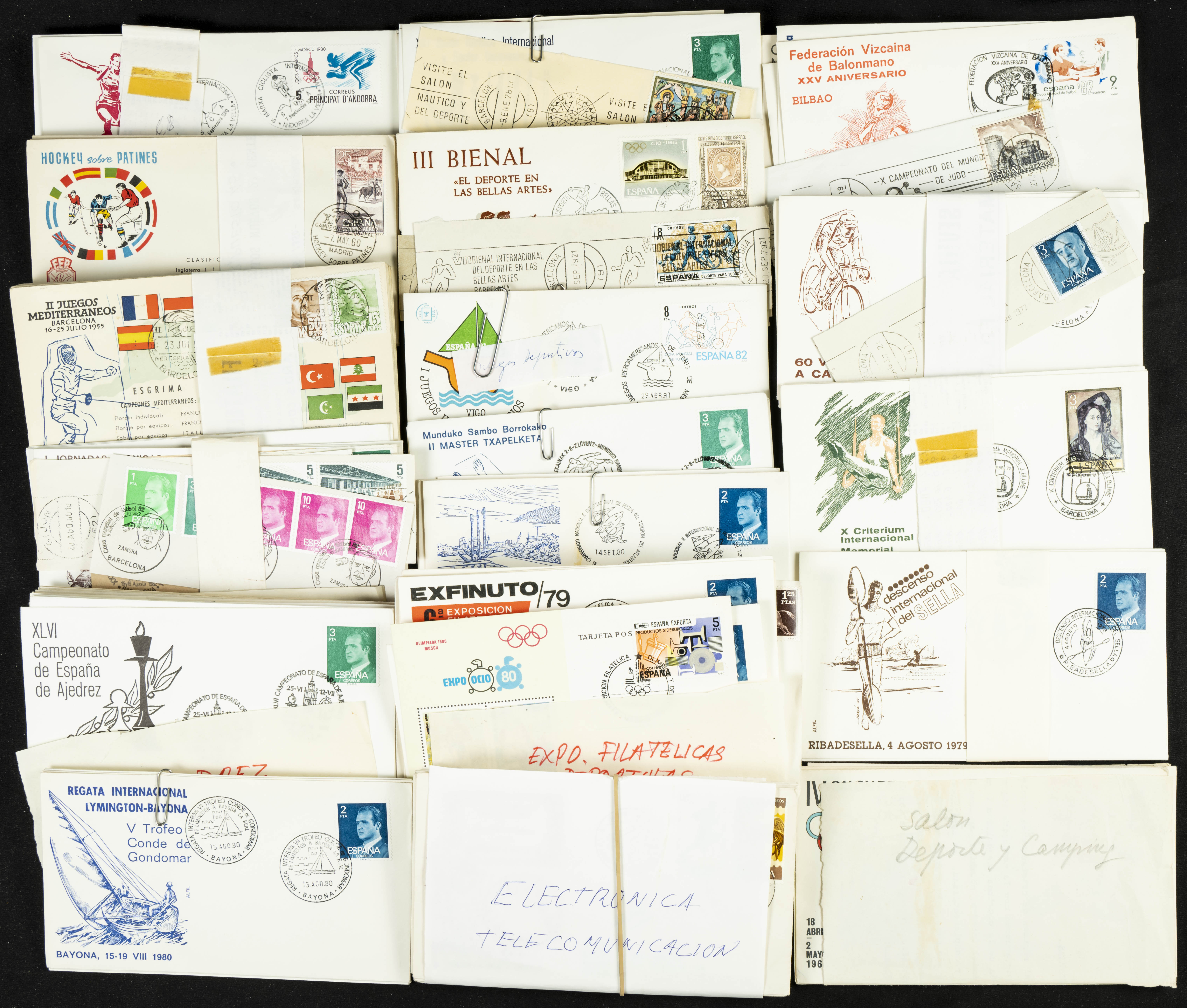 English (1974ca). Collection of dozens of First Day Covers with commemorative postmarks on various themes, mostly sports. TO BE EXAMINED.