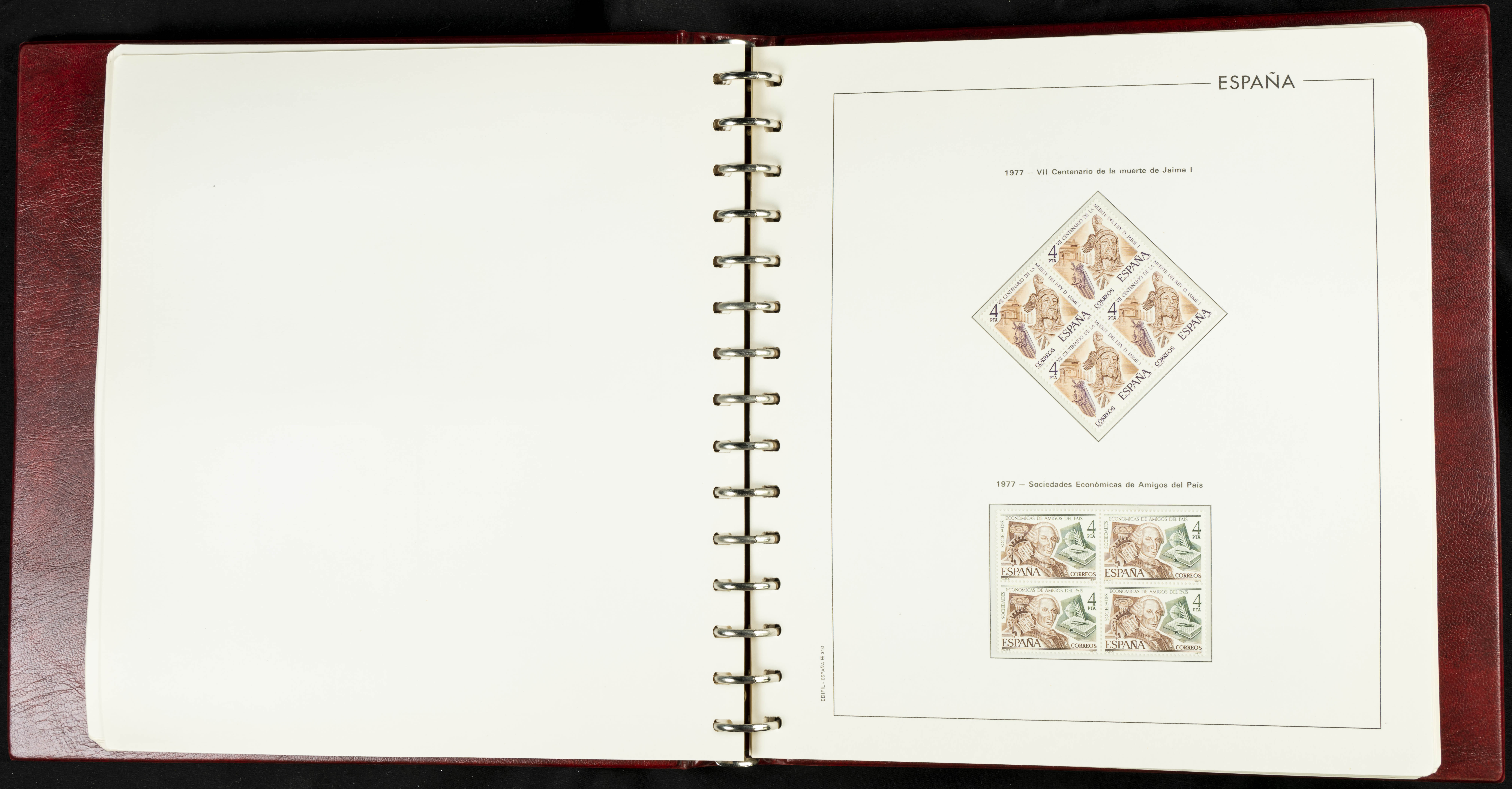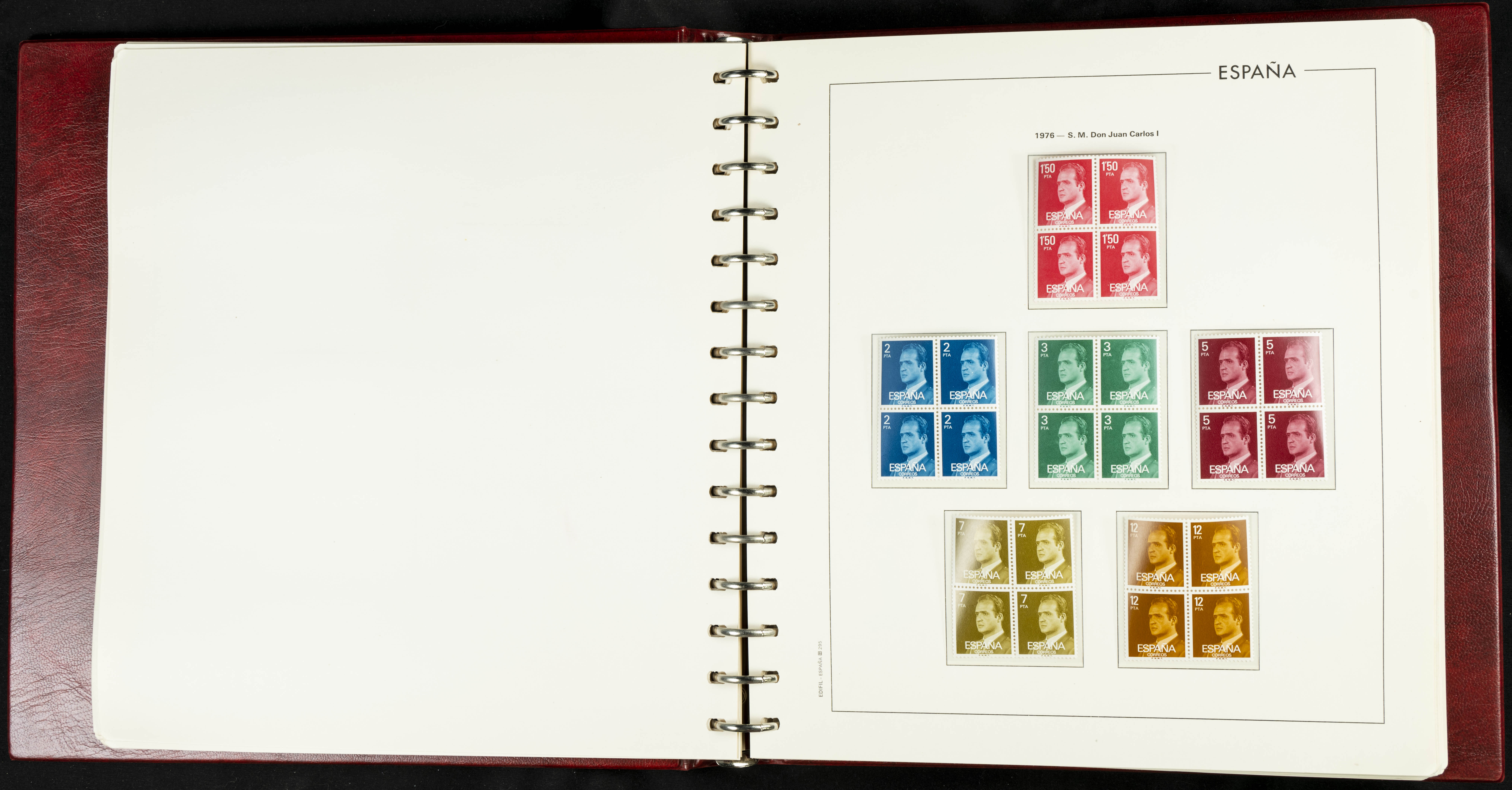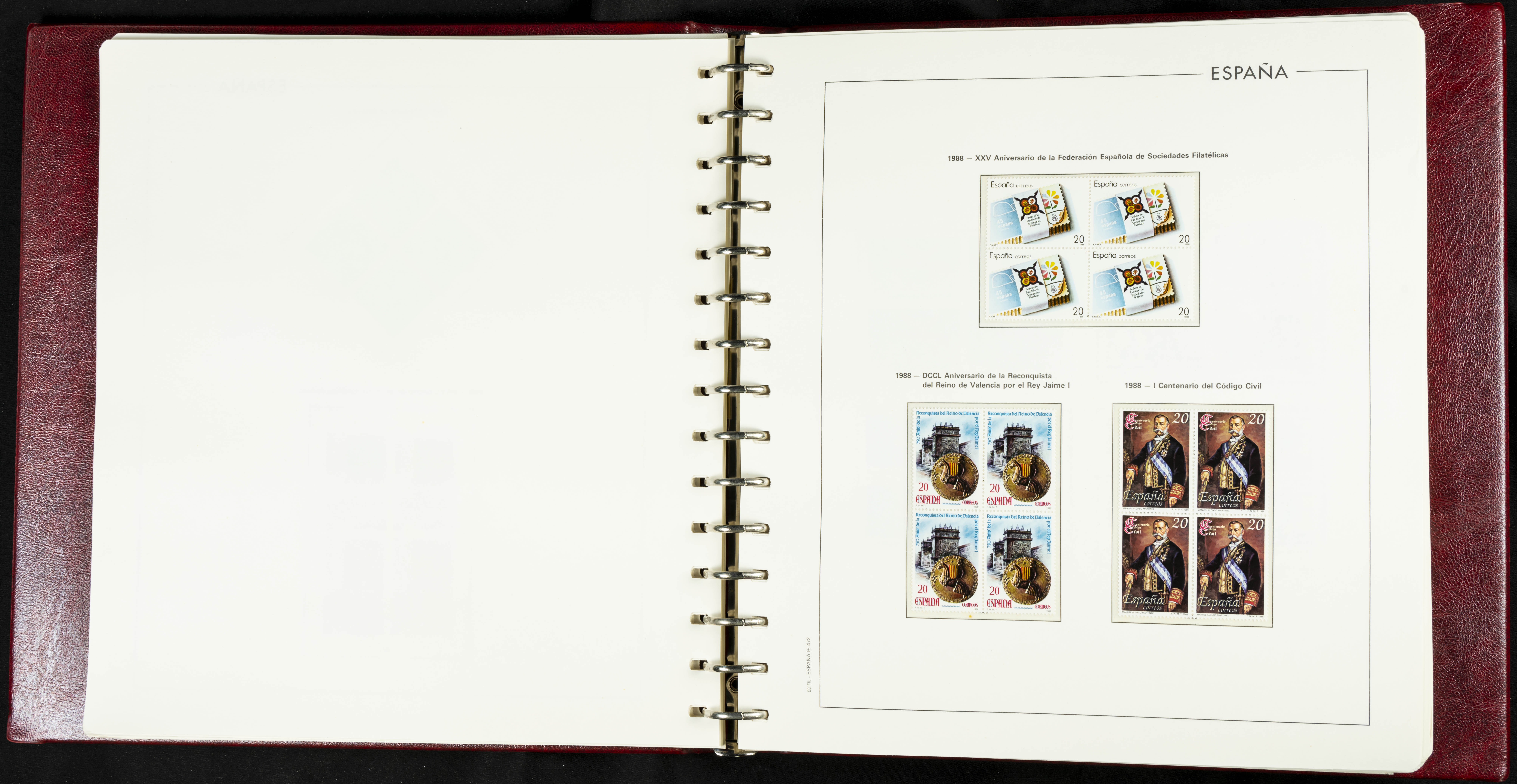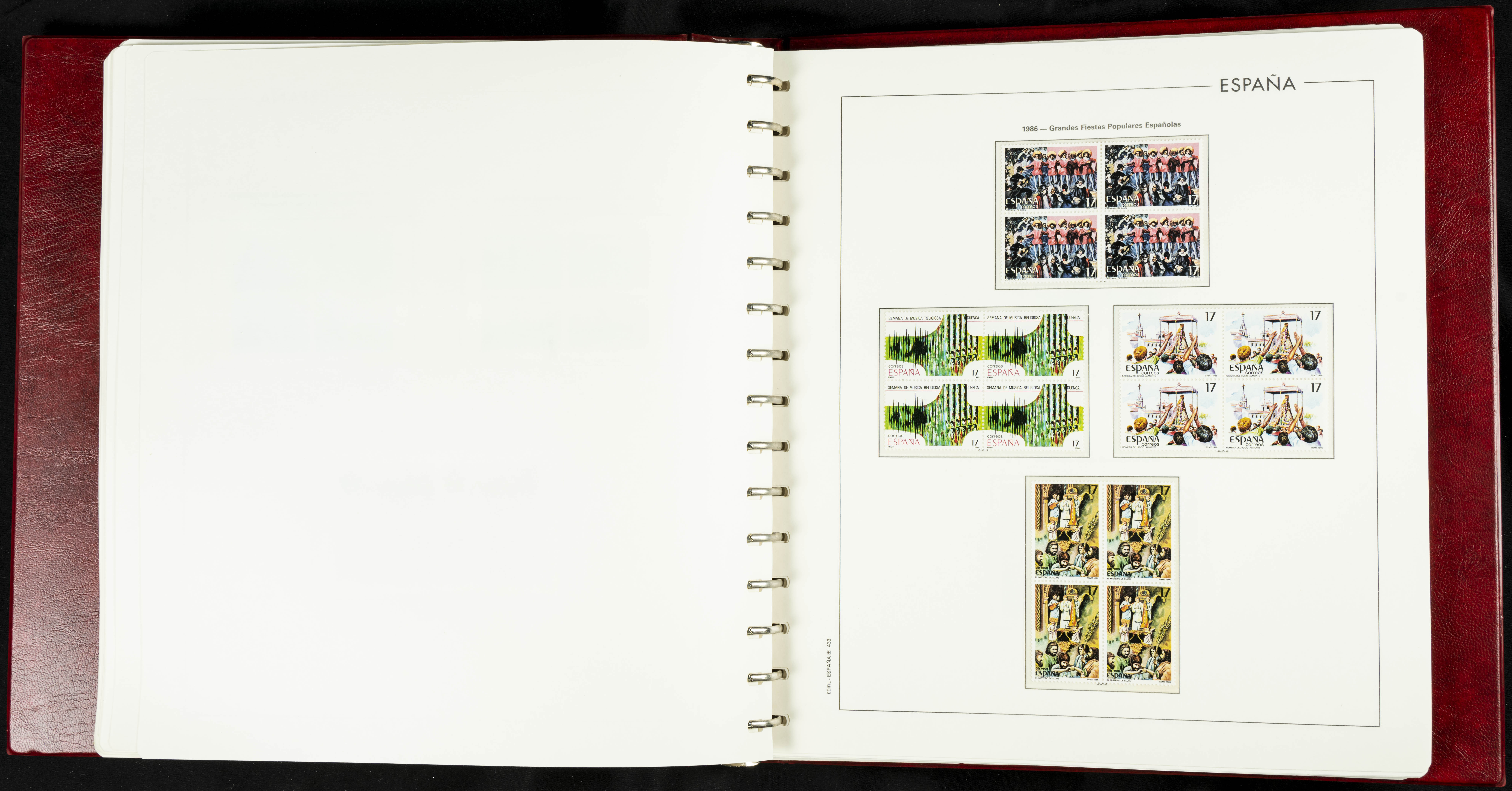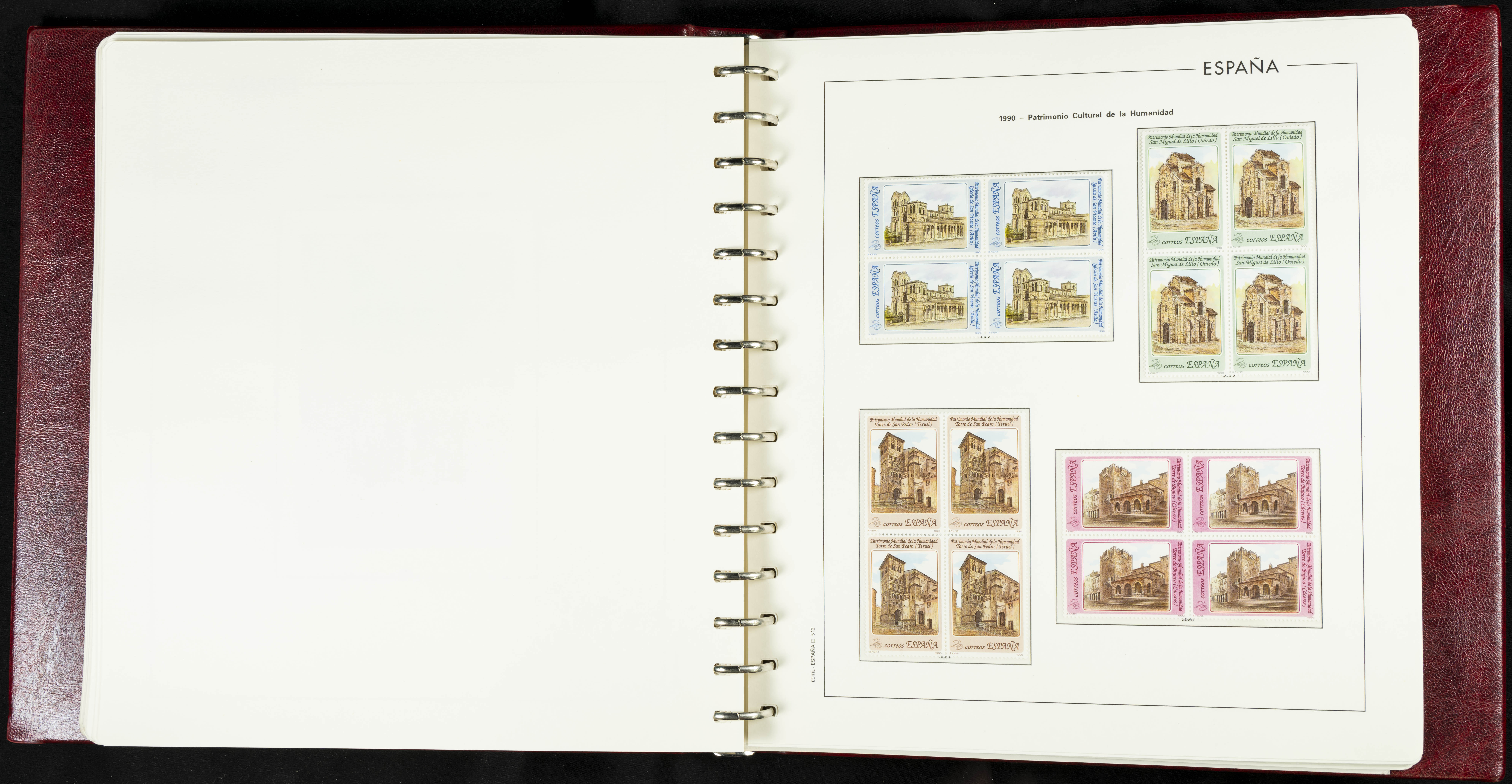 ★★(1976ca). Complete collection between 1976 and 1999, including the 2000 portion denominated exclusively in pesetas, in blocks of four (with a souvenir sheet), in mint condition (mounted in albums). HIGH CATALOGUE VALUE. TO BE EXAMINED.